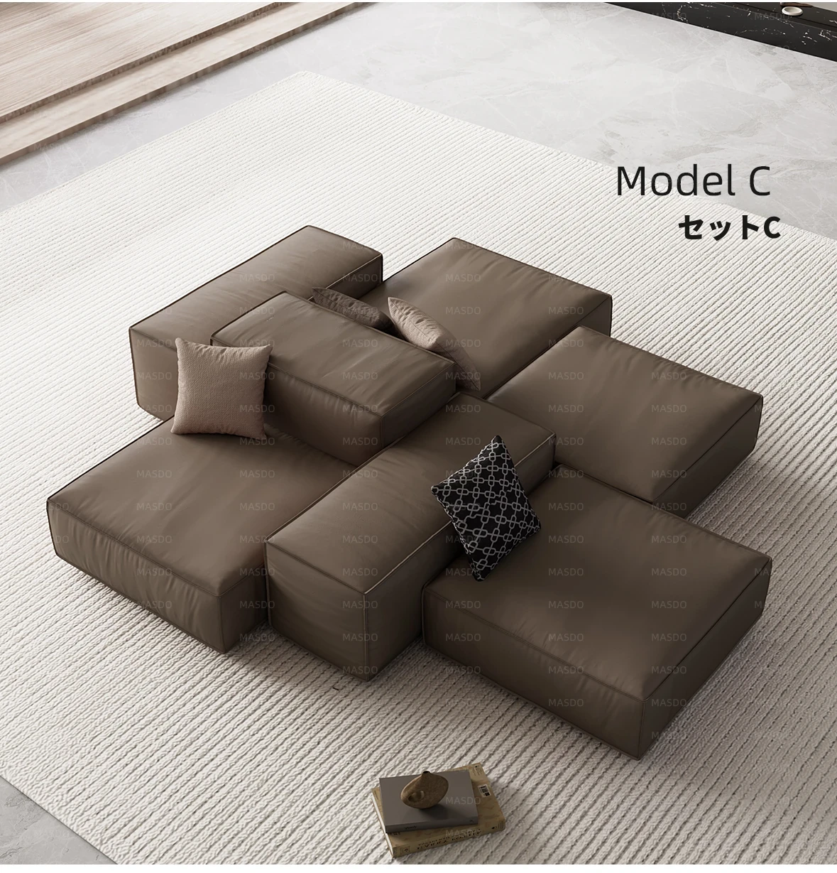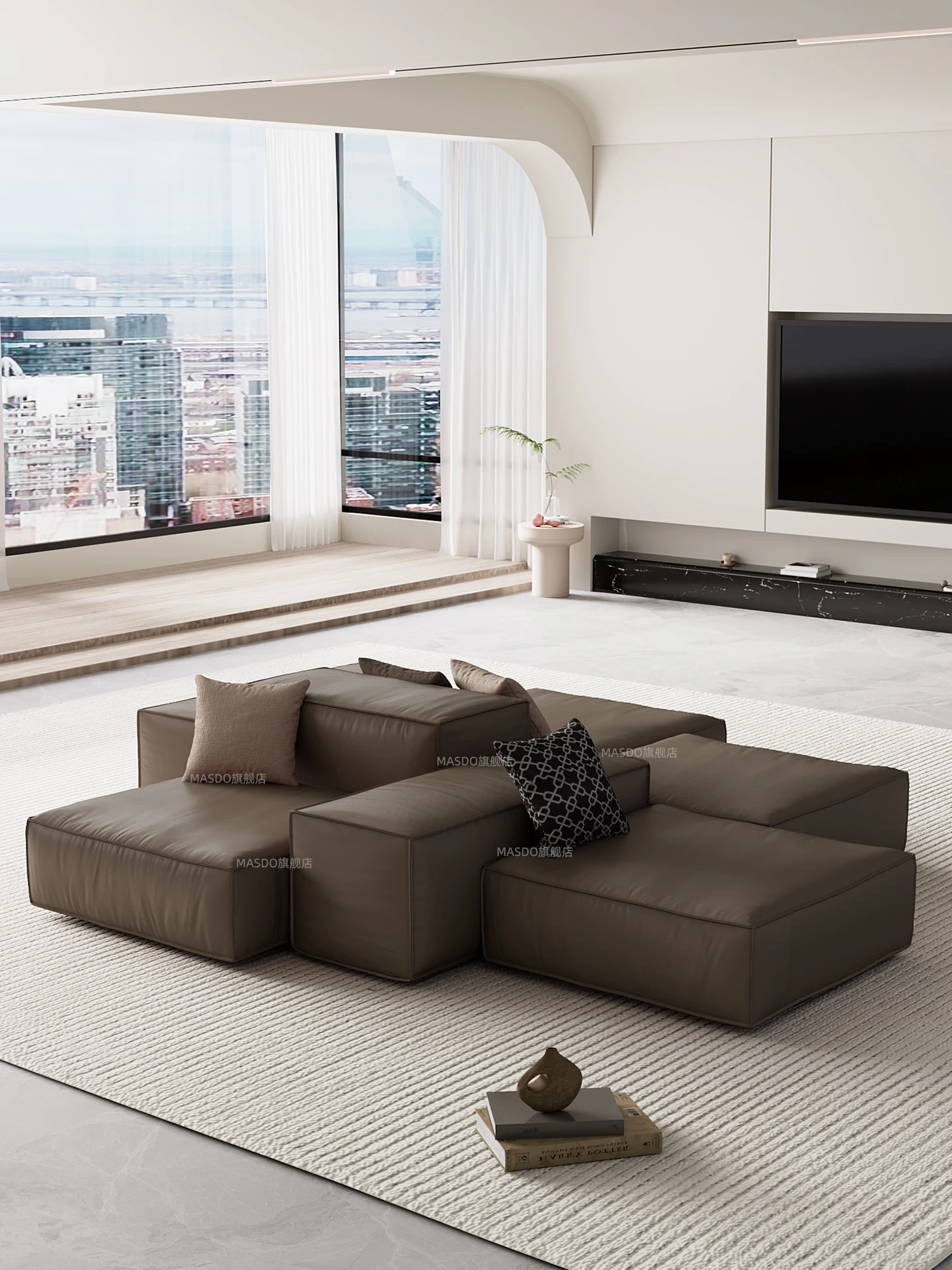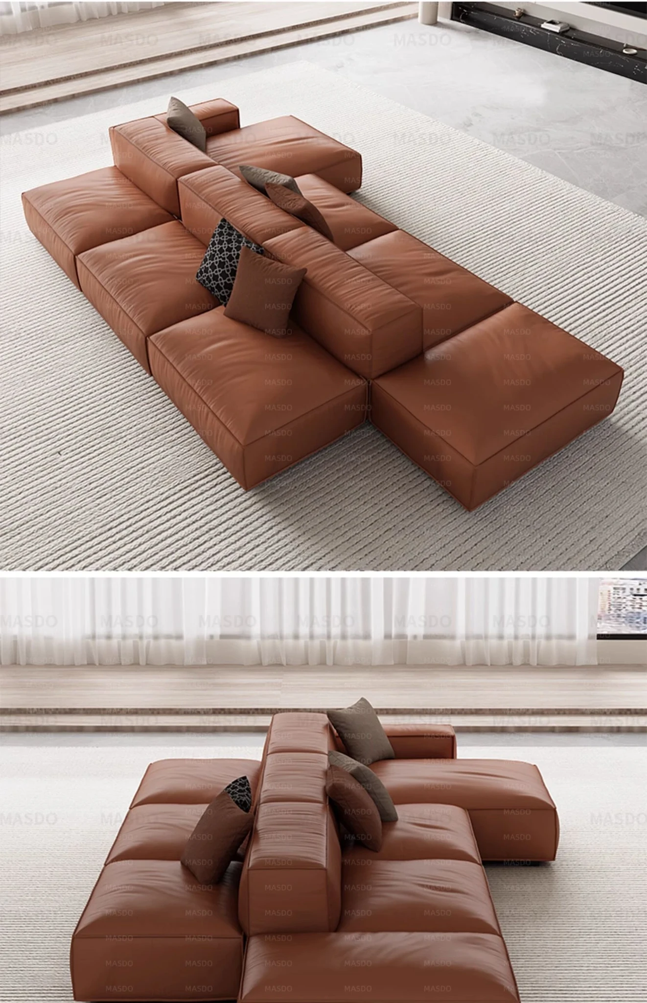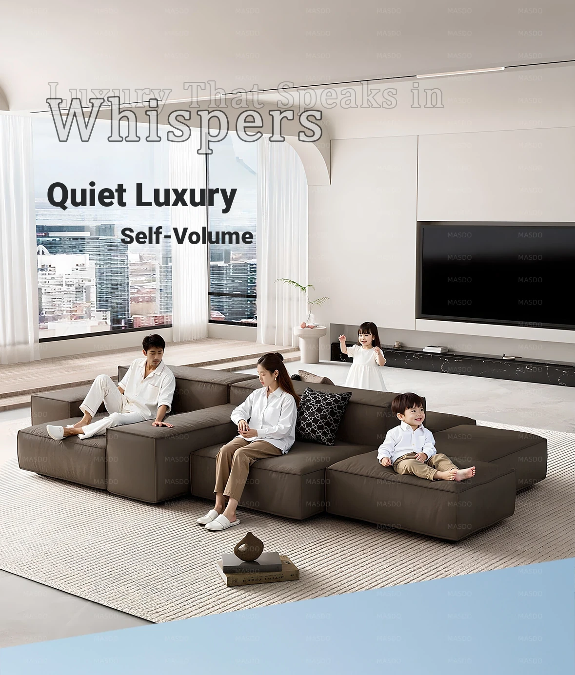 Extra Soft Modular Tofu Block Sofa - Versatile Italian Leather, Double-Sided Design for Open Living Spaces, Perfect for Stylish Interiors