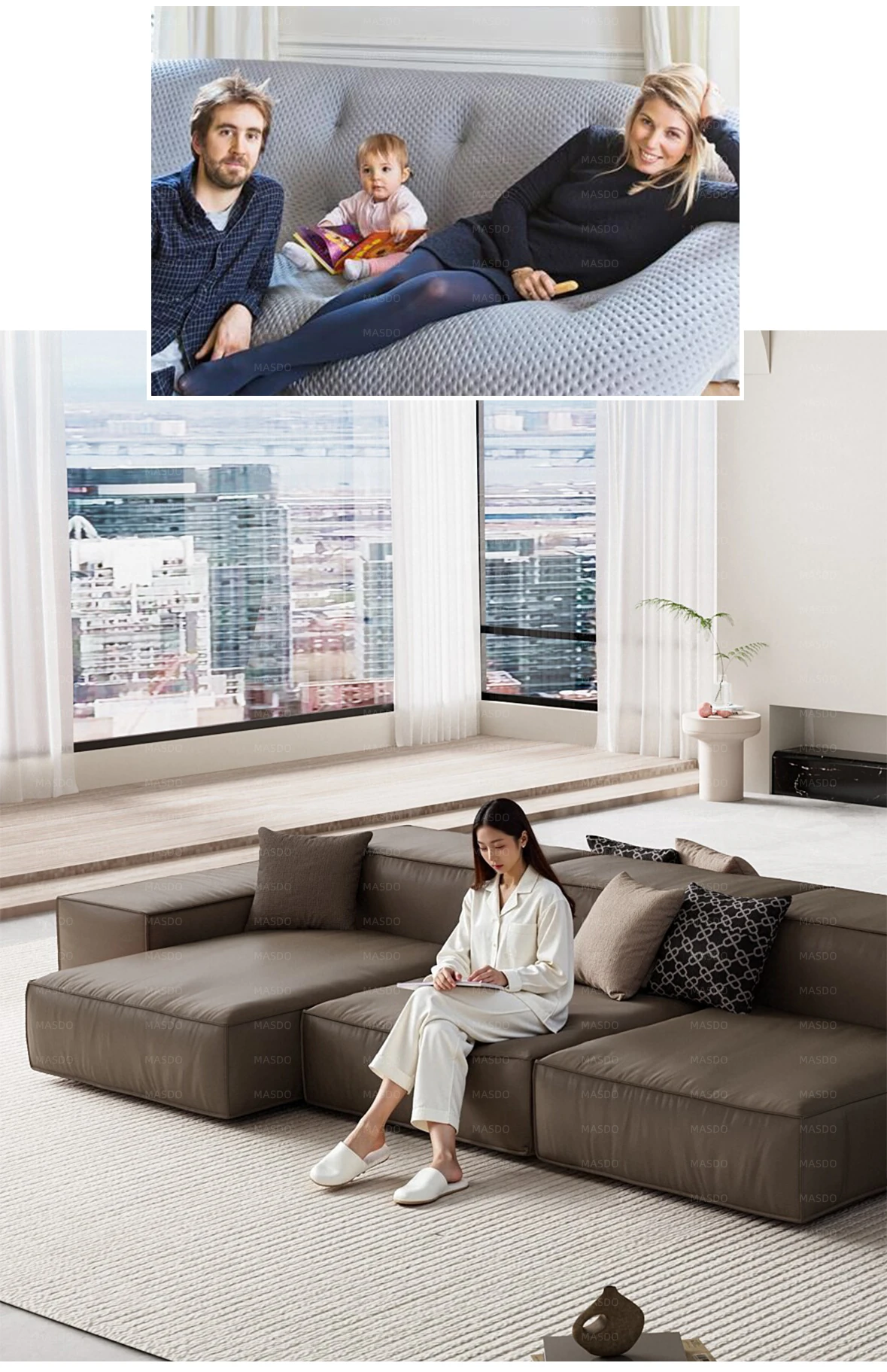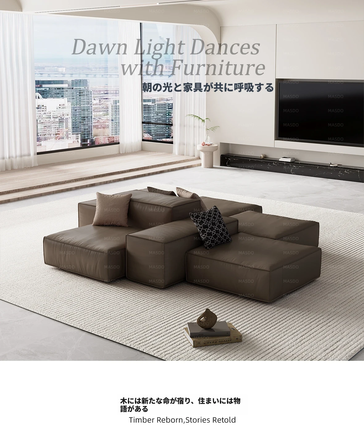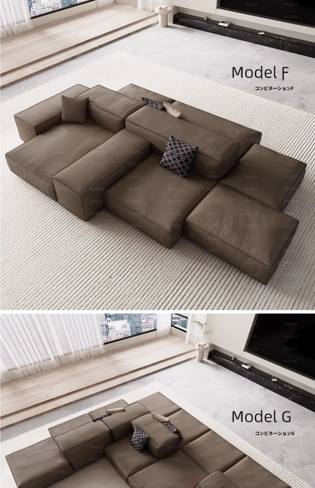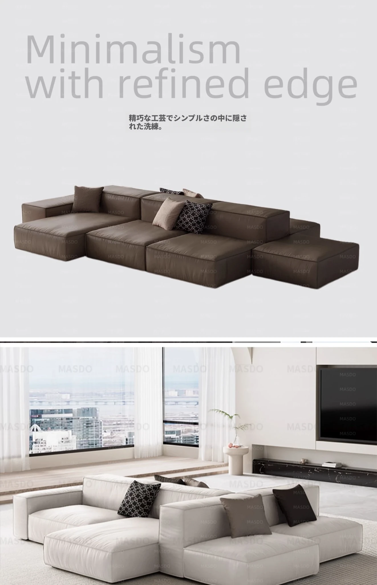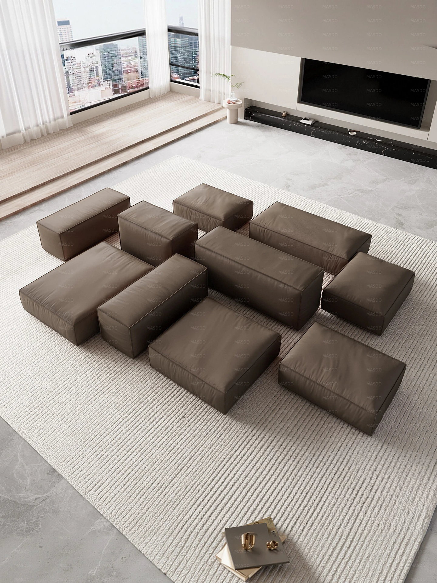 Extra Soft Modular Tofu Block Sofa - Versatile Italian Leather, Double-Sided Design for Open Living Spaces, Perfect for Stylish Interiors