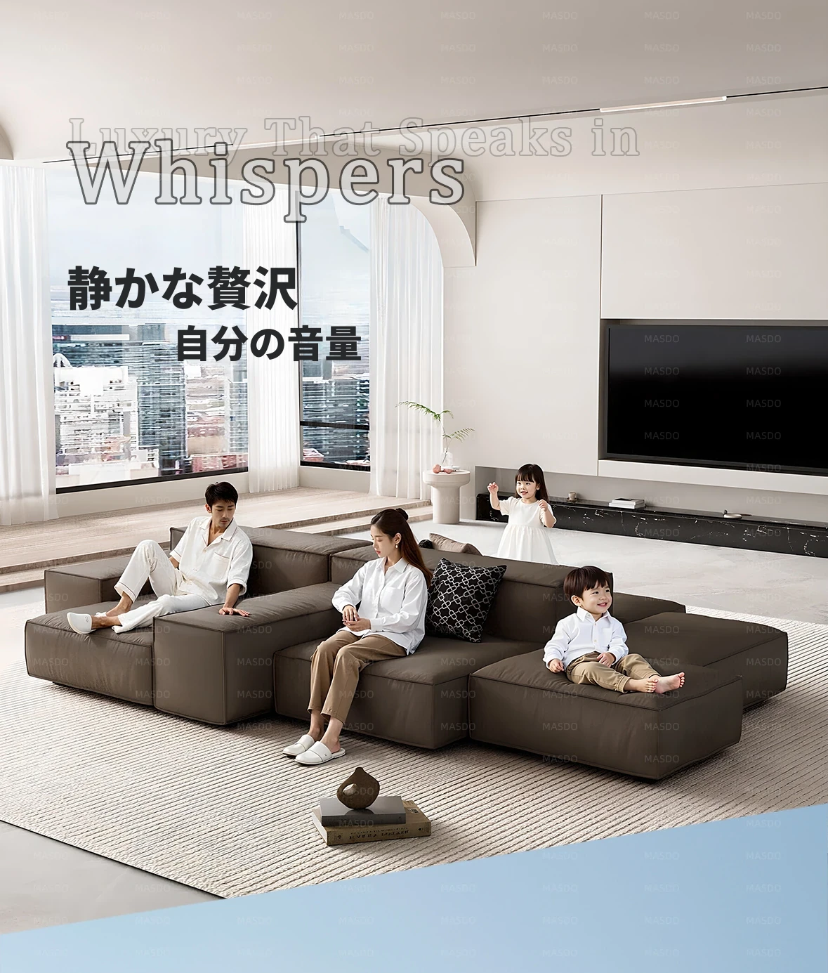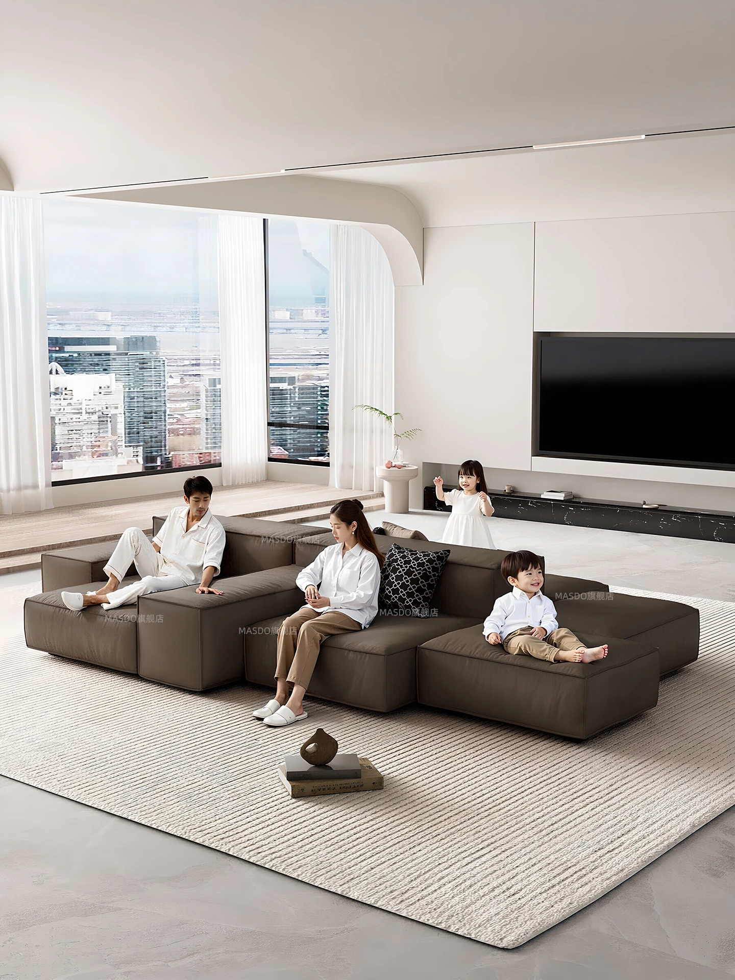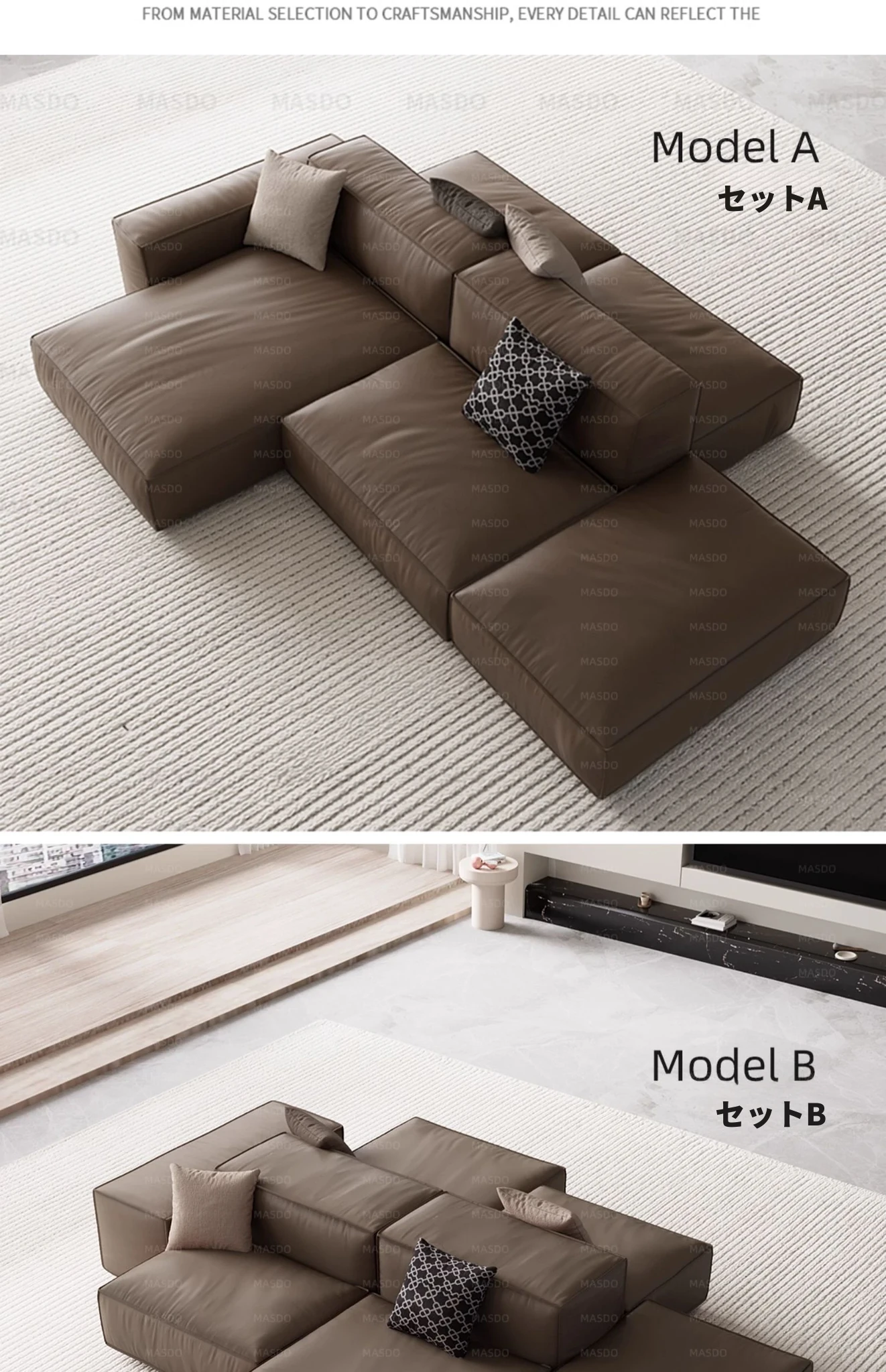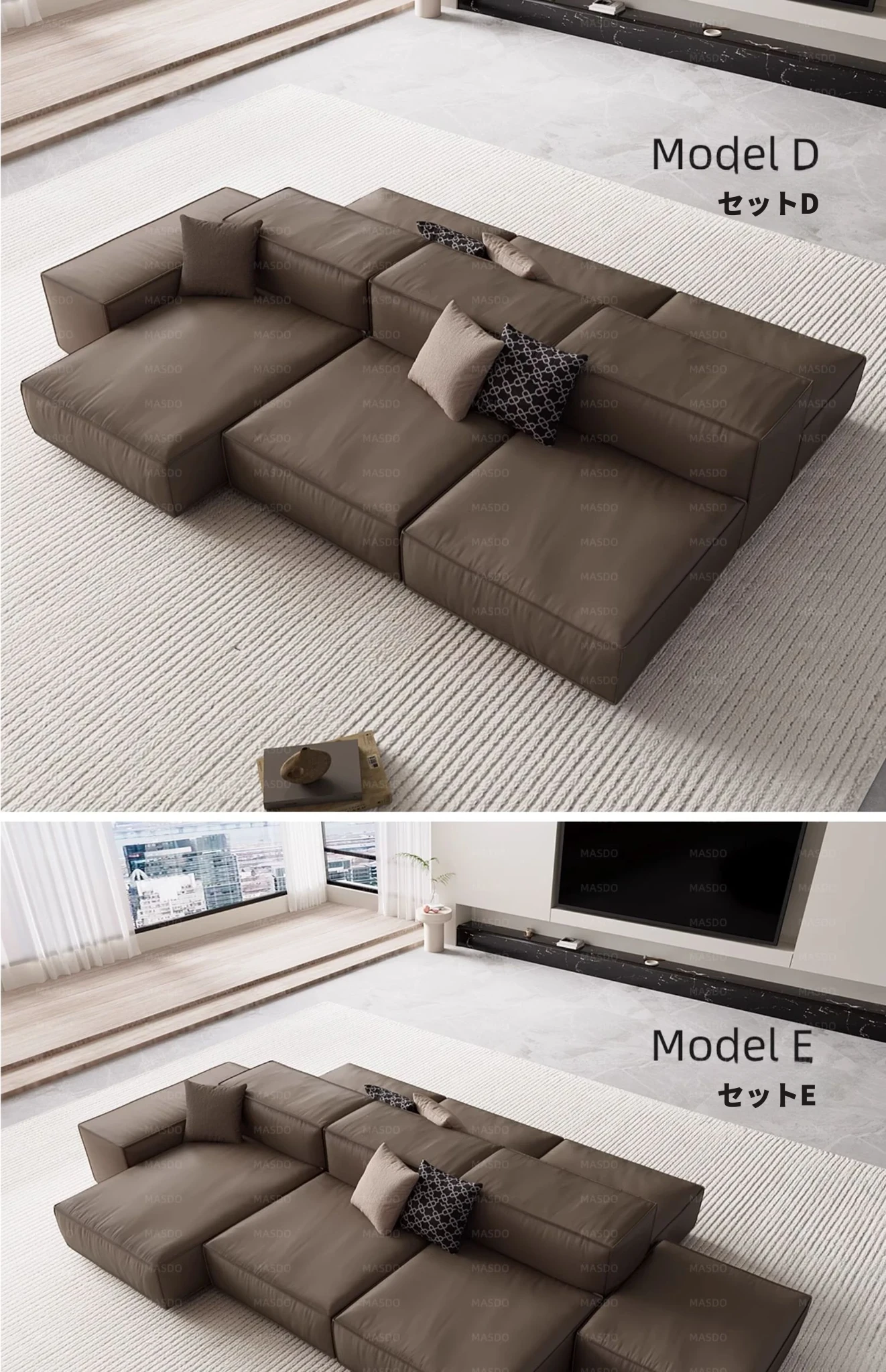 Extra Soft Modular Tofu Block Sofa - Versatile Italian Leather, Double-Sided Design for Open Living Spaces, Perfect for Stylish Interiors