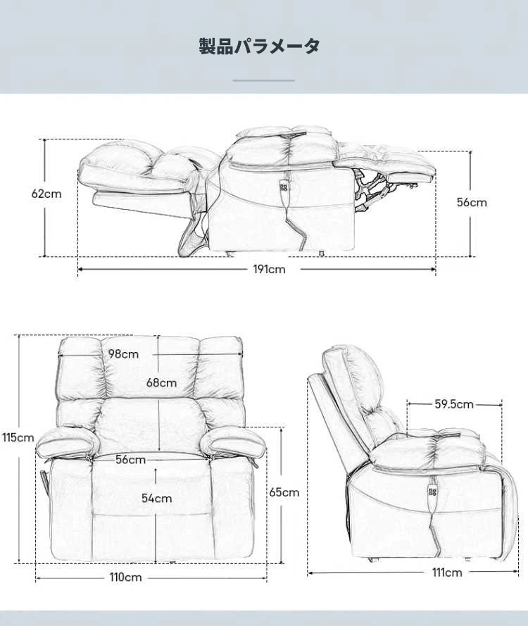 工場直送!高級レザー電動リクライニングチェア 多機能サポートチェア 快適なリビング家具で、あなたのくつろぎの時間をさらに特別に!
