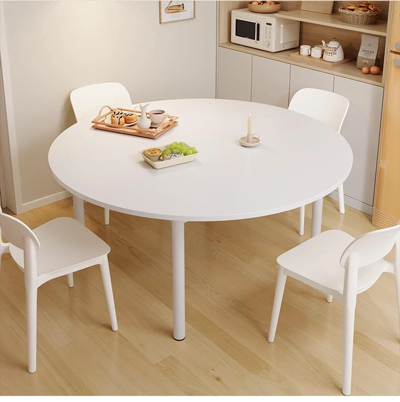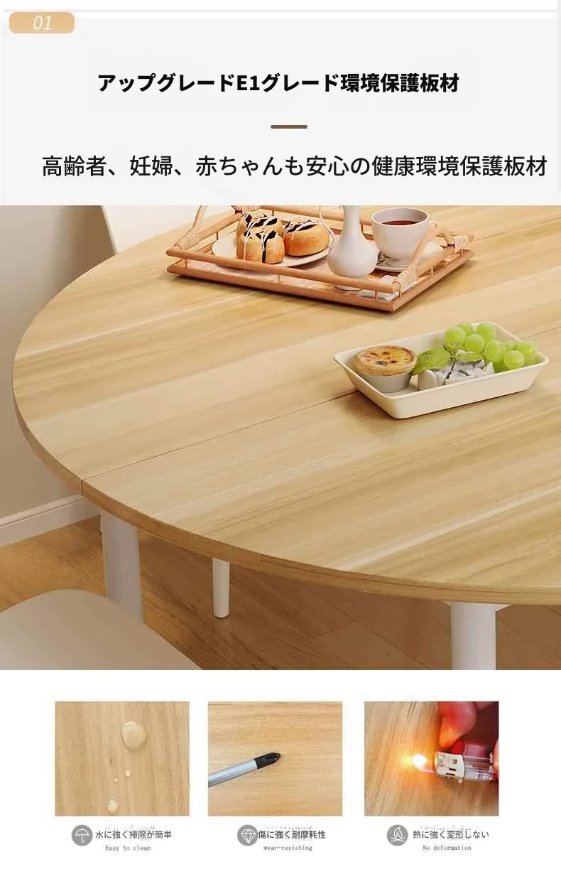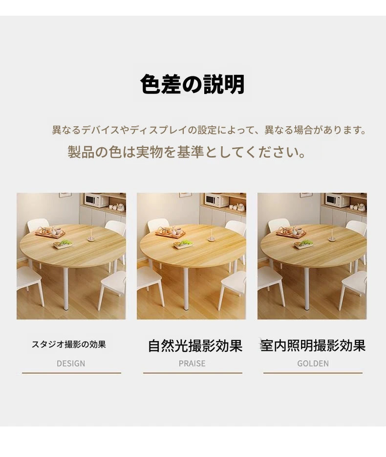 折りたたみ式の円形テーブル - 小スペースに最適な家庭用ダイニングテーブル!ホテルや家庭で使用できる大きなテーブルトップ、シンプルで実用的なデザイン。使わないときはコンパクトに収納可能!