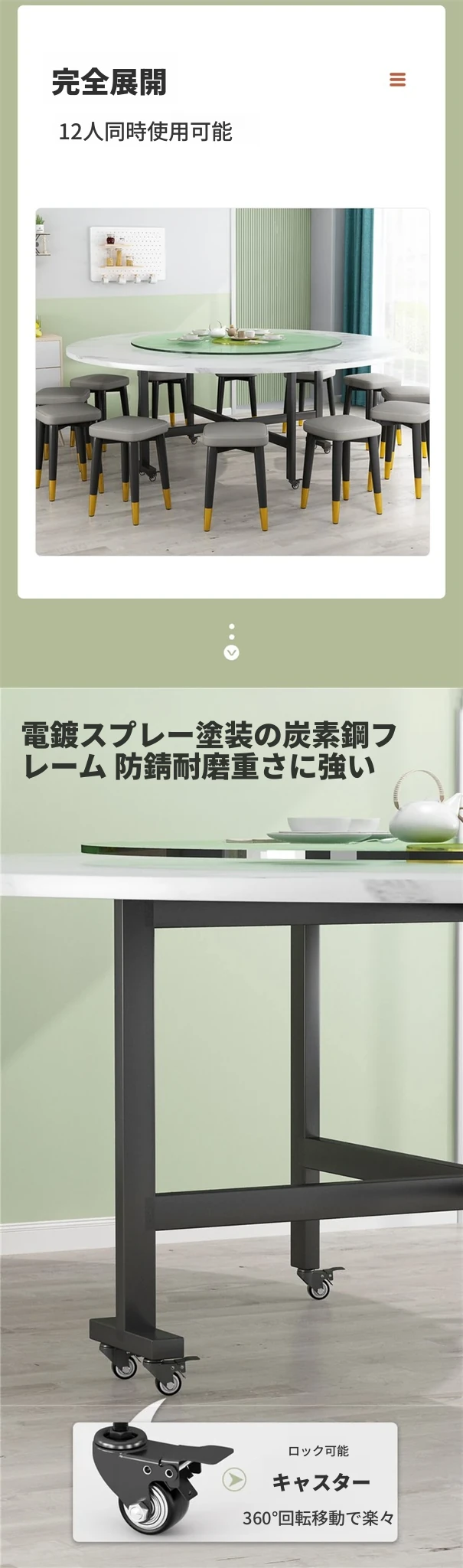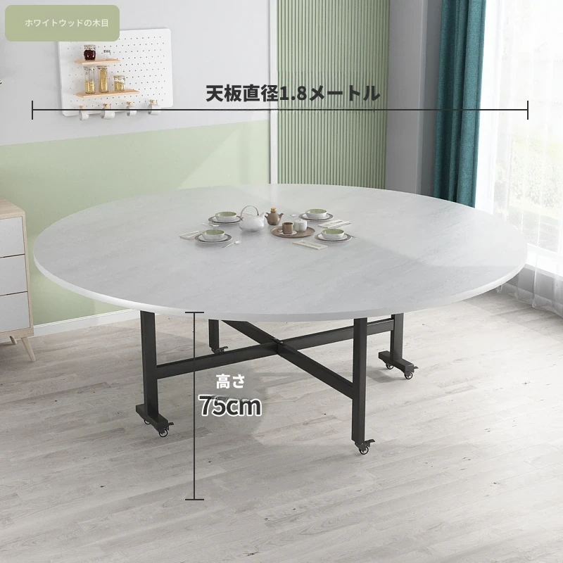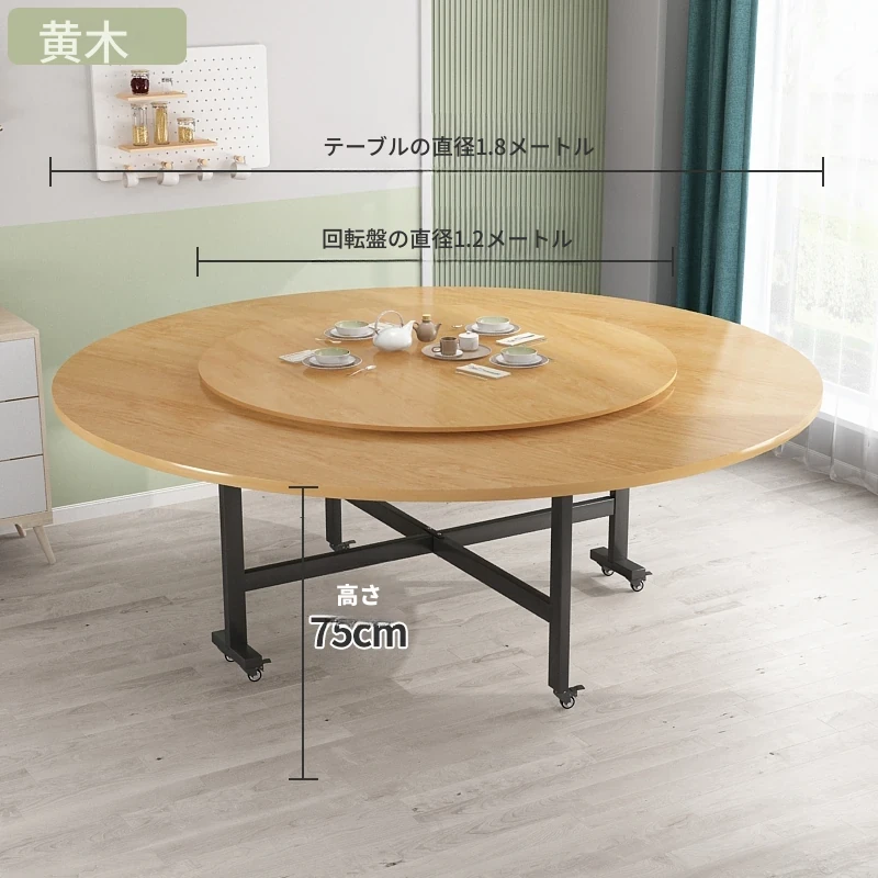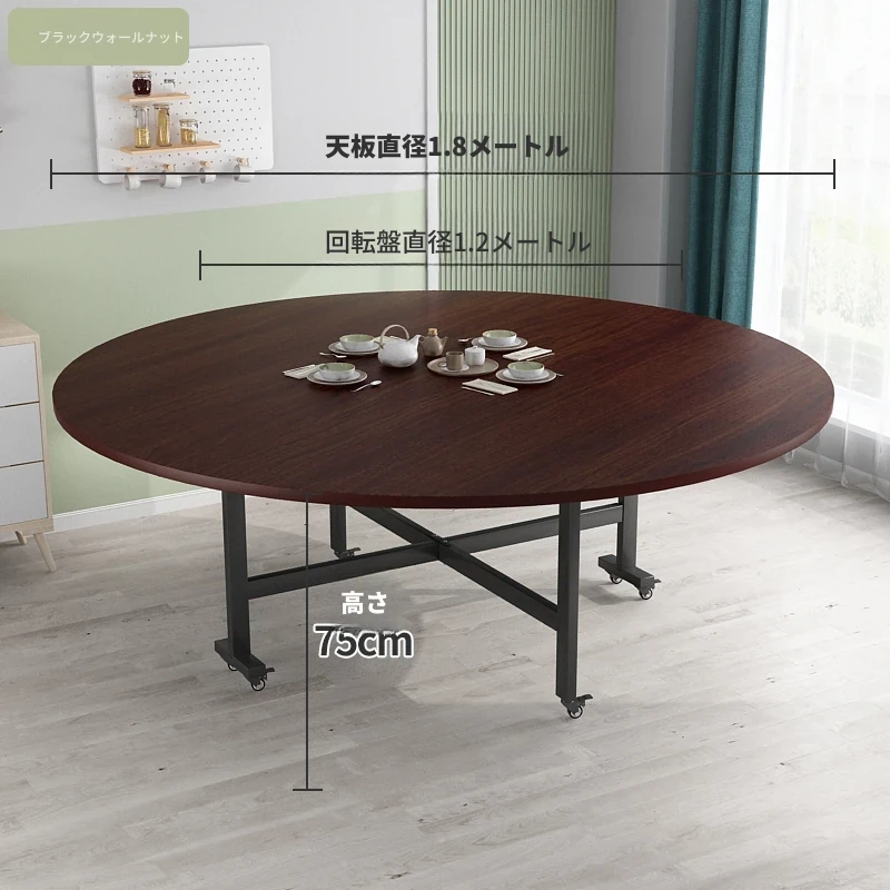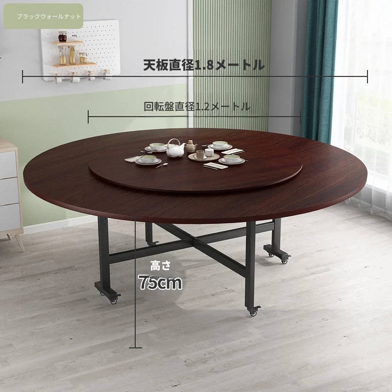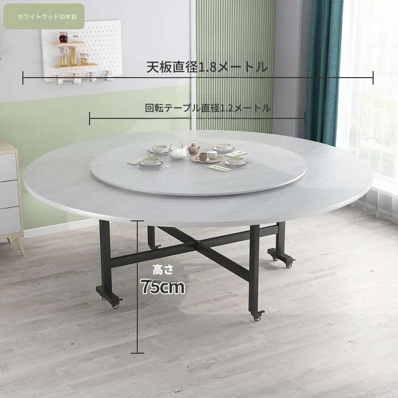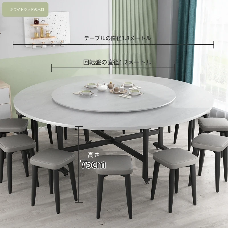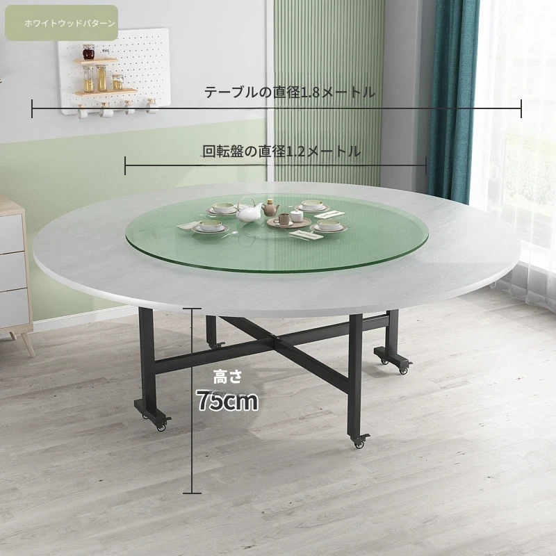 折りたたみ円卓 食卓 家庭用 大きな円卓 回転盤付き 家族の集まりに最適 12人用 コンパクトサイズで省スペース!