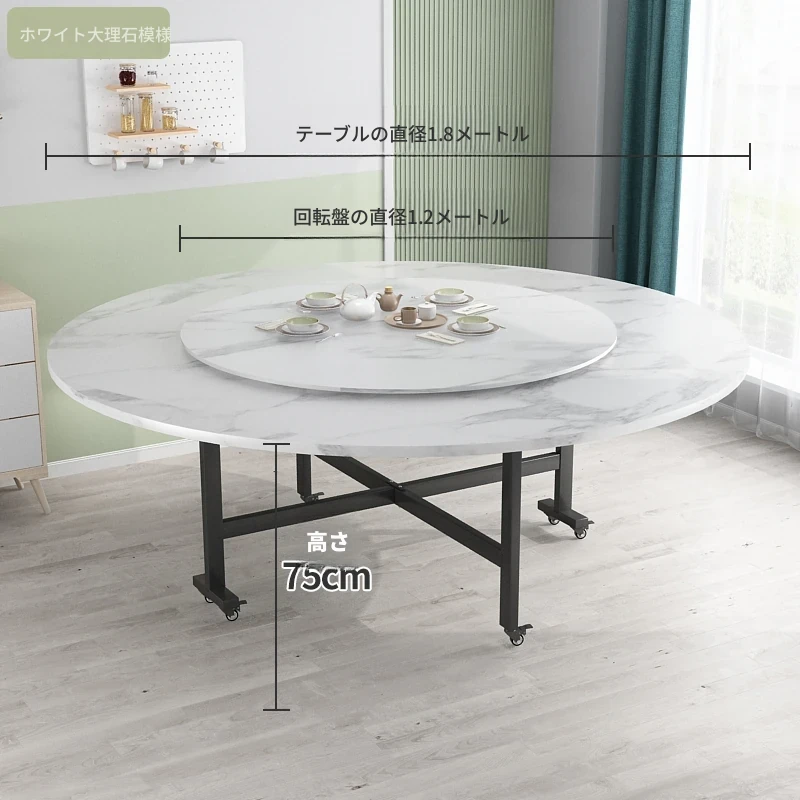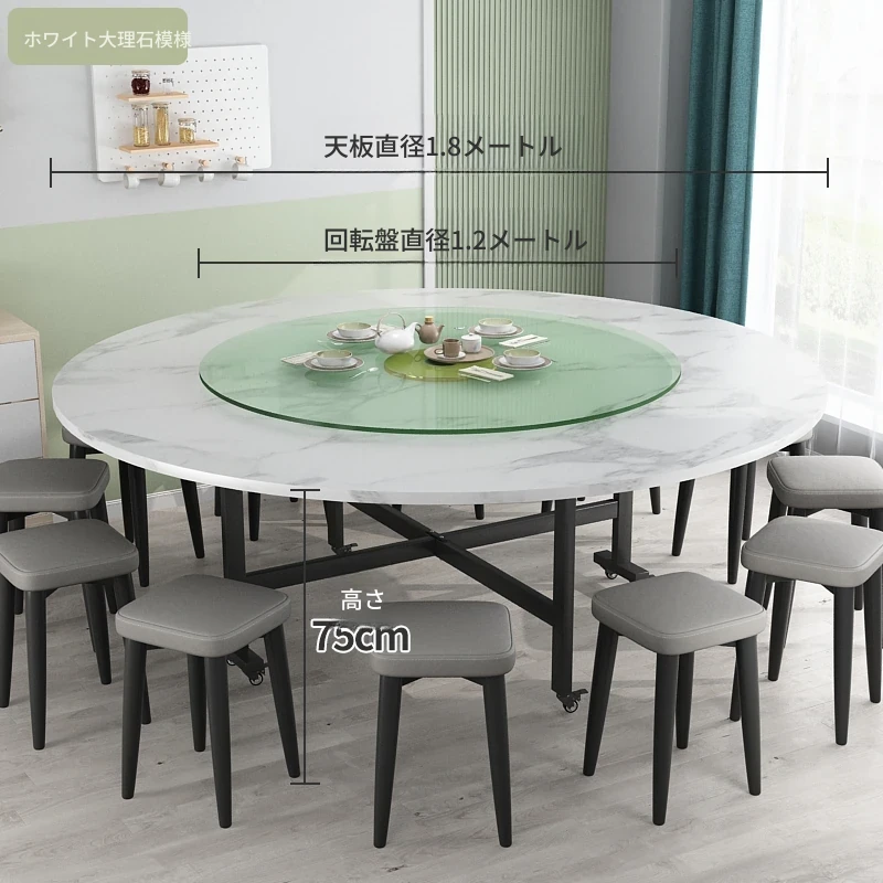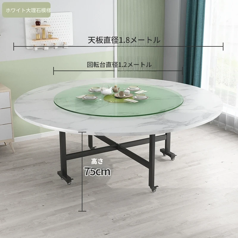 1.8メートル白大理石+1.2メートル強化ガラス回転盤