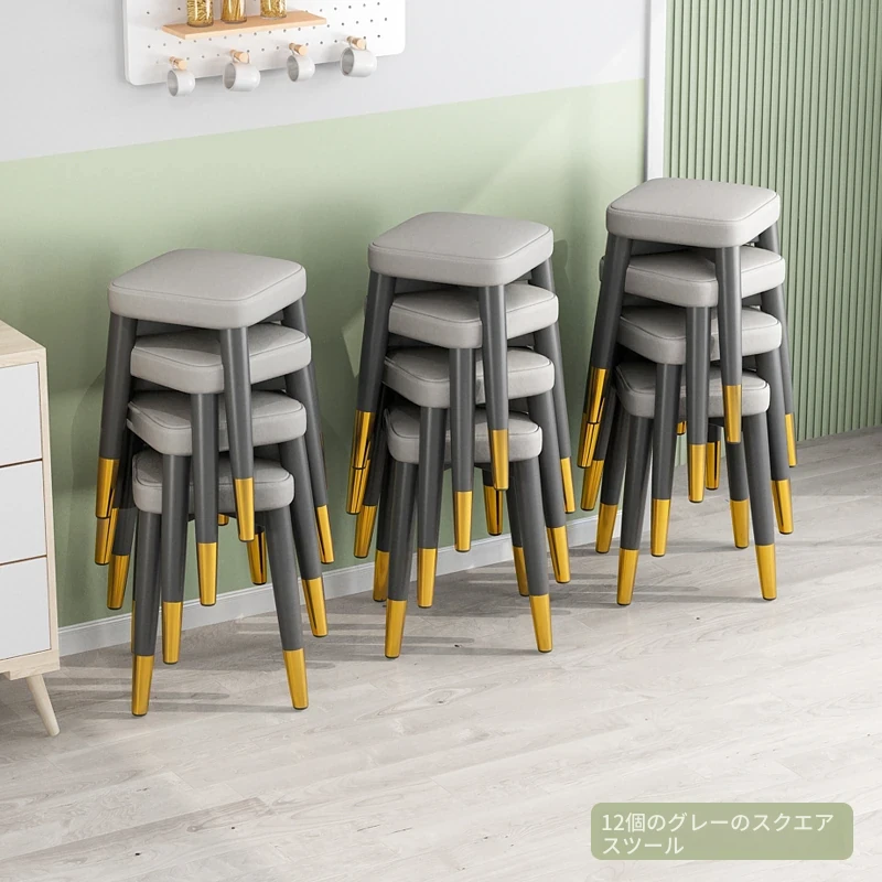 12角スツール-灰色テクノロジー布スツール面-黒金脚