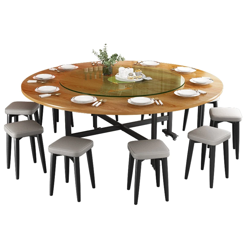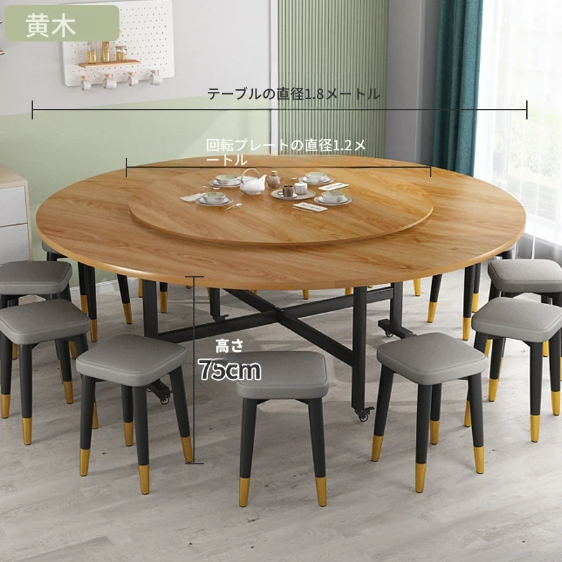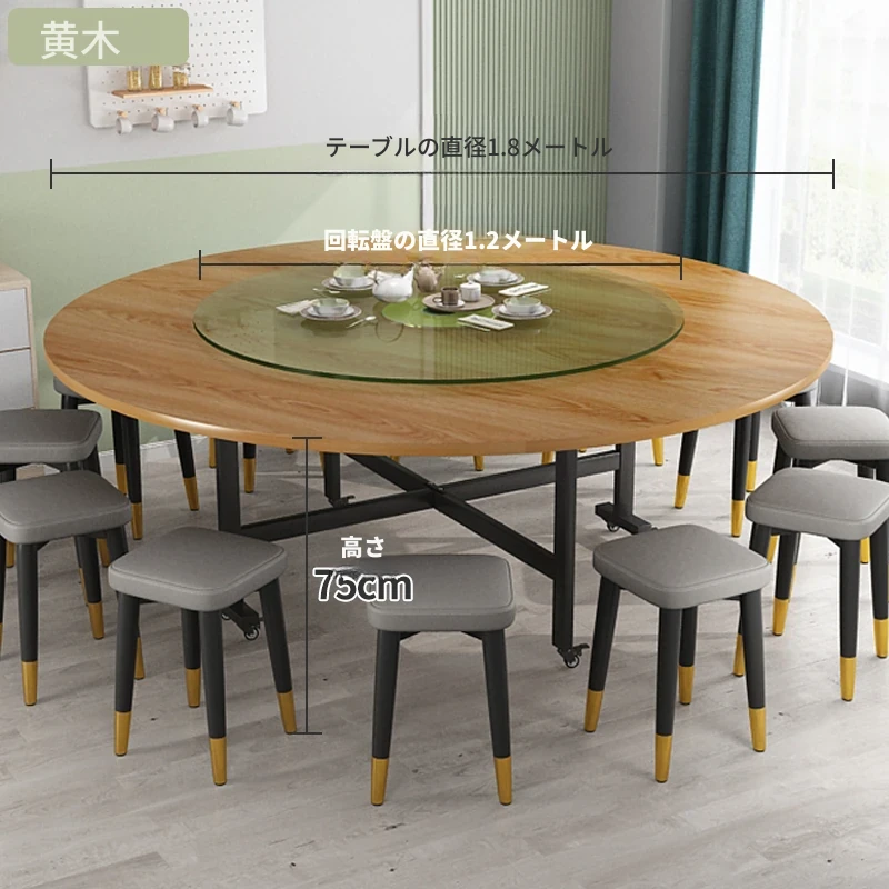 1.8メートル黄色木目+1.2メートル強化ガラス回転盤+12角スツール