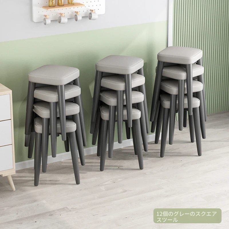 12角スツール-灰色テクノロジー布スツール面-全黒脚