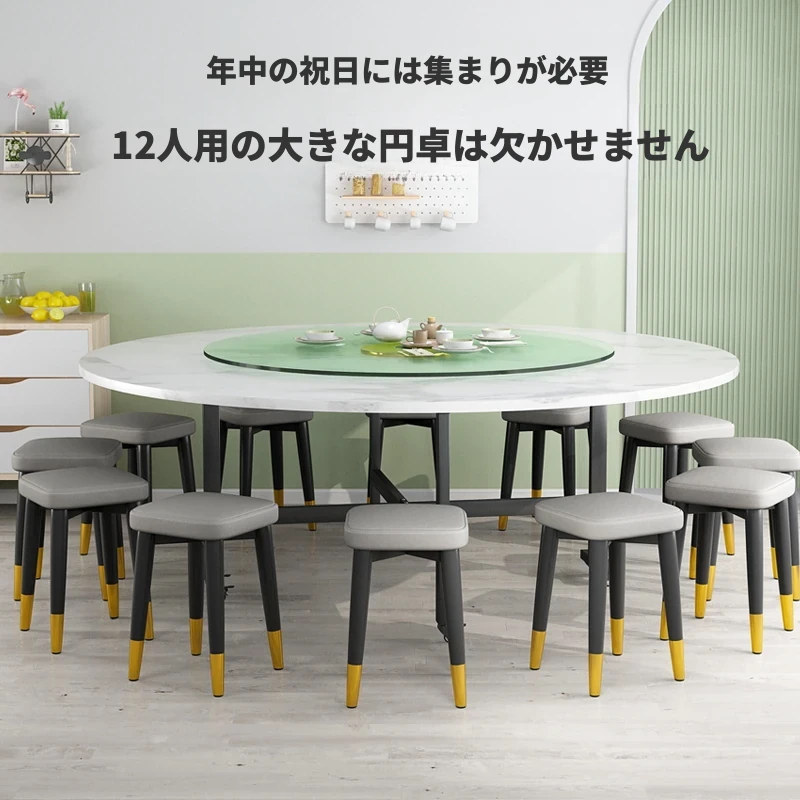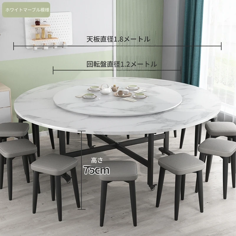 1.8メートル白大理石+1.2メートルテクスチャー回転盤+12角スツール