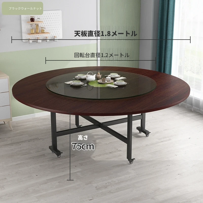 1.8メートルブラックウォルナット+1.2メートル強化ガラス回転盤