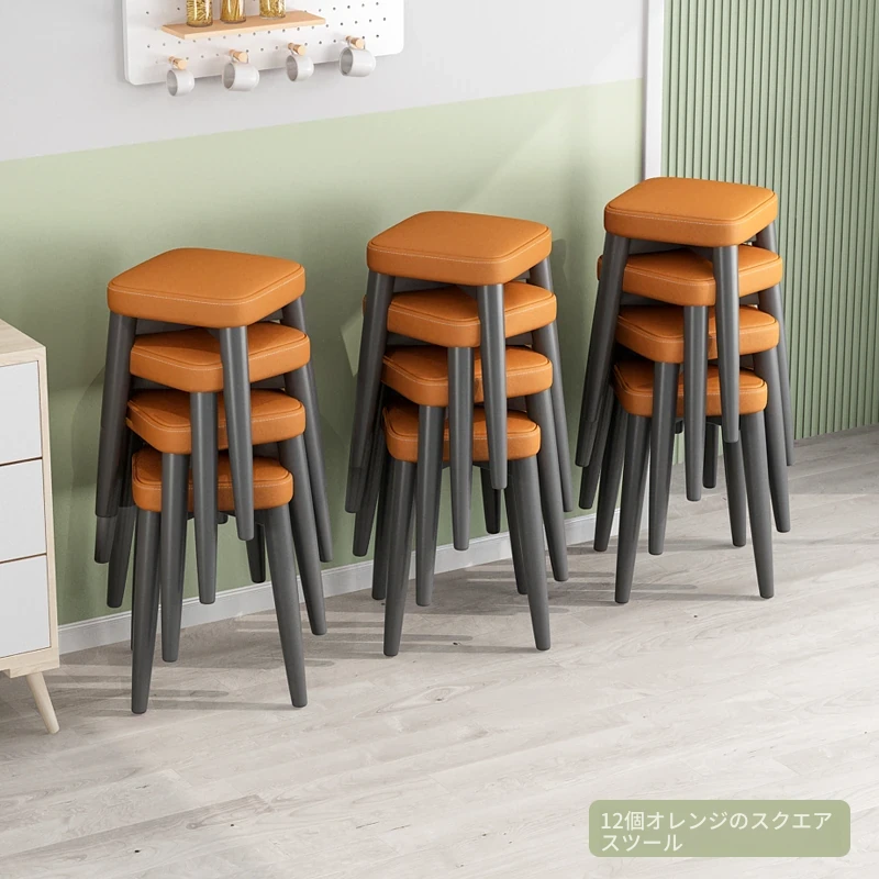 12角スツール-オレンジ色テクノロジー布スツール面-全黒脚