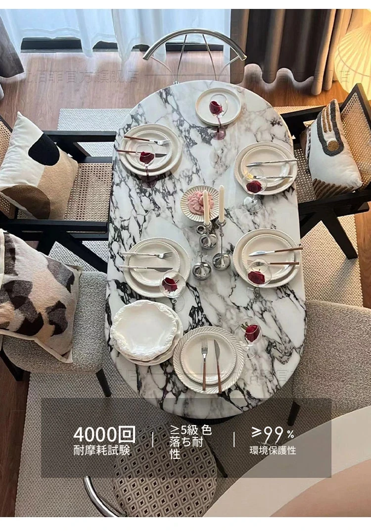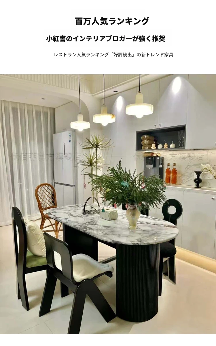 大理石ダイニングテーブル200*90CM【厚みのある丸いエッジ】
