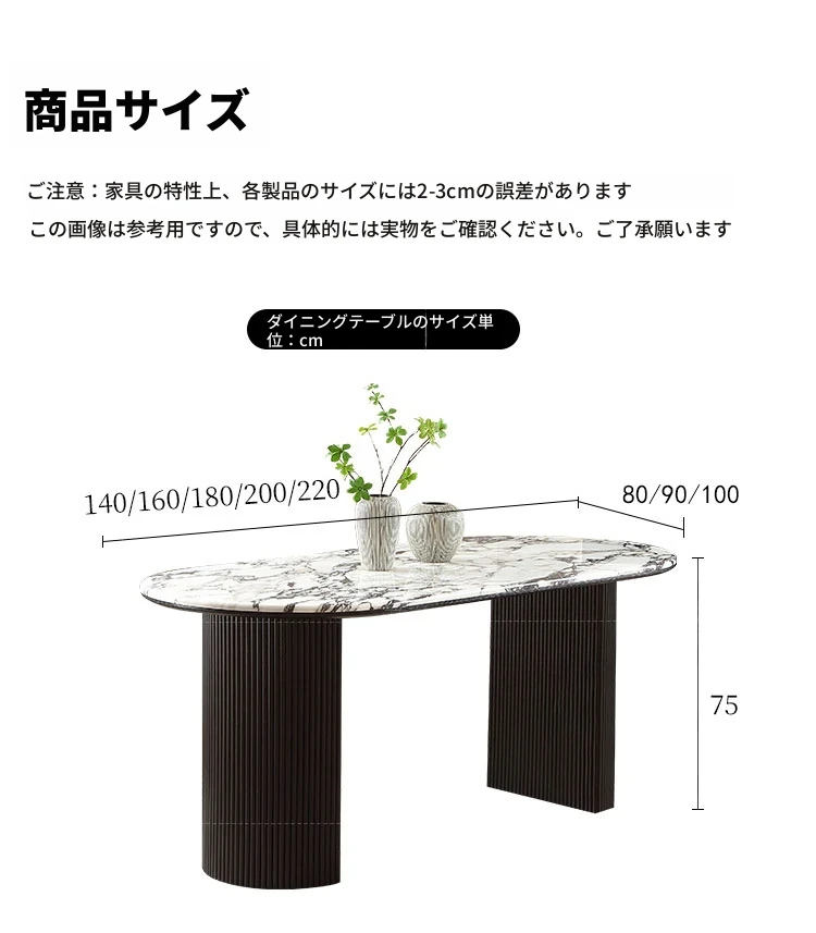 大理石ダイニングテーブル220*90CM【厚みのある丸いエッジ】