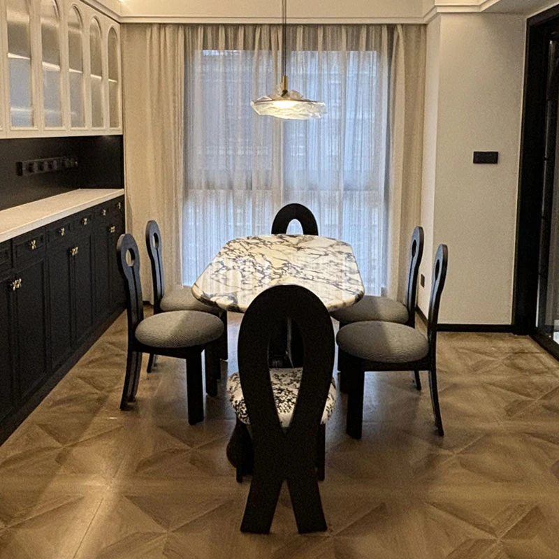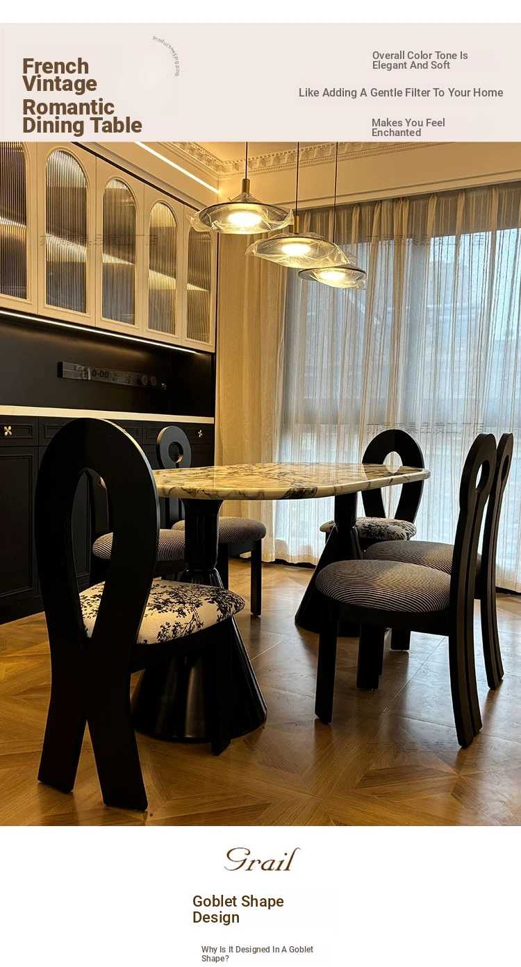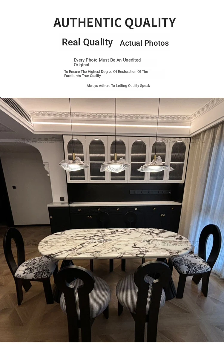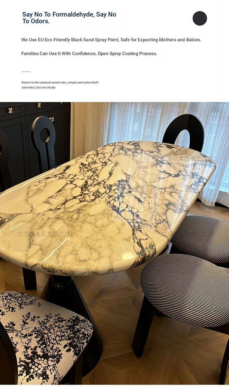 French Vintage Bulgari Marble Dining Table Set - Oval Chalice Design for Small Spaces, Perfect for Home Use, Includes Stylish Chairs, Embrace Timeless Elegance in Your Dining Room!