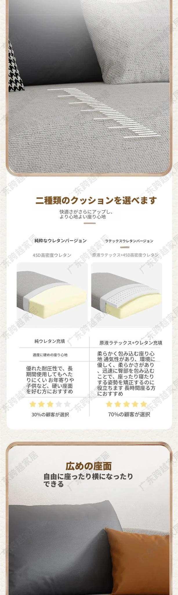 直排【大四人位】3.4メートル+フットスツール(原乳ラテックス)エレガントなベージュ