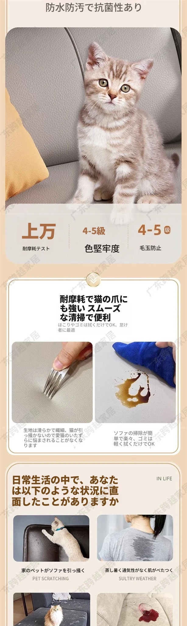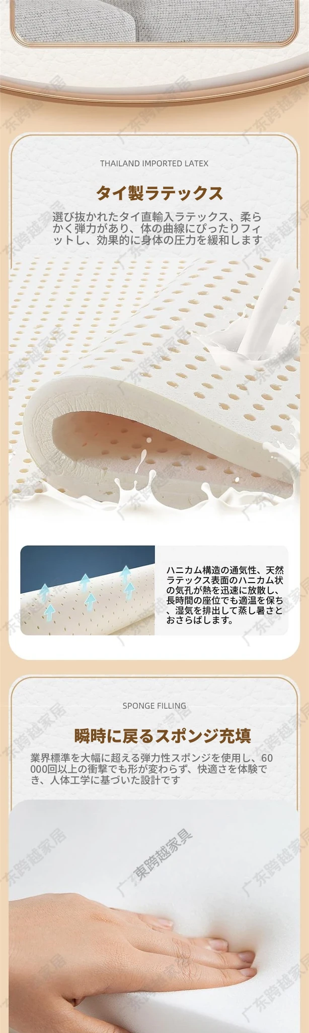直排【大四人位】3.4メートル(原材料ラテックス)エレガントなベージュ