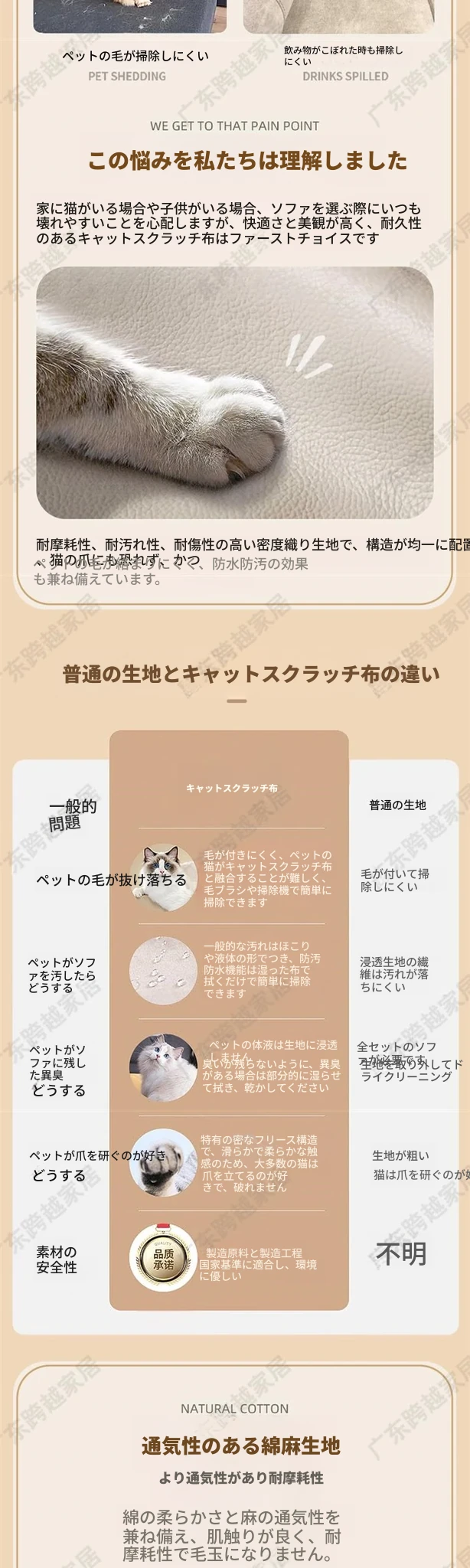 イタリアンスタイルの軽奢猫爪布製ソファ - 小型住居に最適な現代的かつシンプルなデザイン、2024年新作!快適な座り心地を提供し、リビングをおしゃれに演出します。