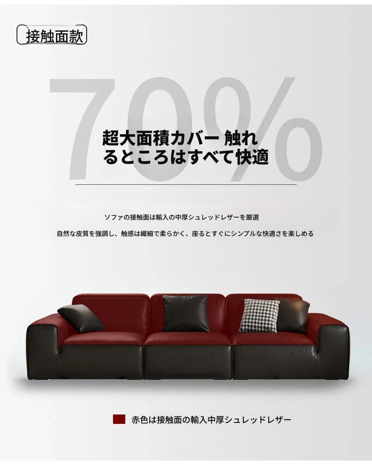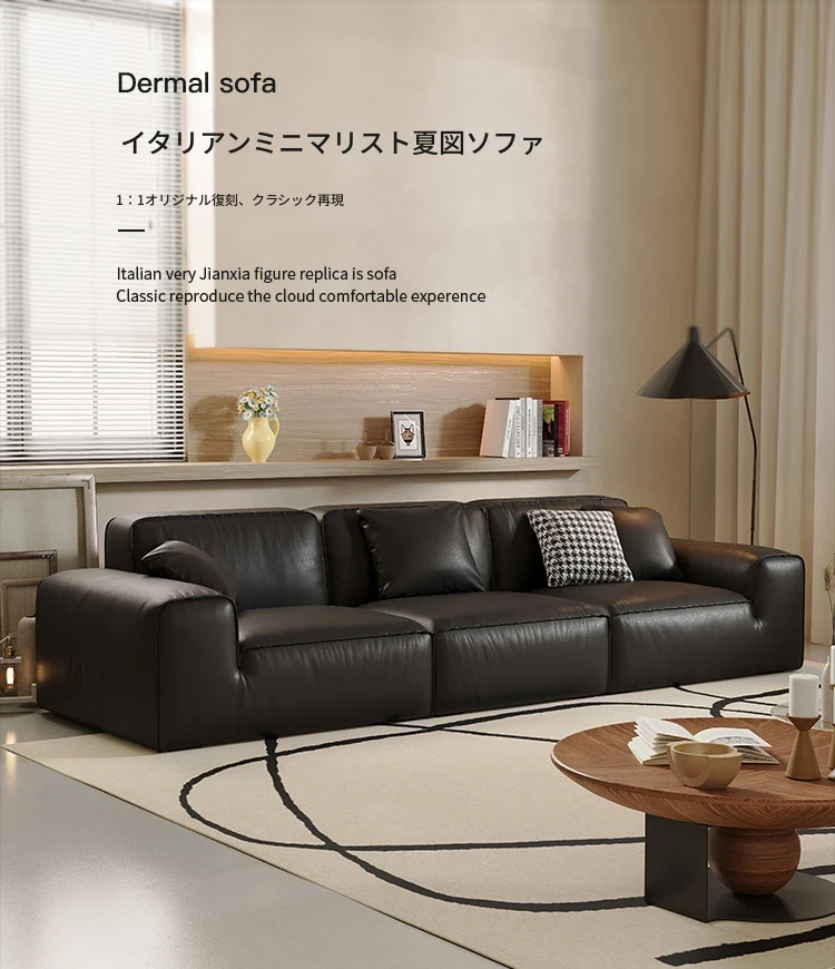 イタリアンスタイルの夏の大黒牛本革ソファー、リビングルームに最適な小型住宅向け!クリーミーなデザインと一級牛革を使用した直線的なデザインで、デザイナーの極簡スタイルを実現。優雅さと機能性を兼ね備えた一品です!