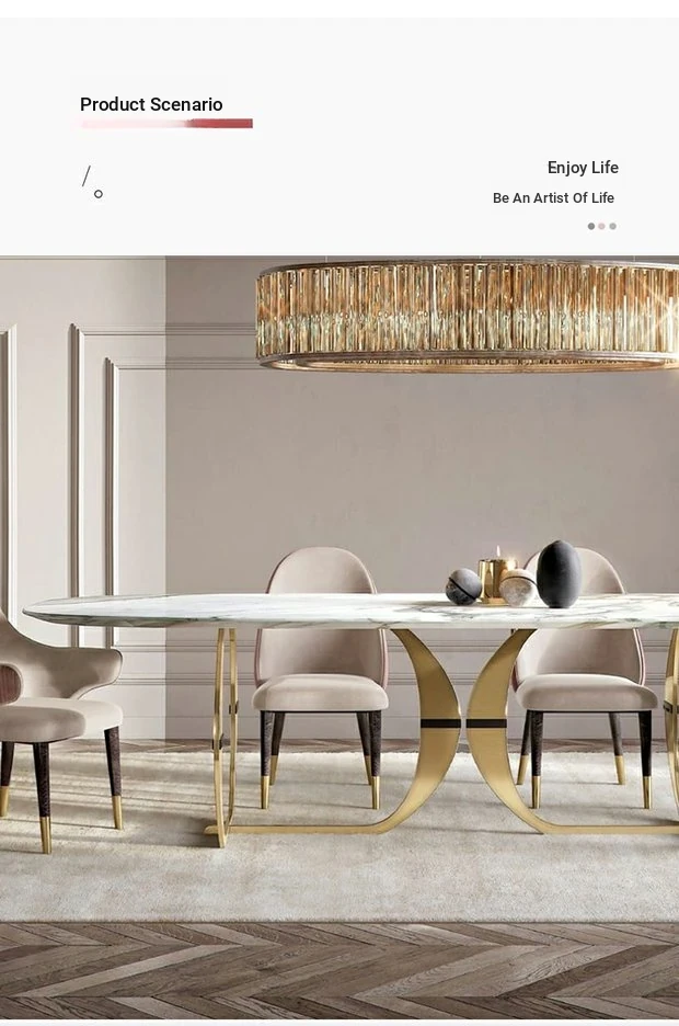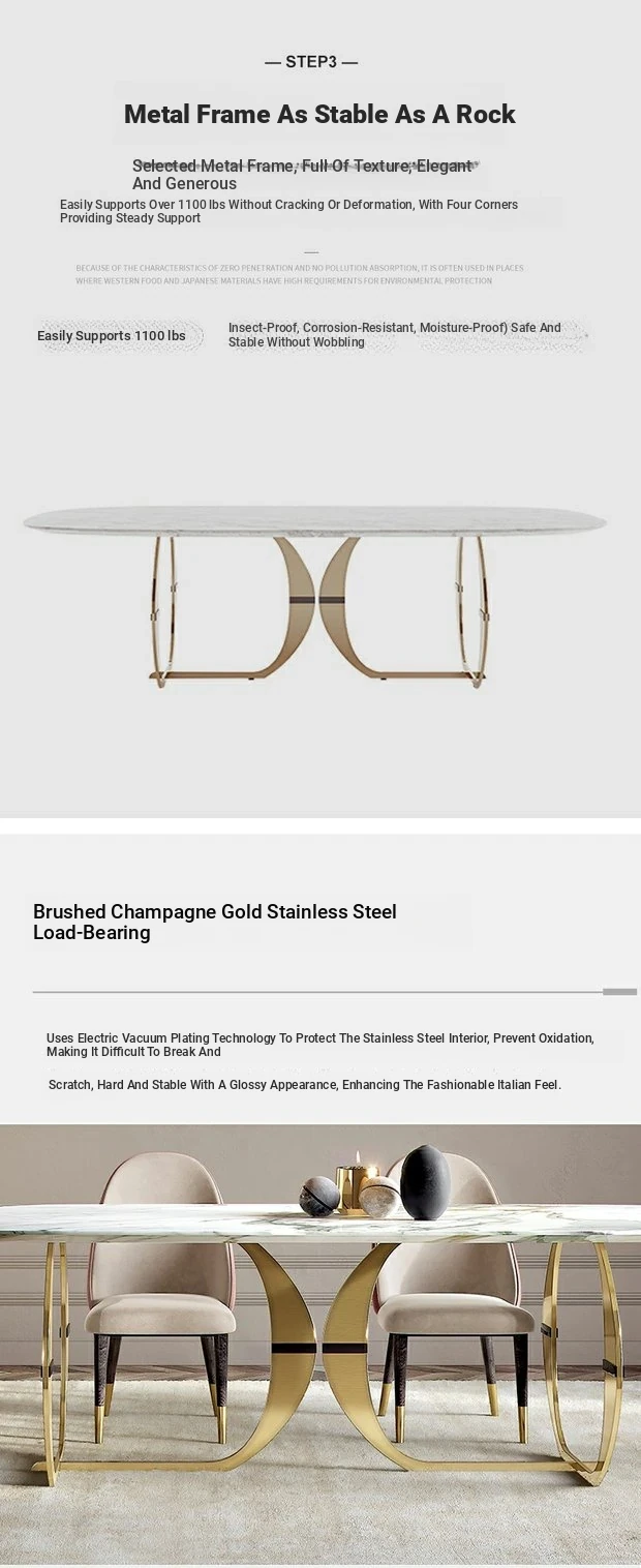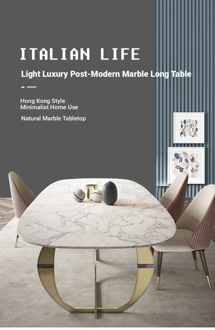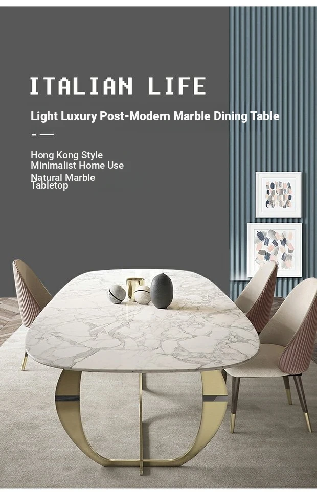 Italian Luxury Marble Dining Table with Stainless Steel Frame - Modern Nordic Minimalist Home Dining Set with Chairs