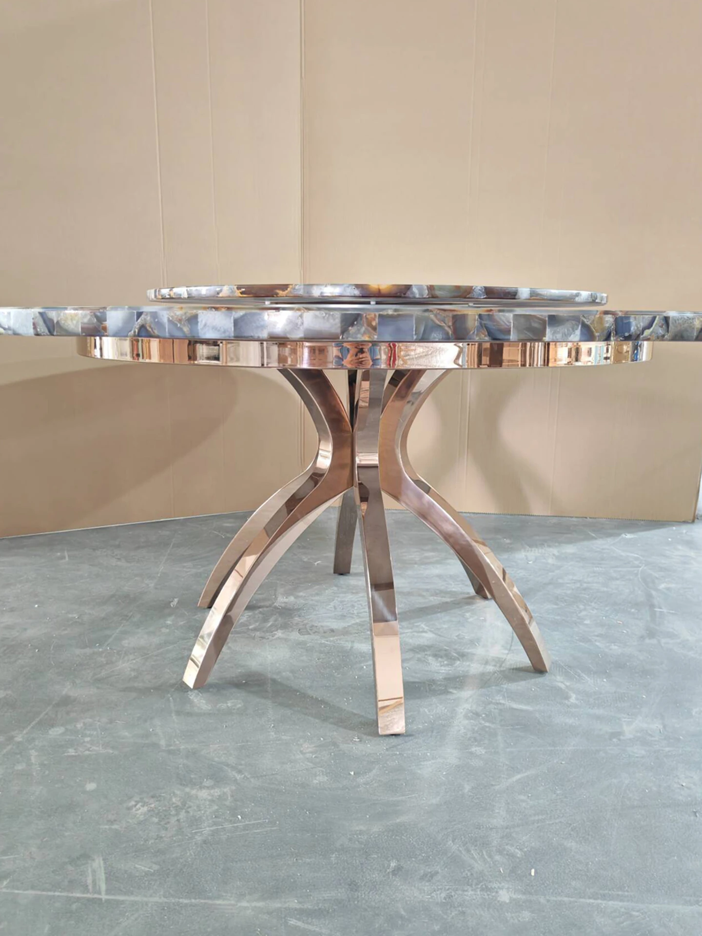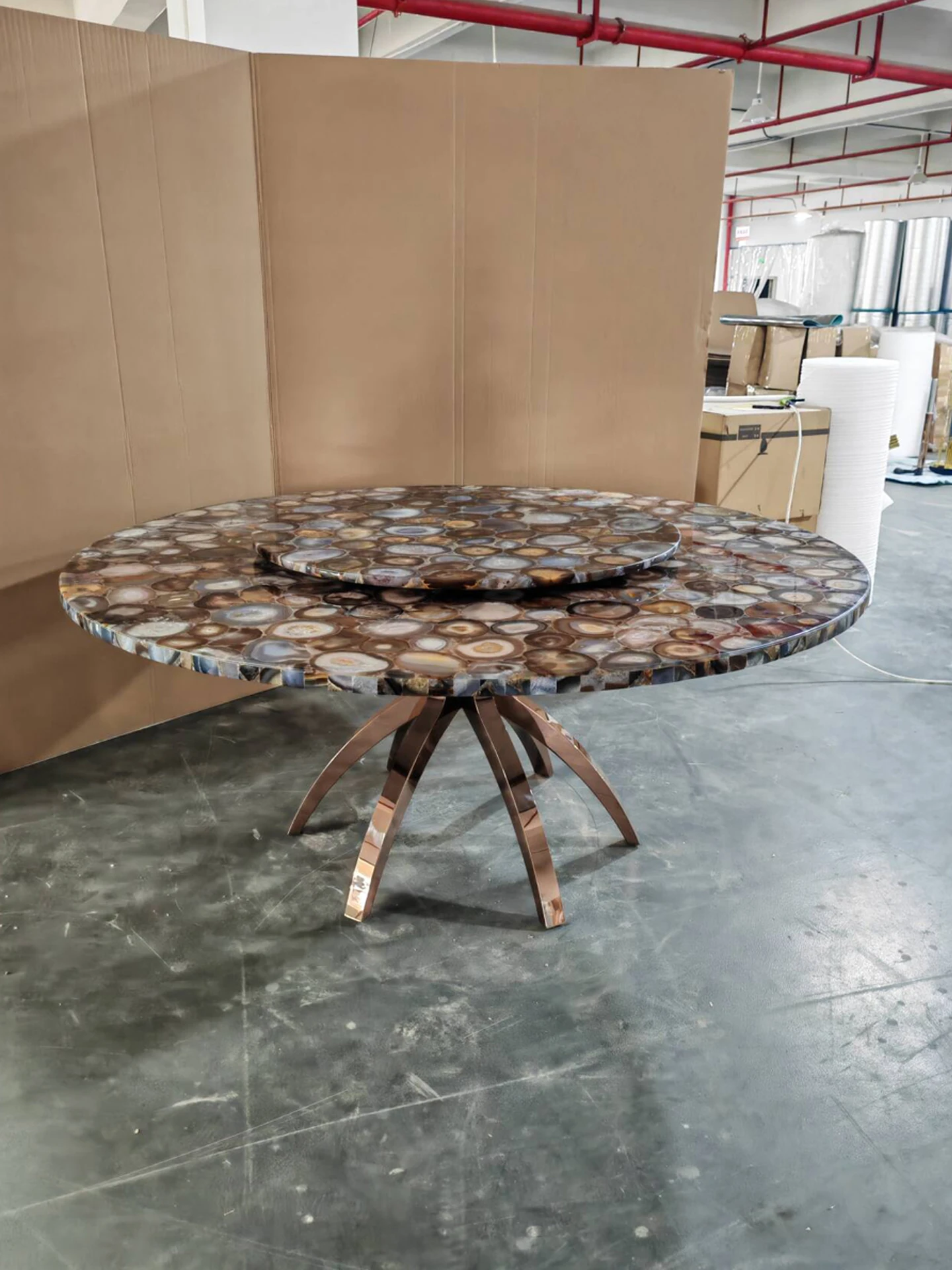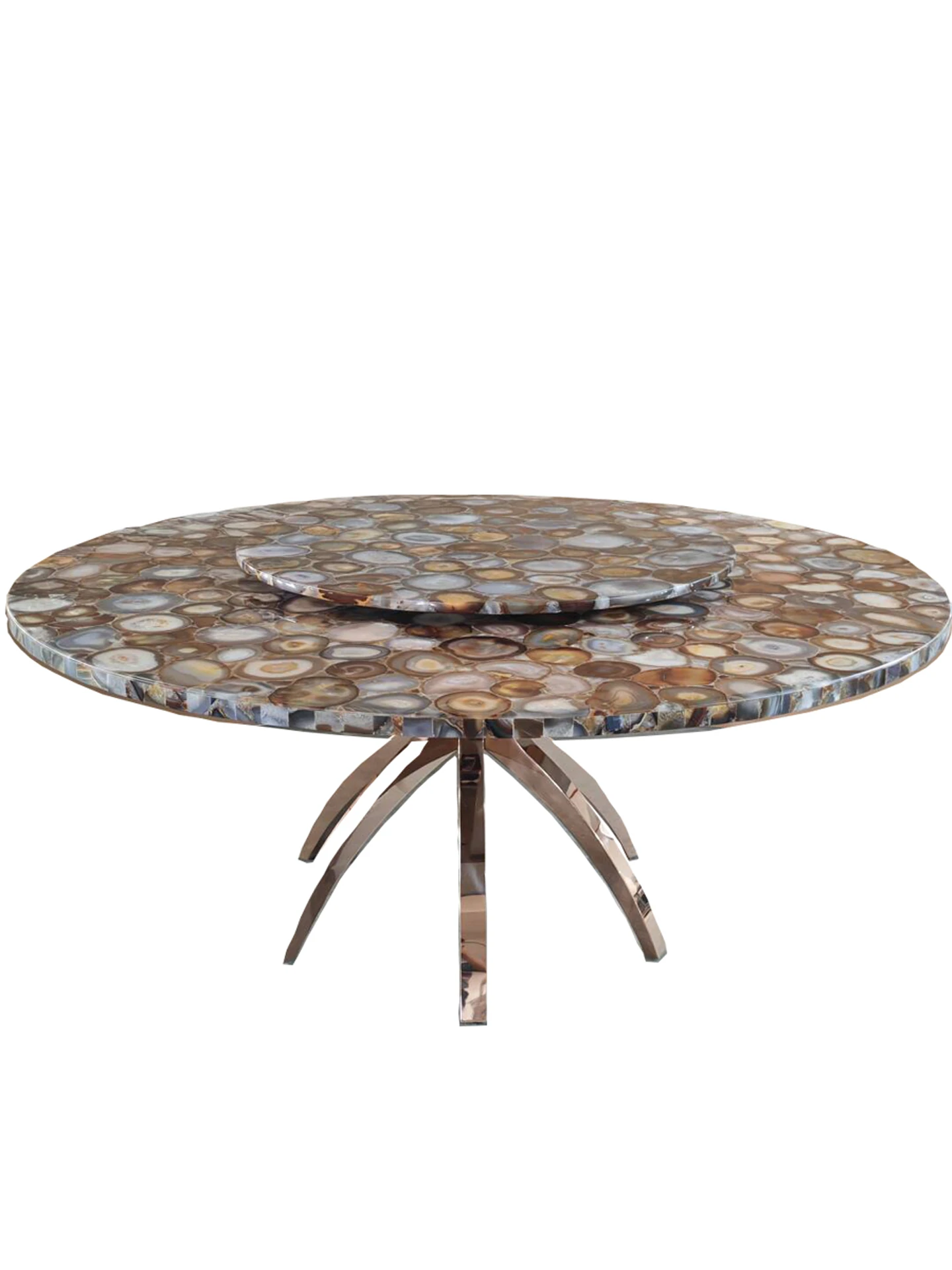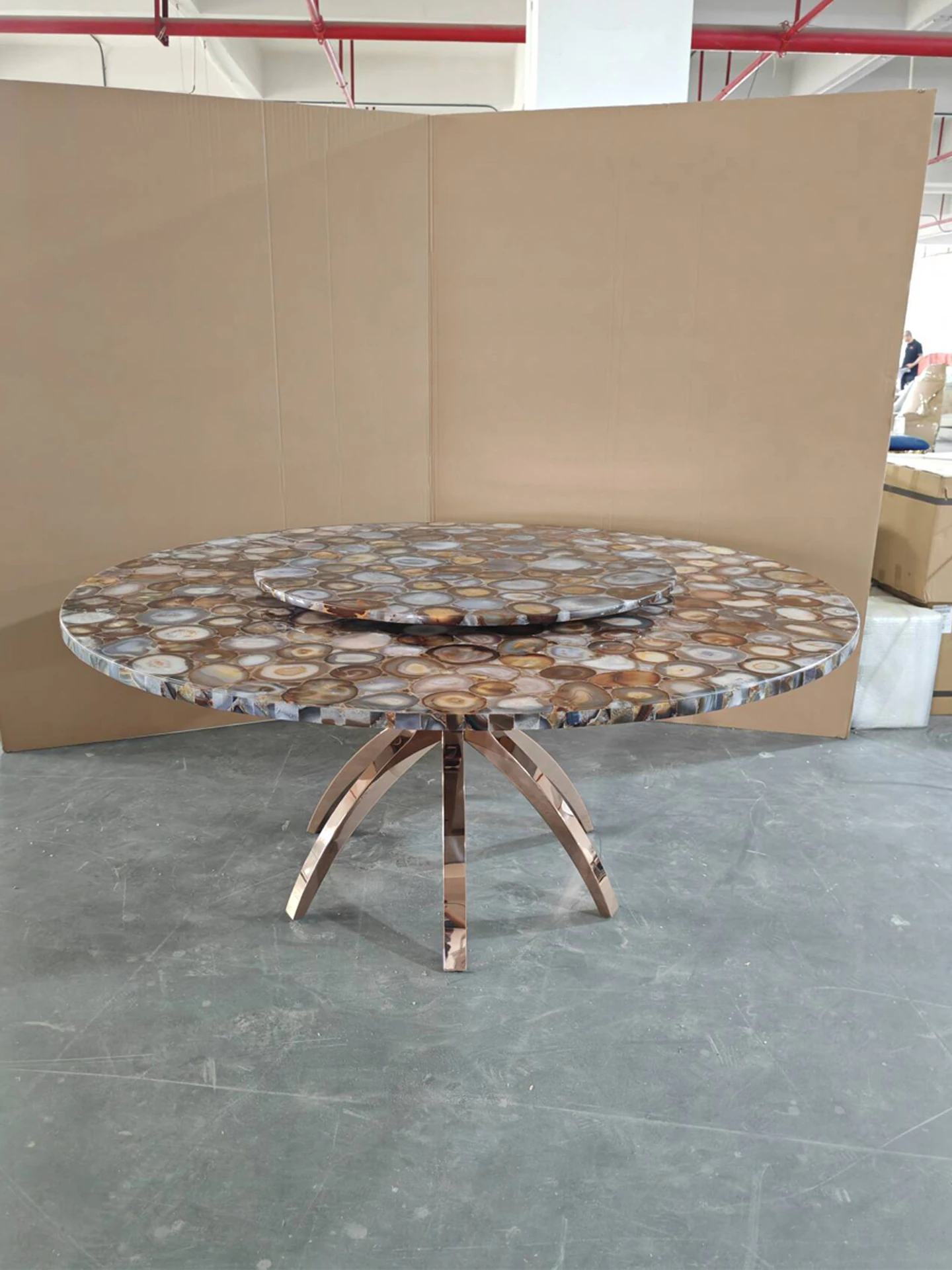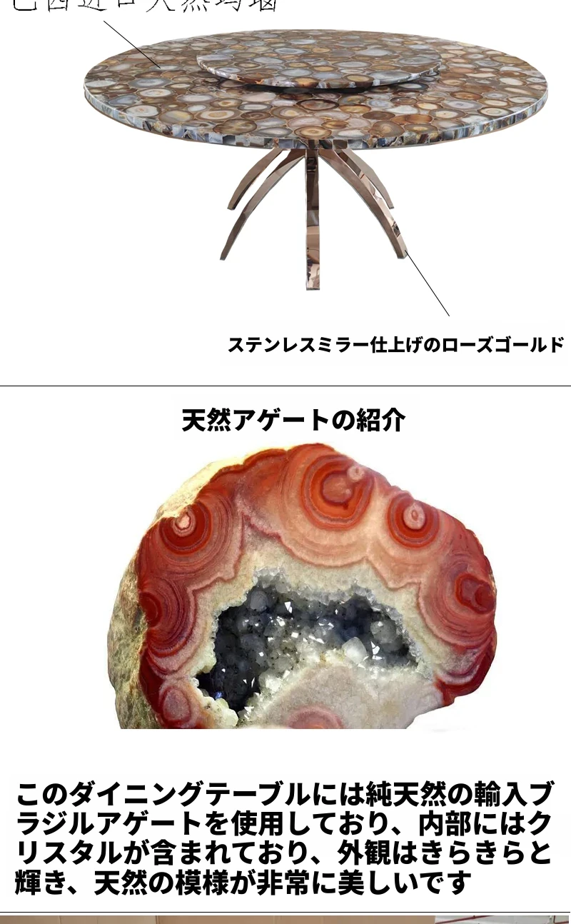 イタリアンラグジュアリー 天然アゲートダイニングテーブル ヴィラ向けの高級デザイン ステンレス製 家庭用 高級回転式ラウンドテーブル