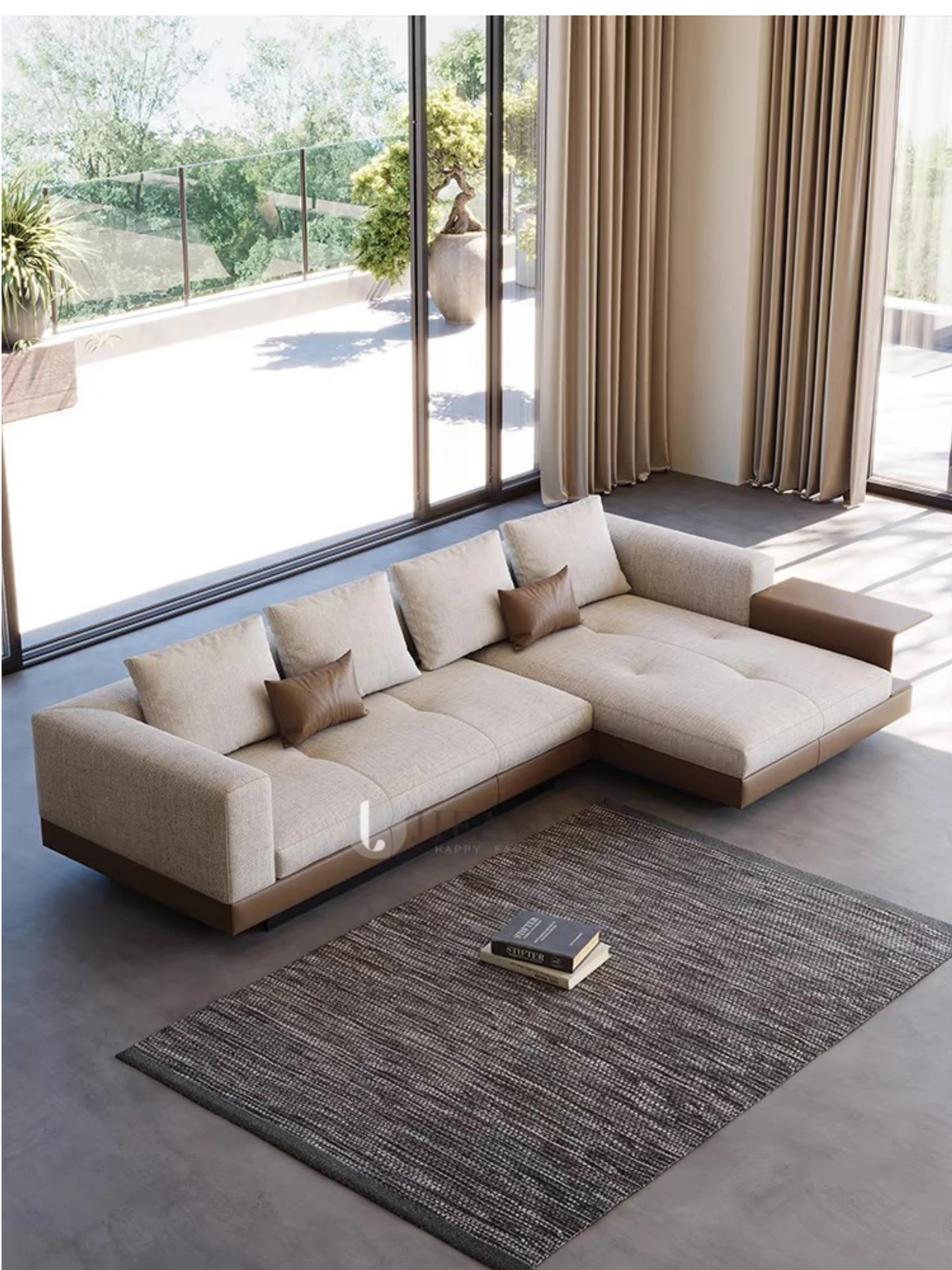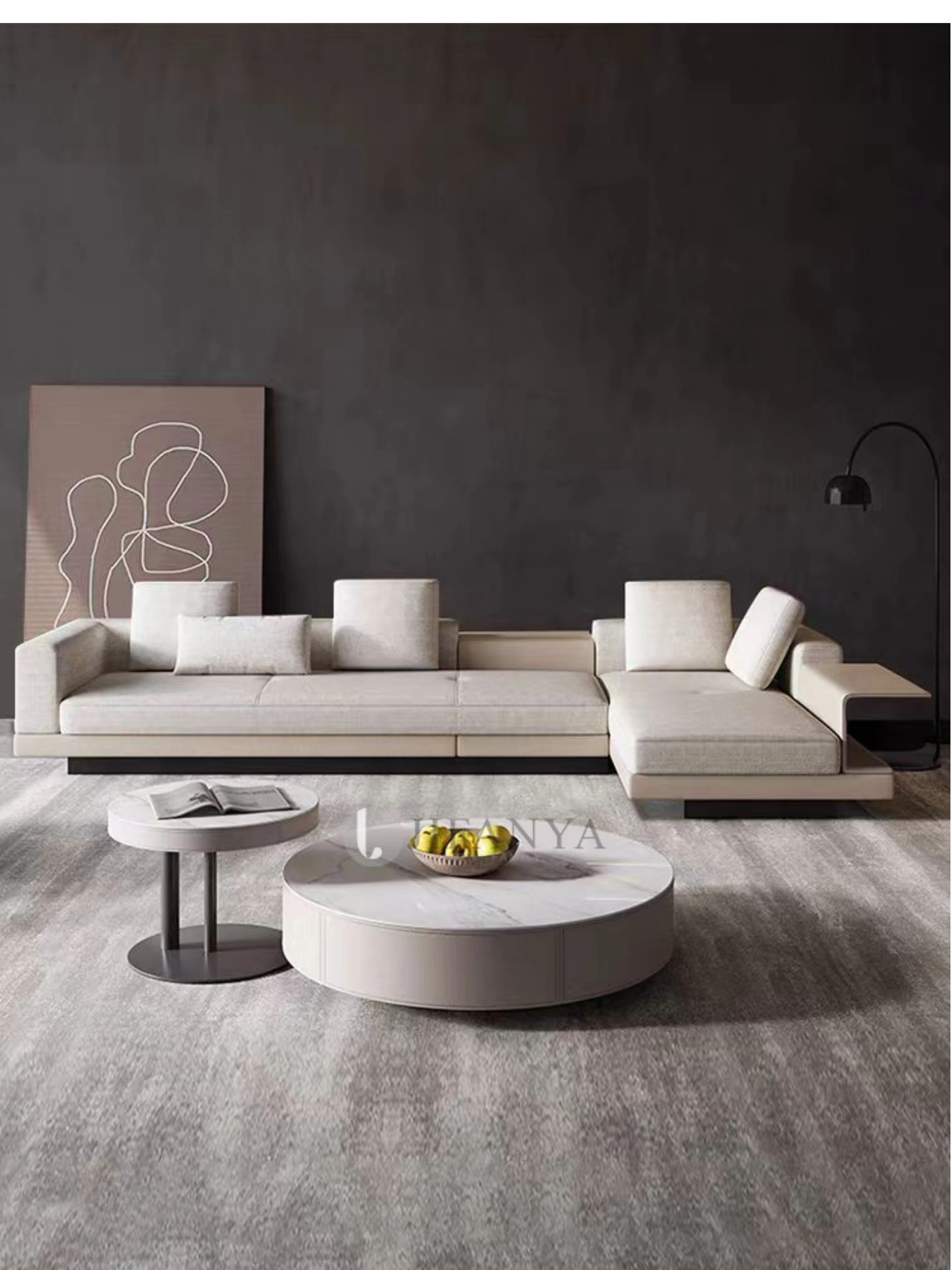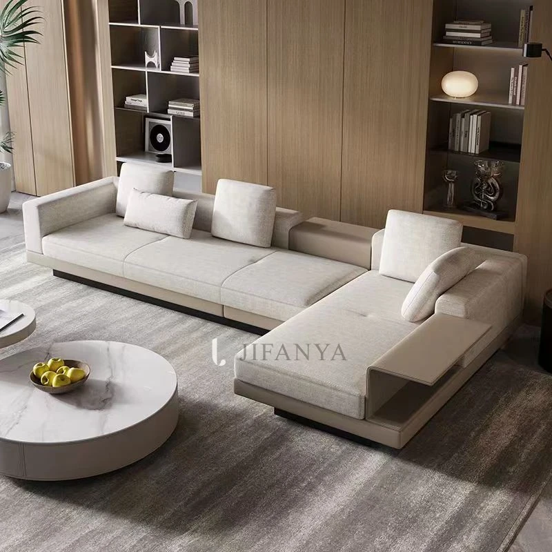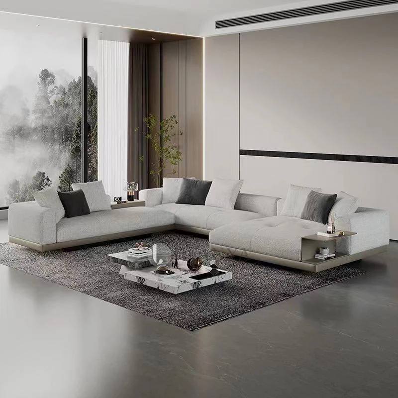 イタリアンミニマル コンナリ コットンリネンソファ - ラグジュアリーな高級別荘向け、広々としたリビングルームに最適なコーナーレザーソファ。心地よい素材で特別な空間を演出します。