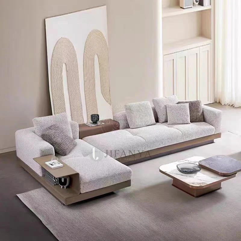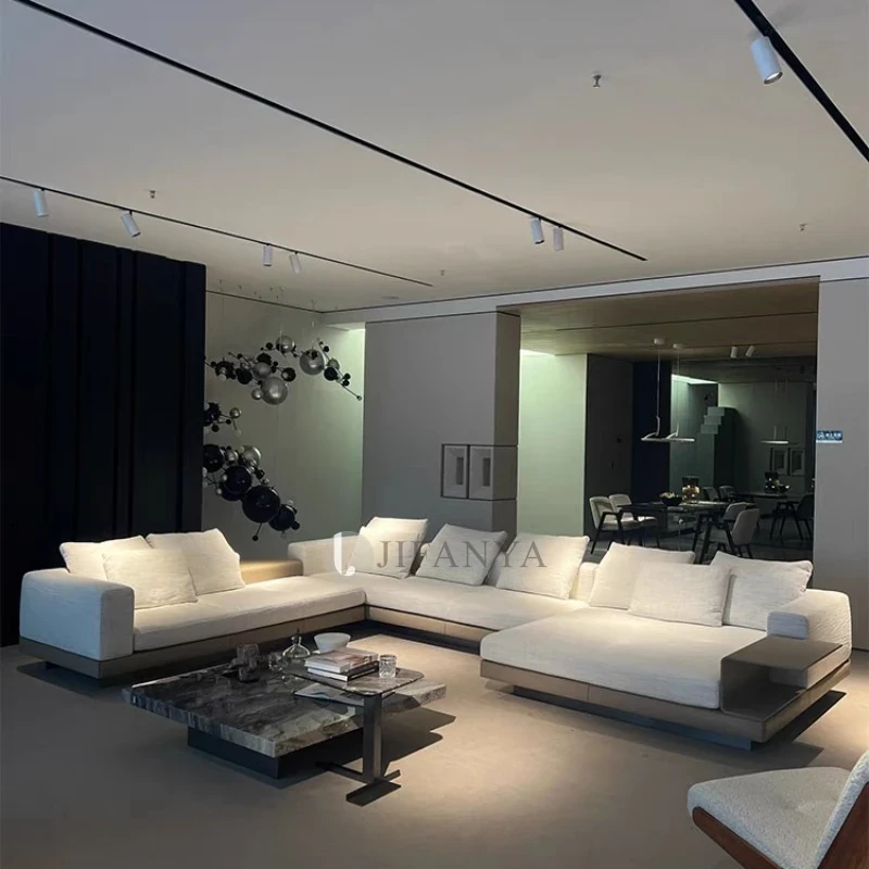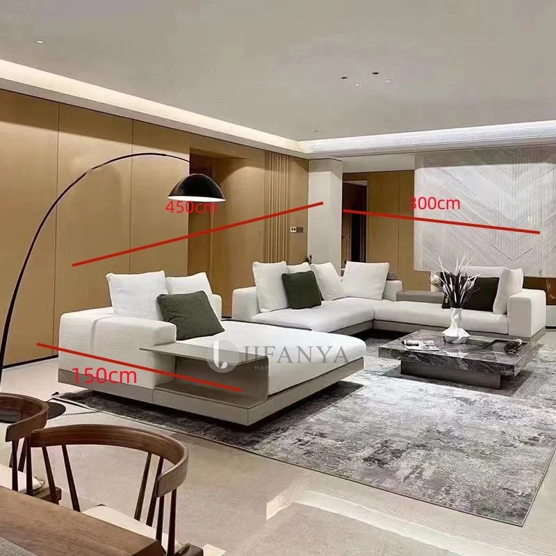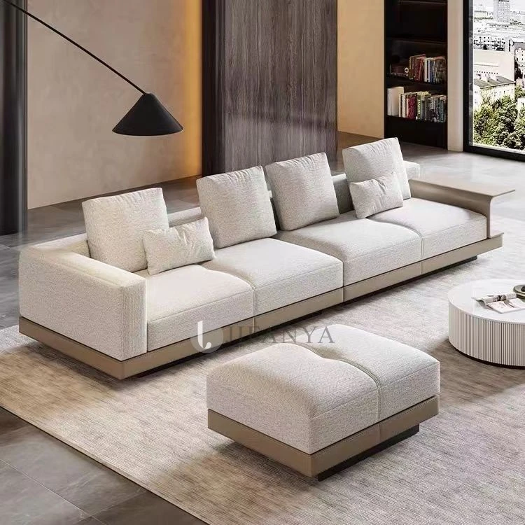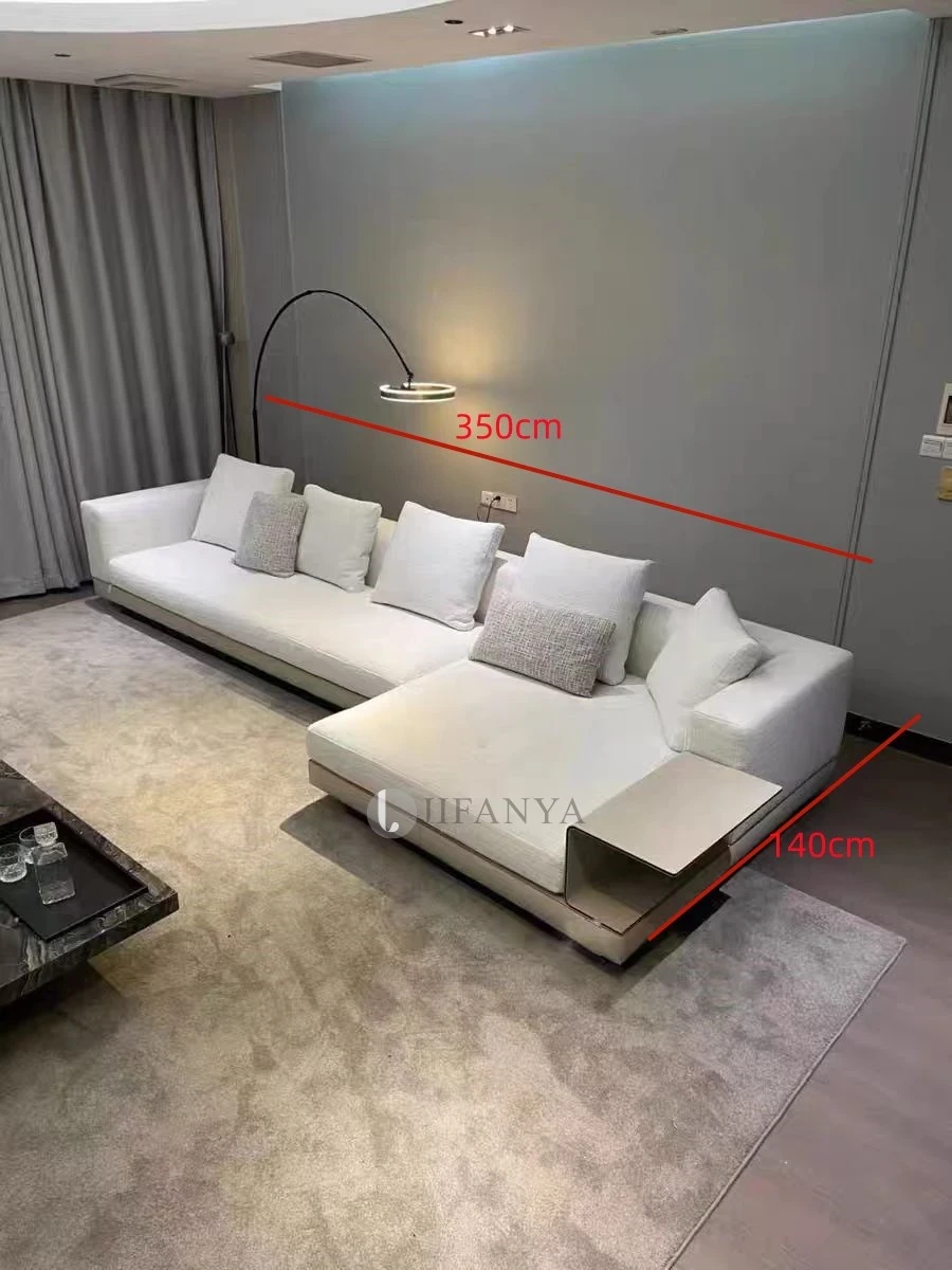 イタリアンミニマル コンナリ コットンリネンソファ - ラグジュアリーな高級別荘向け、広々としたリビングルームに最適なコーナーレザーソファ。心地よい素材で特別な空間を演出します。