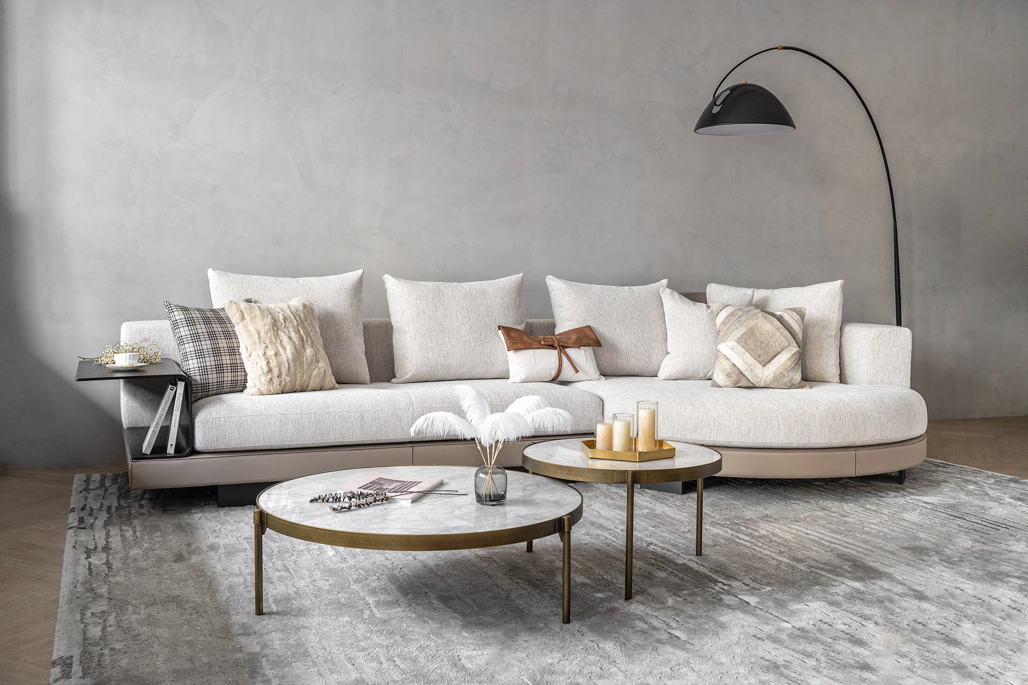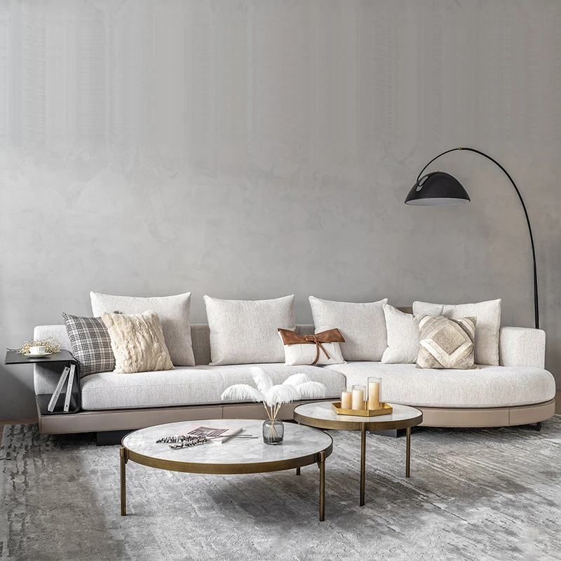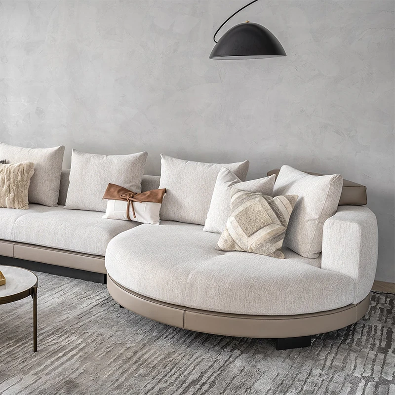 イタリアンミニマリスト・コナリ皮革ソファ|ラグジュアリーなリビングに最適!広々としたフラット・ヴィラデザインのアーチ型ユニークソファで、洗練された空間を演出。