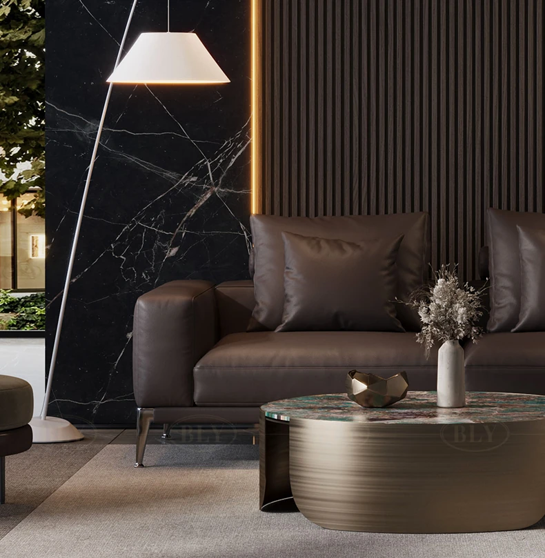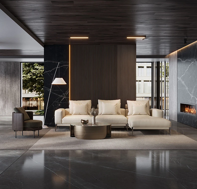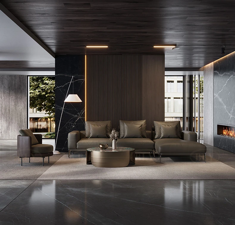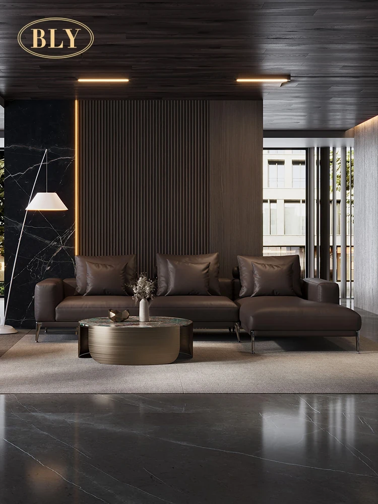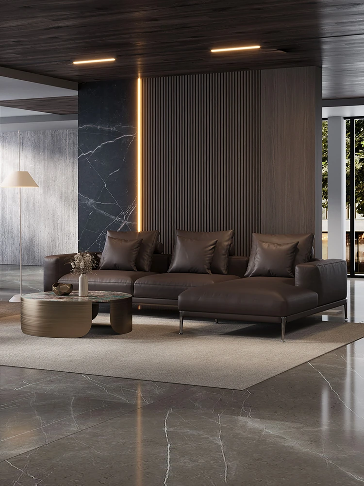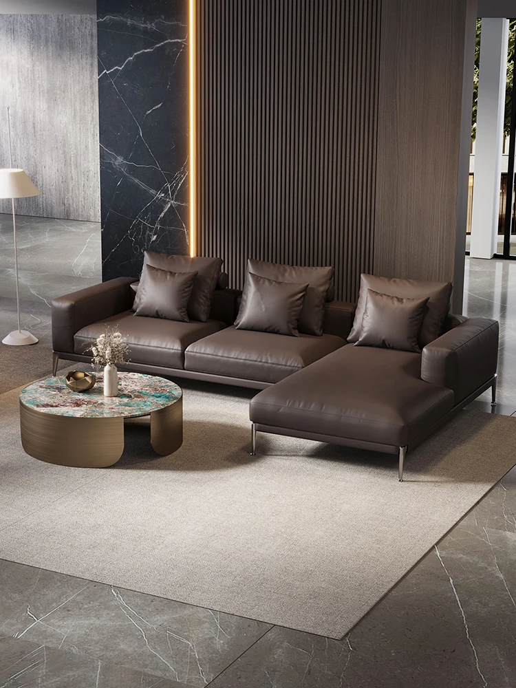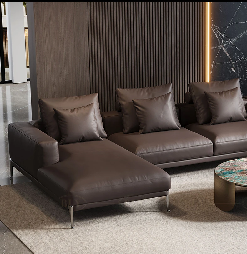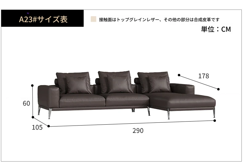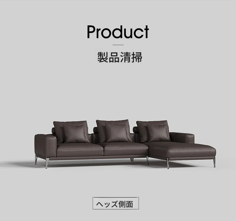 イタリアンミニマリズムの本革ソファ - 高級感溢れる一級牛革使用、モダンで洗練されたデザインのコーナーソファ。2025年新作、あなたのリビングに贅沢なひとときを。