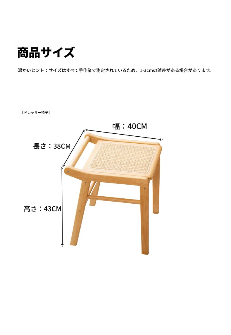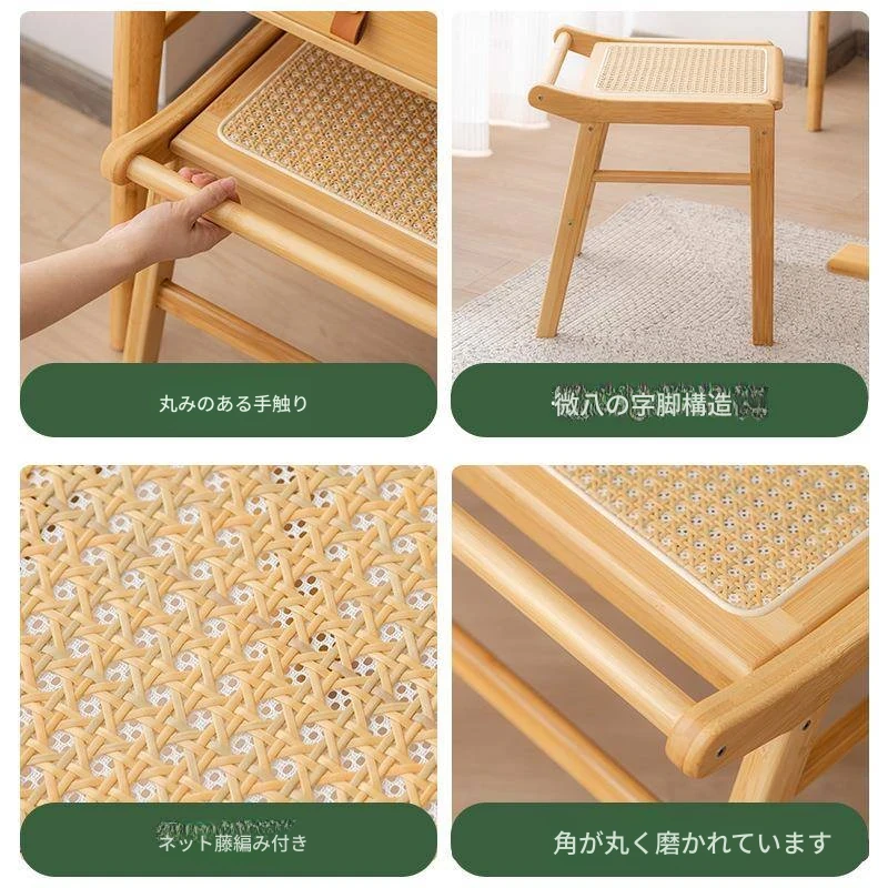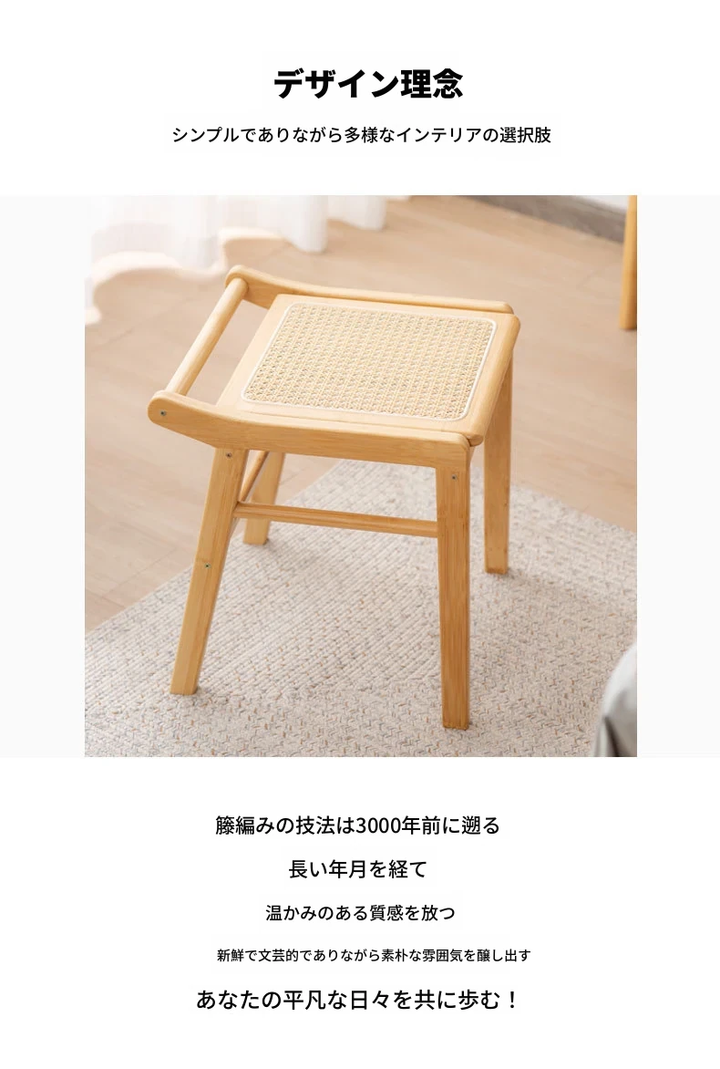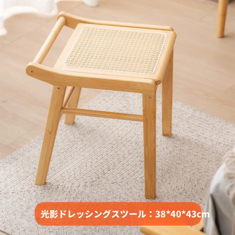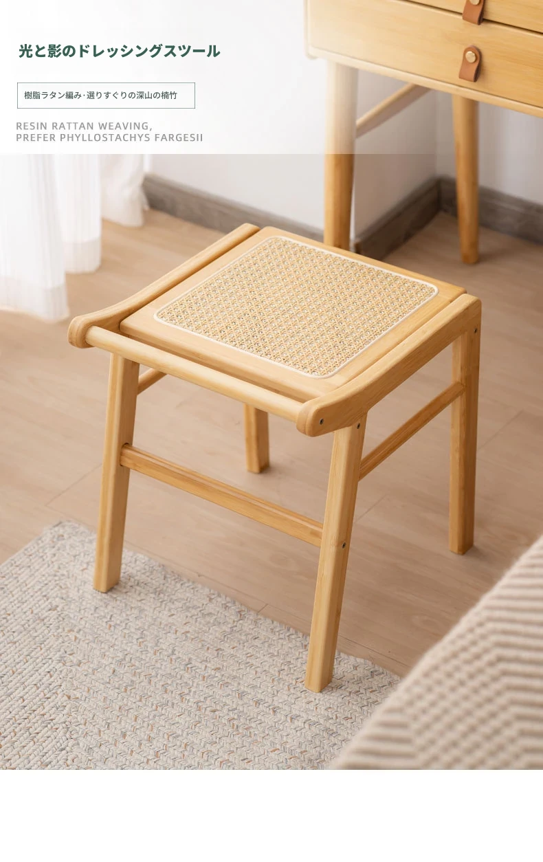 和風ラタンメイクスツール|おしゃれな寝室用ドレッシングスツール|人気の無垢材デザイン|ネイルサロンにも最適なシンプルな小型スツール|新作登場!