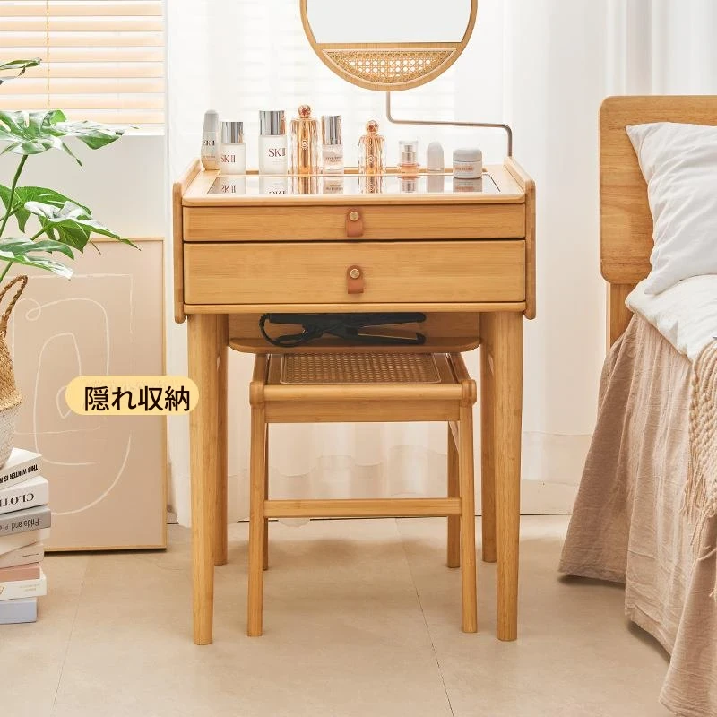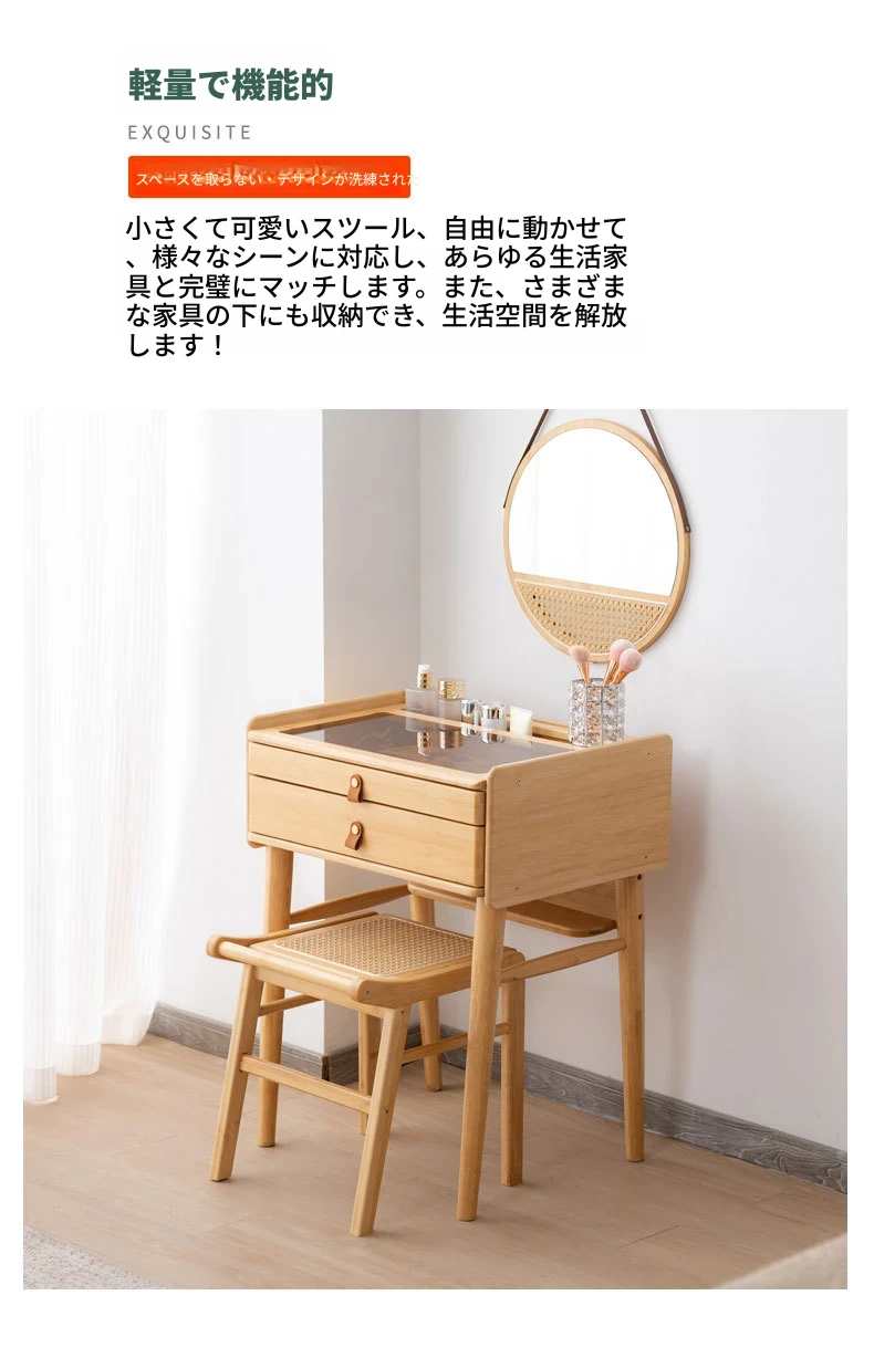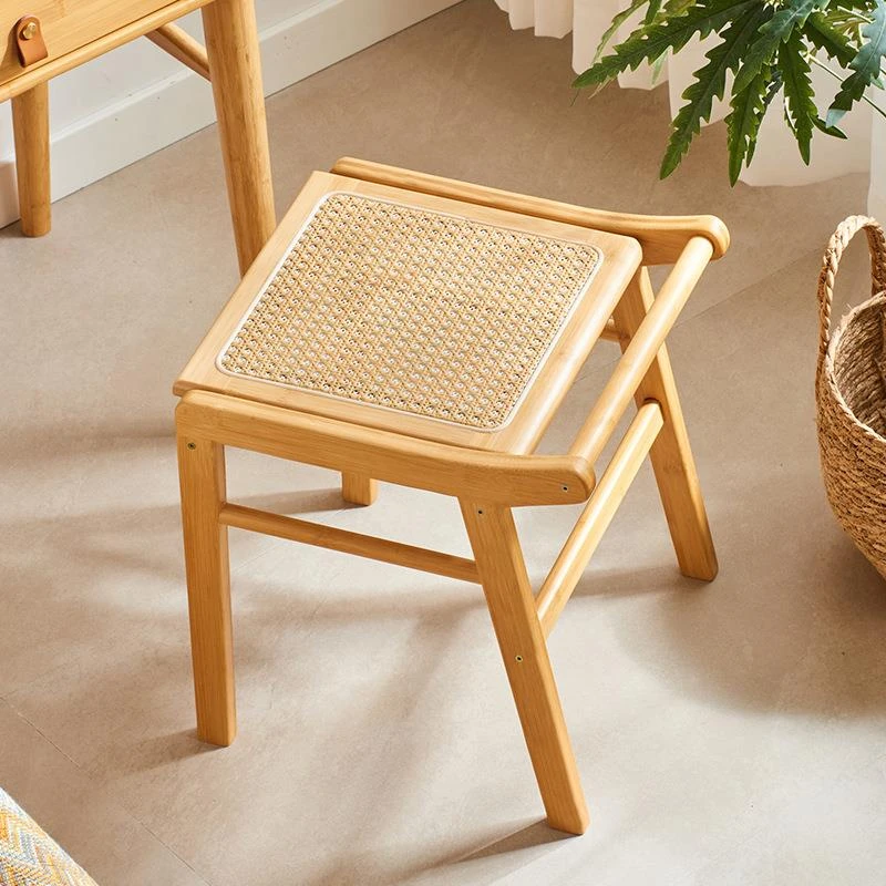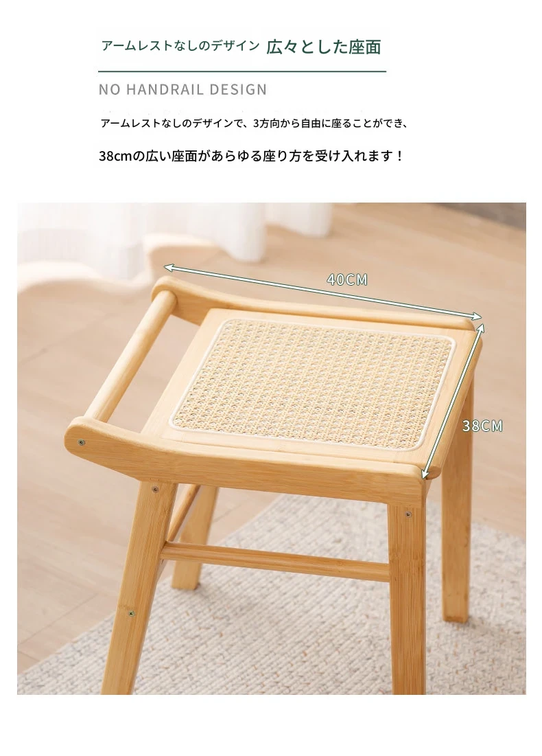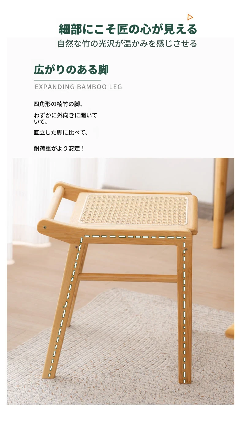 和風ラタンメイクスツール|おしゃれな寝室用ドレッシングスツール|人気の無垢材デザイン|ネイルサロンにも最適なシンプルな小型スツール|新作登場!