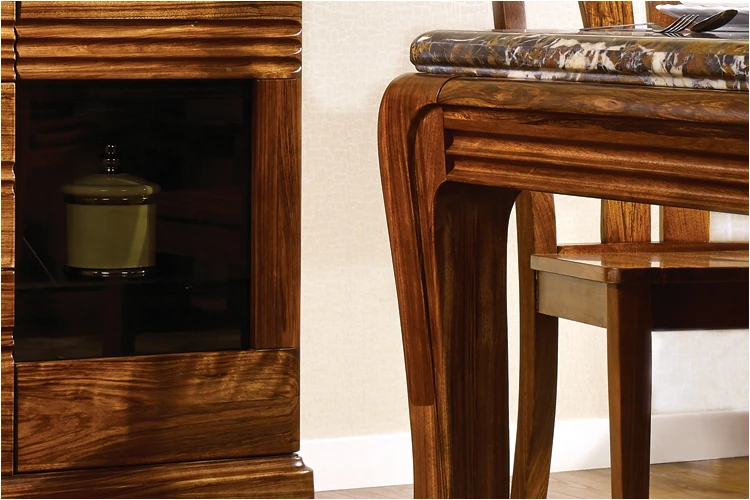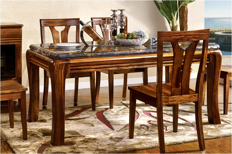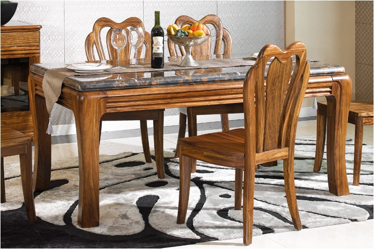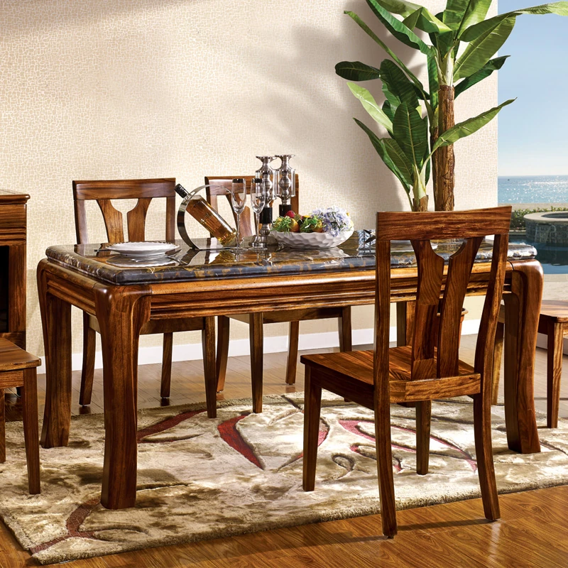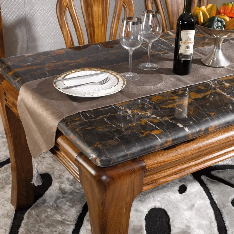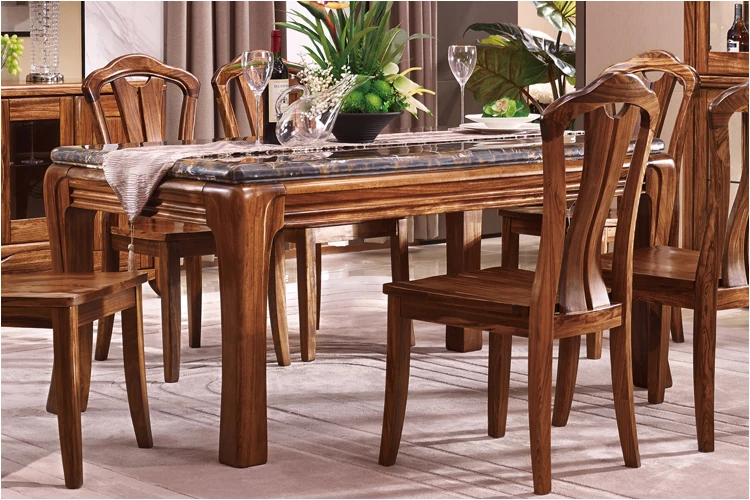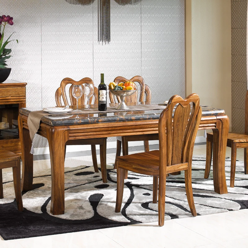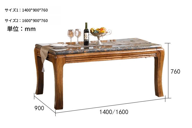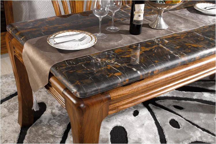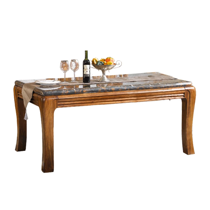 ウッディな魅力満載!新中式全実木ロングダイニングテーブル - 天然大理石使用の家庭用食卓。高級感溢れるウッ金木の美しさをお楽しみください。