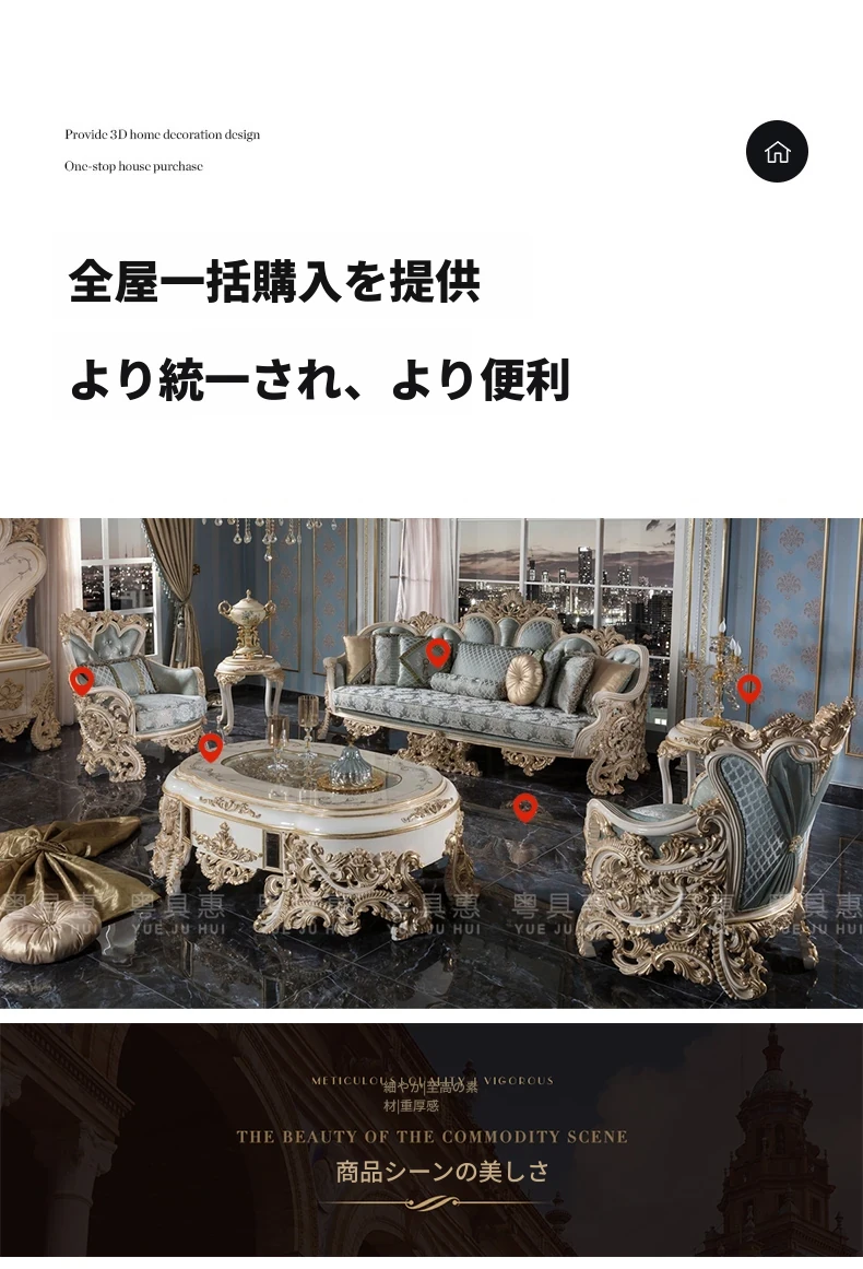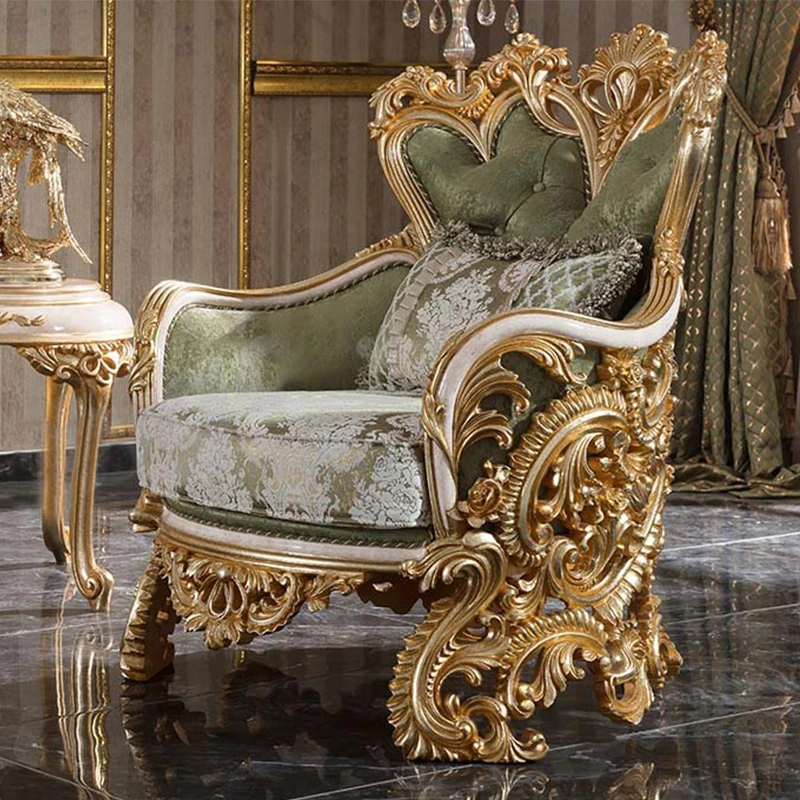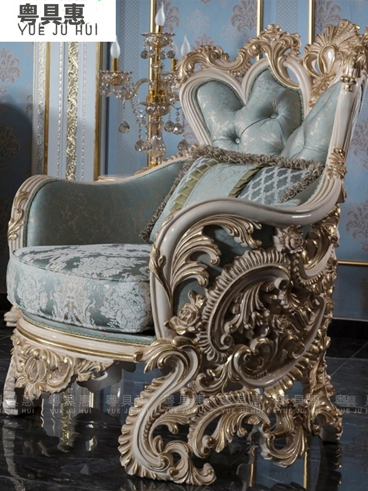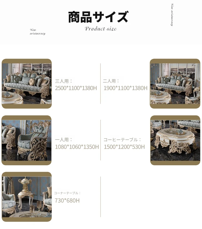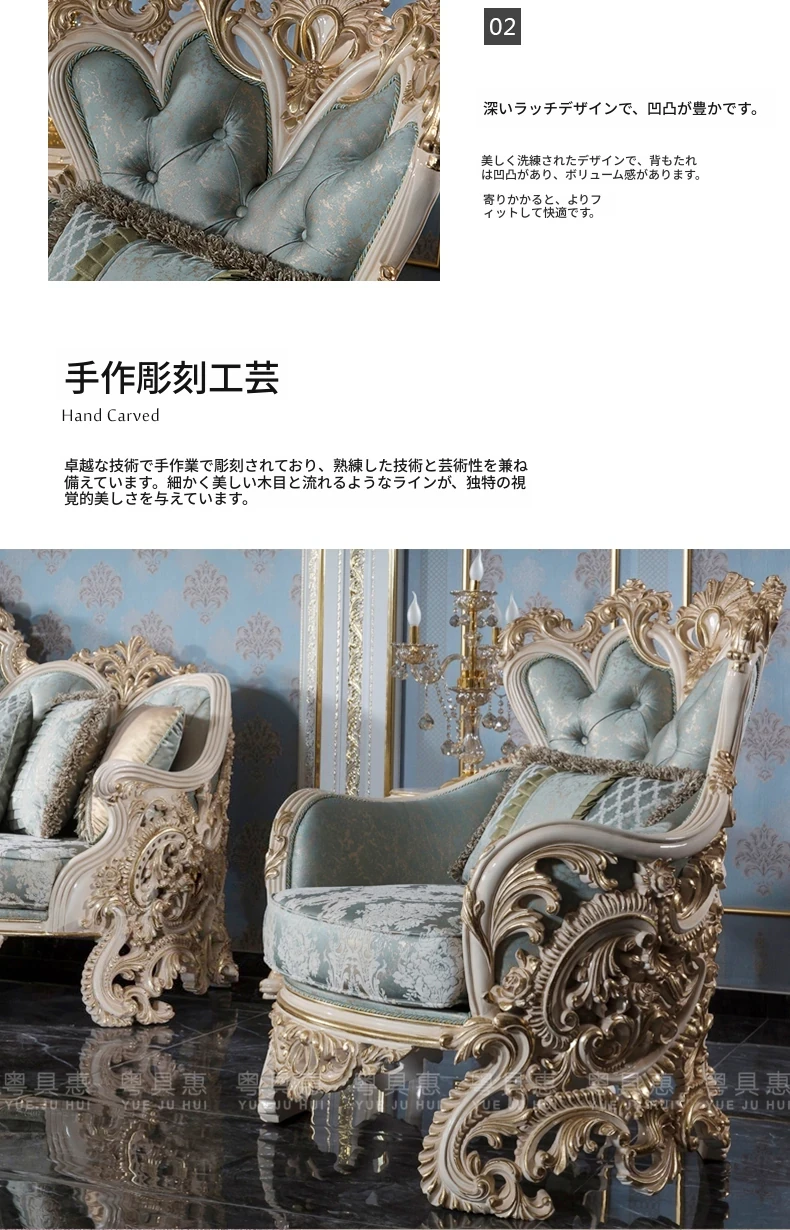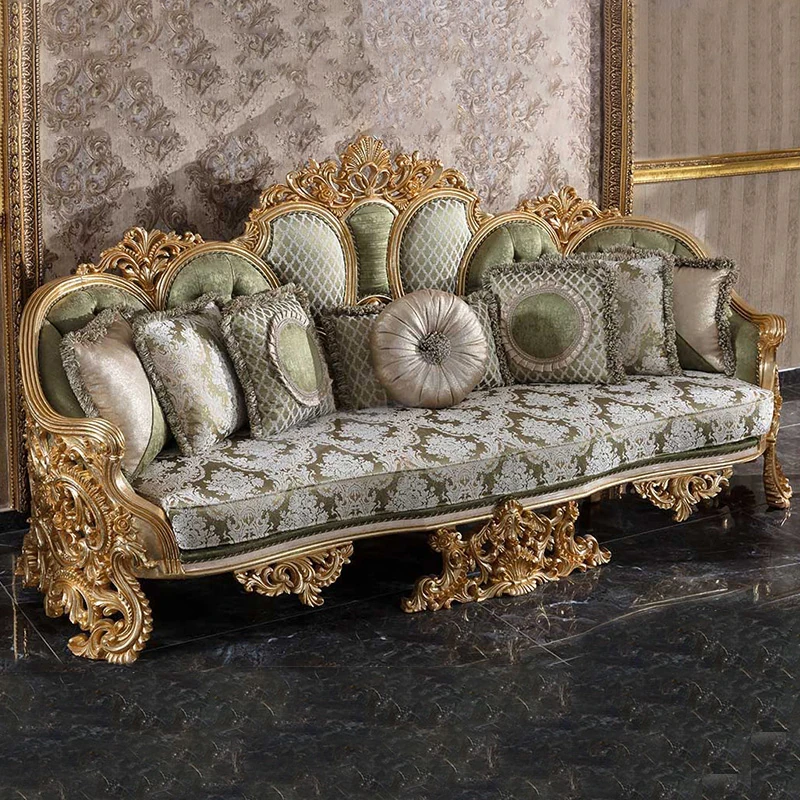豪華なフレンチスタイルの布製ソファー|エレガントな宮廷デザイン|広々とした大邸宅に最適な実木彫刻の123コンビネーションソファ|最高の快適さとスタイルをあなたのリビングに!