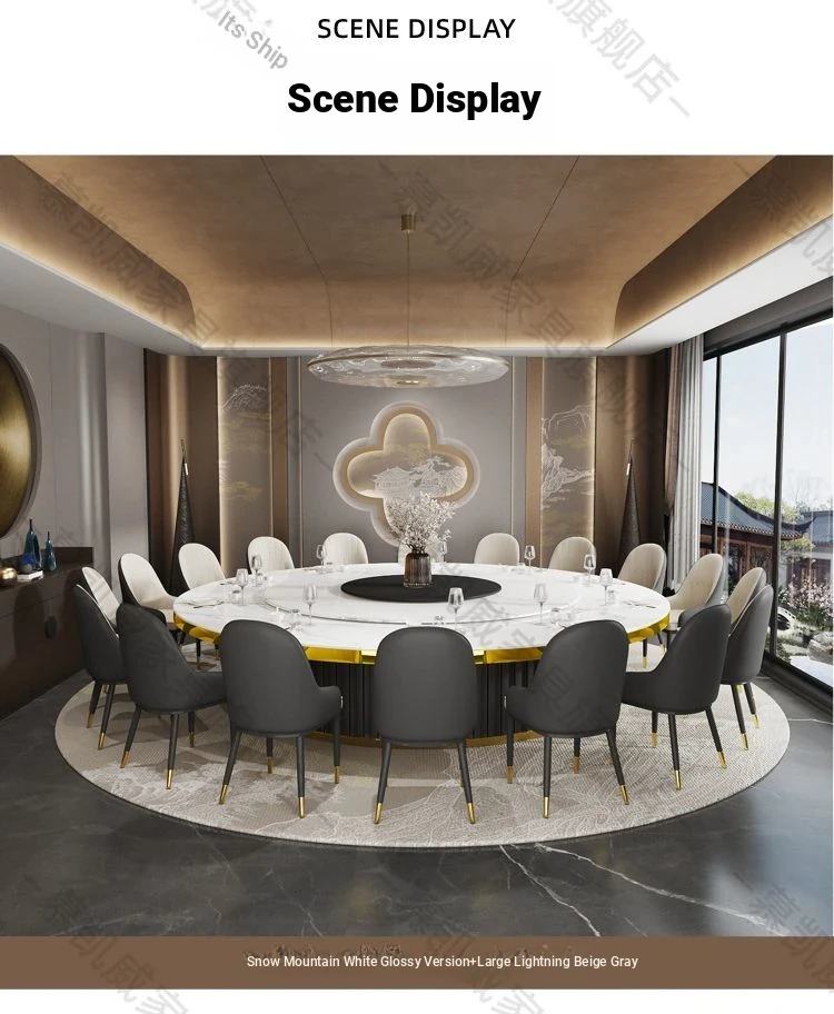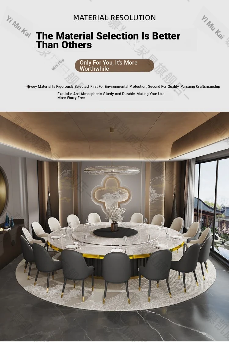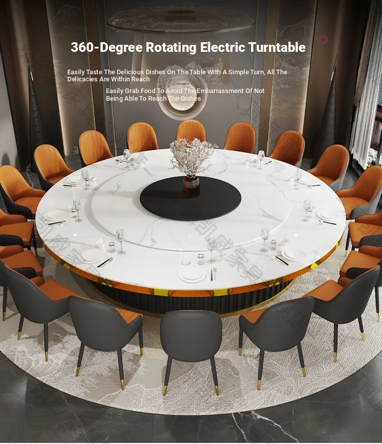 Luxury Electric Rock Plate Dining Table with Induction Cooktop - Elegant Marble Round Table for Hotels and Business Restaurants