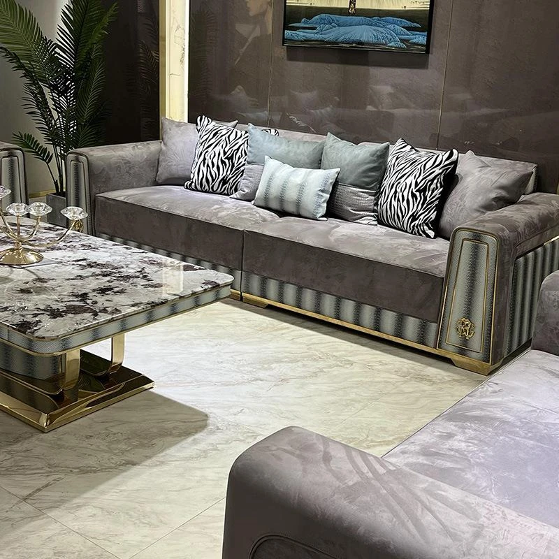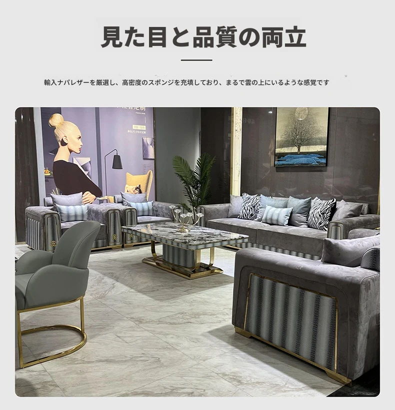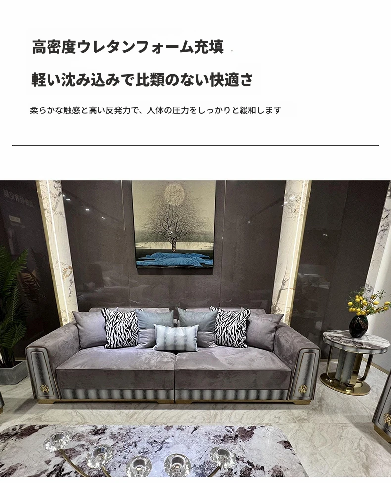 ラグジュアリーなモダンデザインの高級スエードソファ - シンプルな別荘リビングにぴったり!大サイズのバシャ3代ソファで、贅沢な空間を演出します。