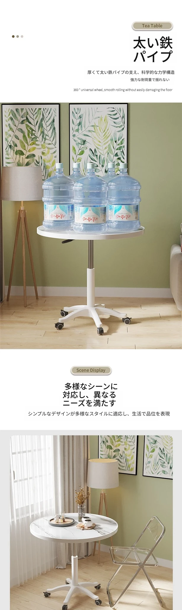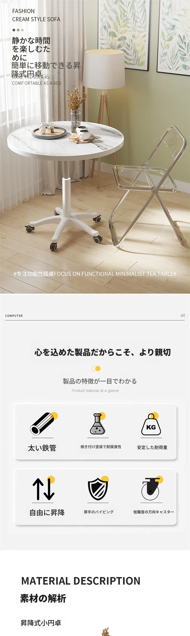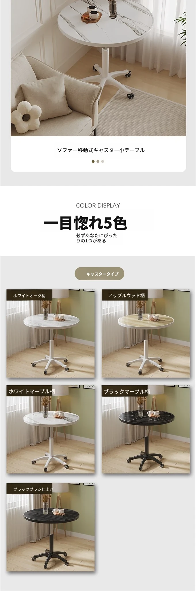 シンプルで便利なキャスター付き円形テーブル | 昇降機能付き | 家庭用バルコニーに最適 | リラックスや商談にぴったり | ソファサイドやベッドサイドの小型テーブルとしても活躍!