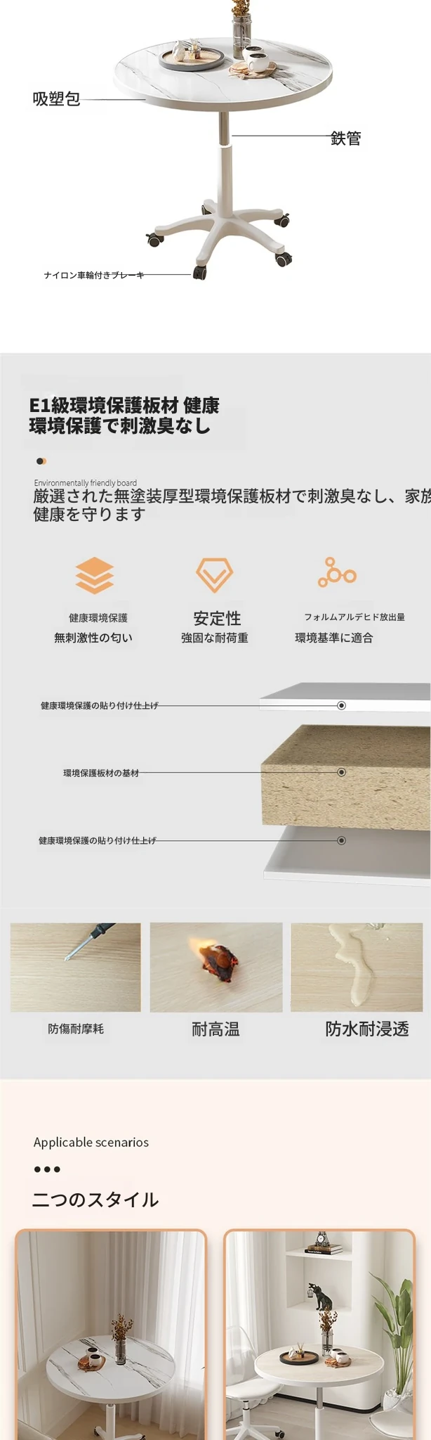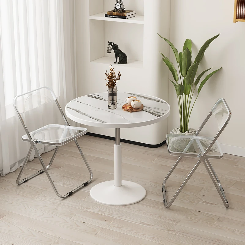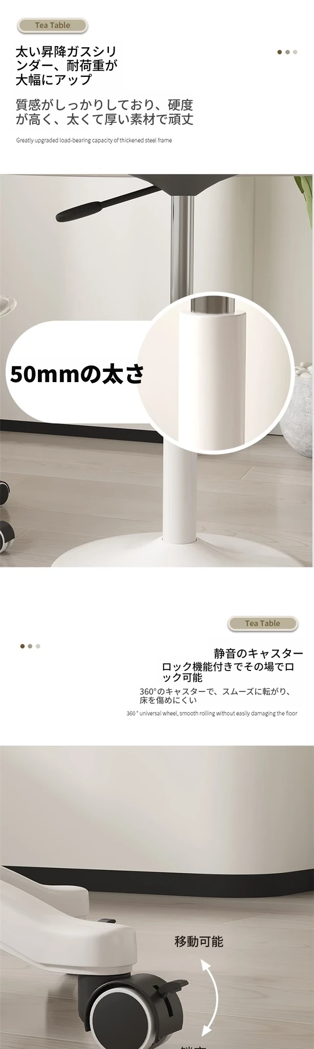シンプルで便利なキャスター付き円形テーブル | 昇降機能付き | 家庭用バルコニーに最適 | リラックスや商談にぴったり | ソファサイドやベッドサイドの小型テーブルとしても活躍!
