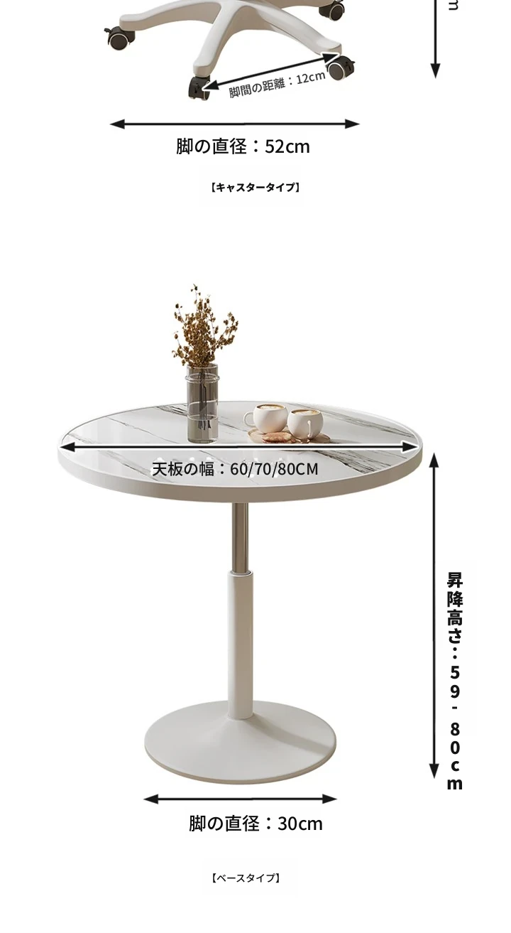 【キャスタータイプ】白大理石-80円-昇降範囲59-80cm