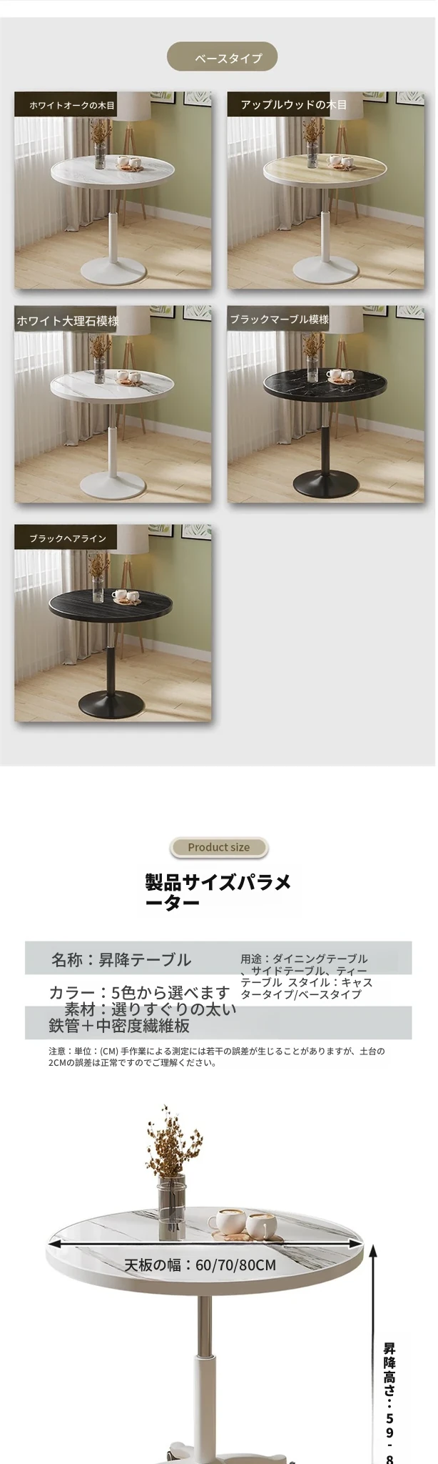 【ベースモデル】白オーク-60円-昇降範囲59-80cm