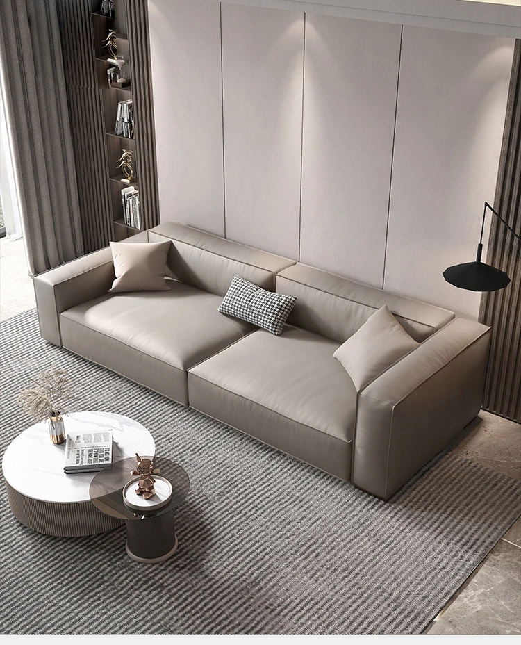 豆腐ブロック本革ソファ|シンプルで洗練されたイタリアンスタイルのリビング用コンボ|小さな部屋にもぴったりな直線的デザインのトレンディな正方形ソファ