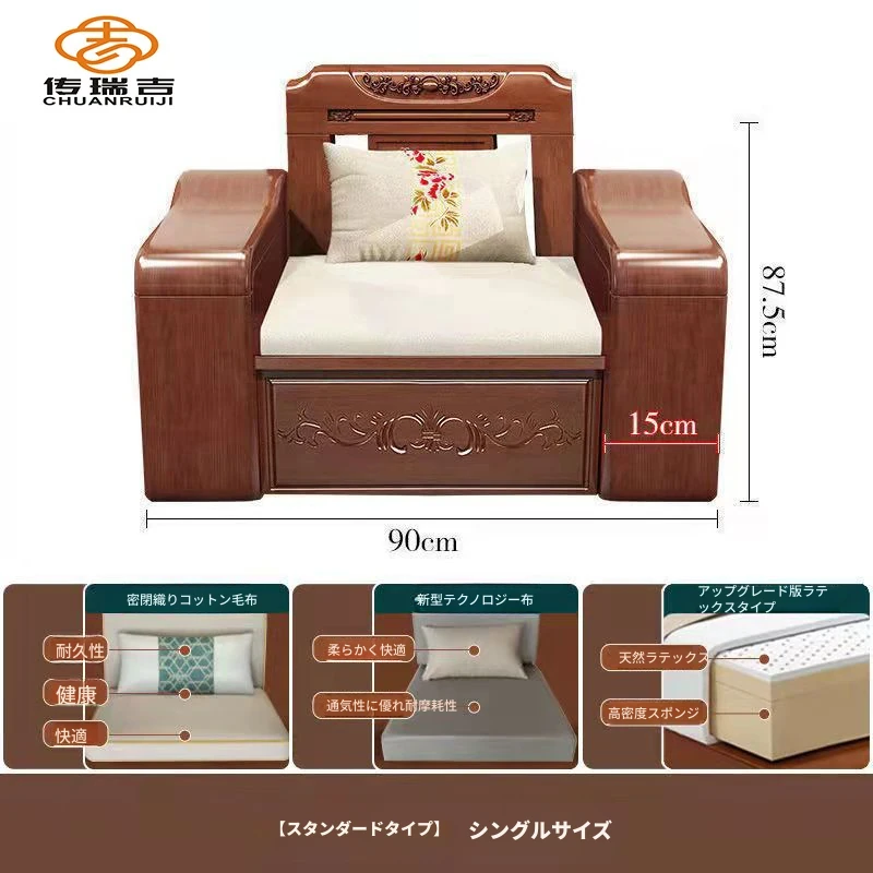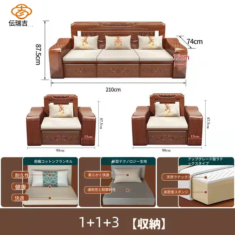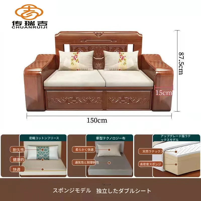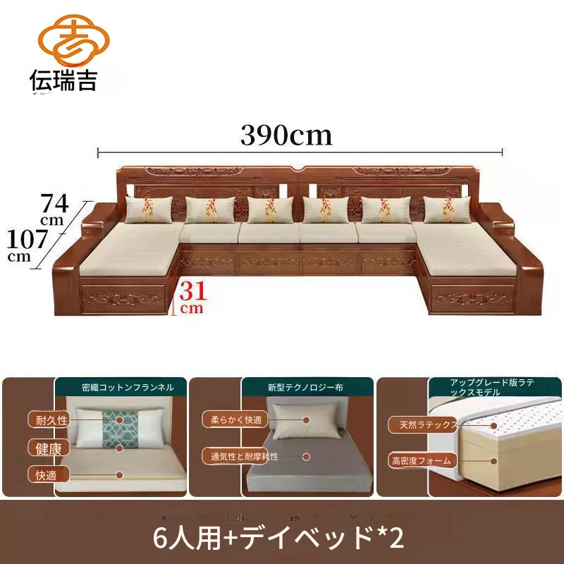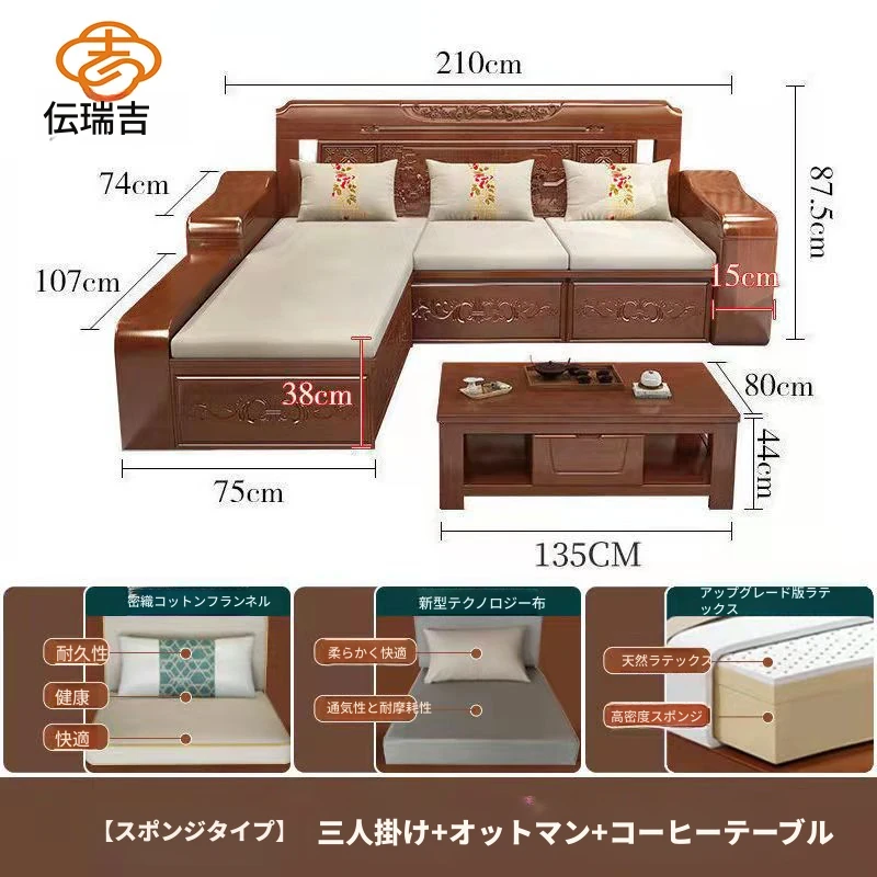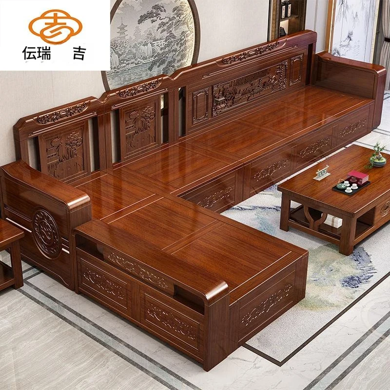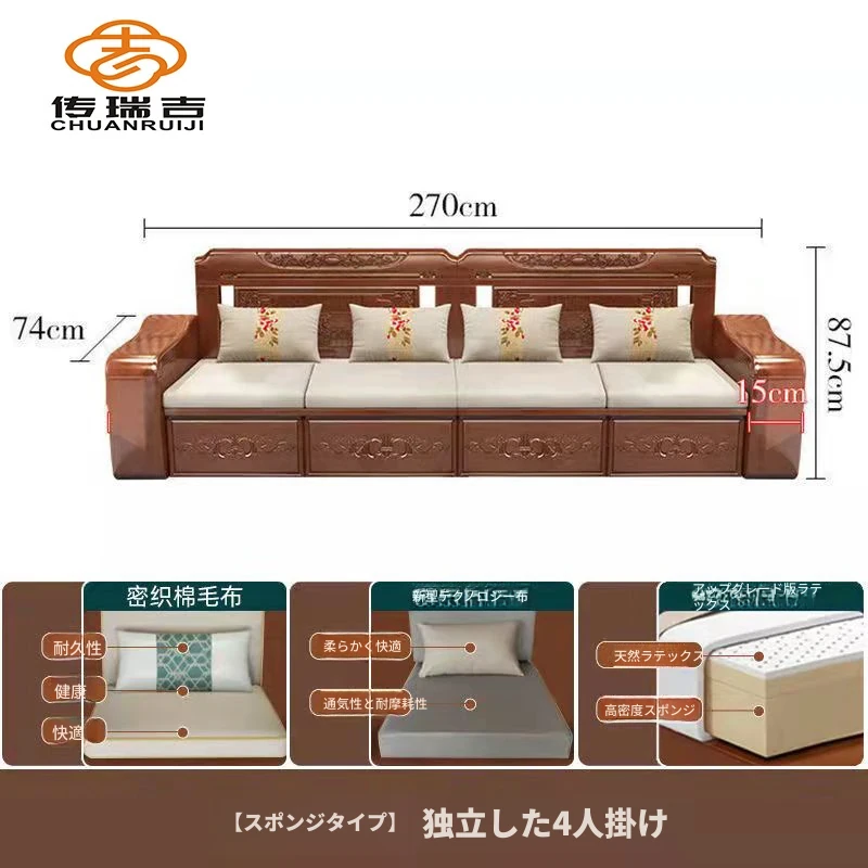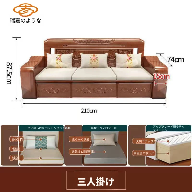 中華風オールウッドソファセット - シンプルで現代的なデザイン、冬夏両用。広々とした別荘や大邸宅に最適な貴妃スタイル、収納力抜群の高箱付き!