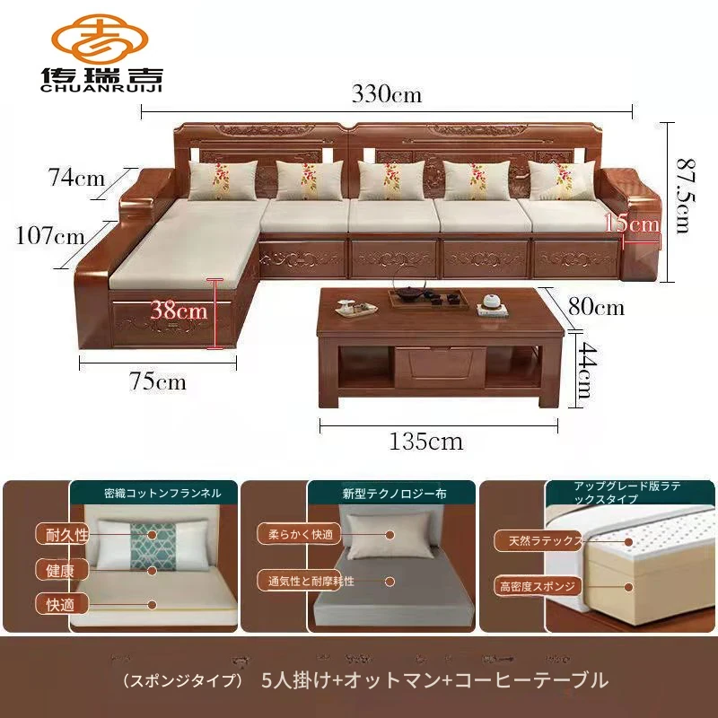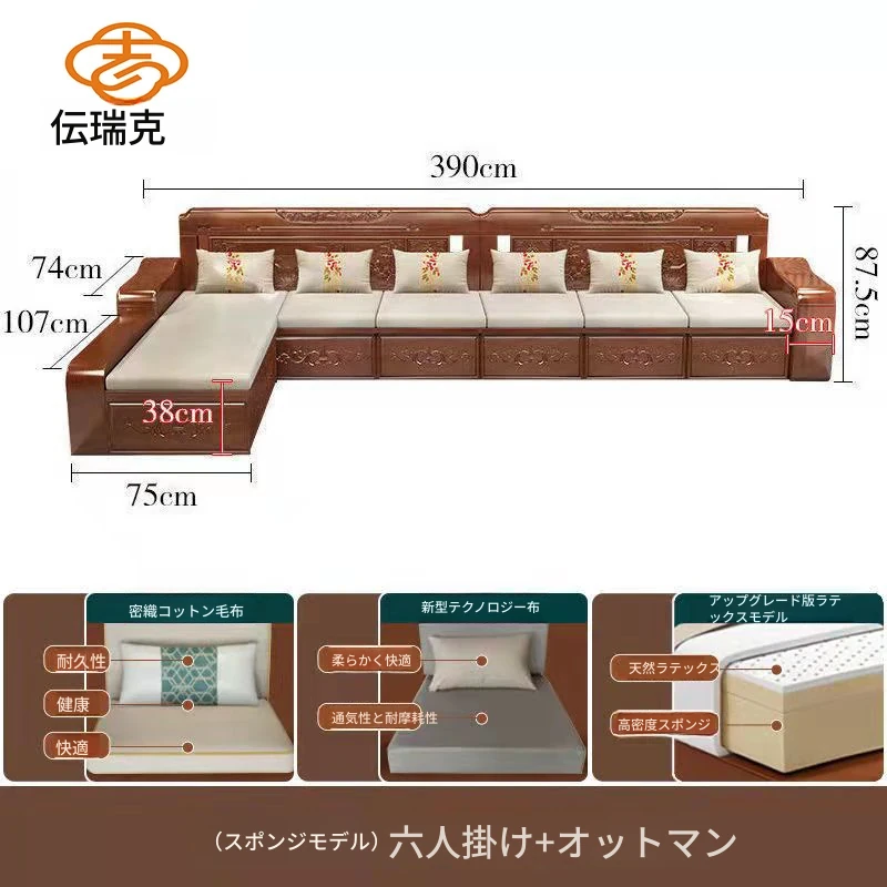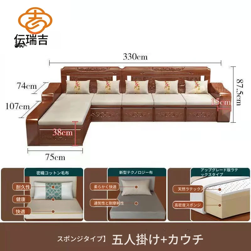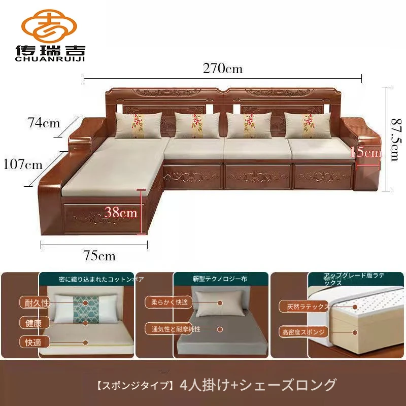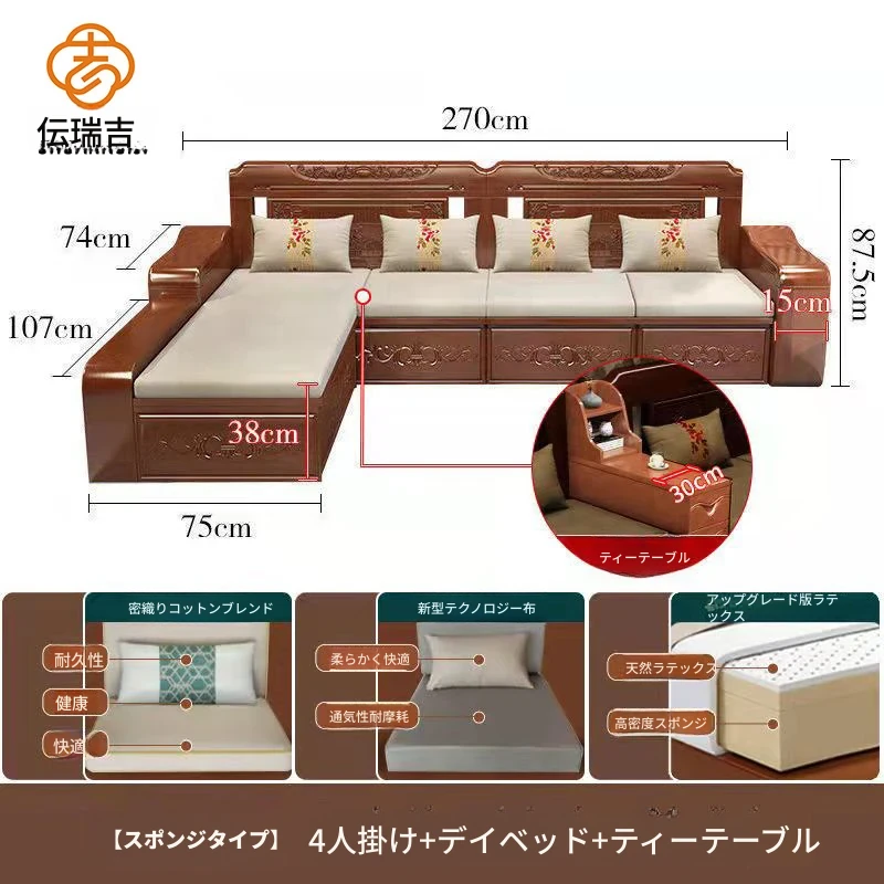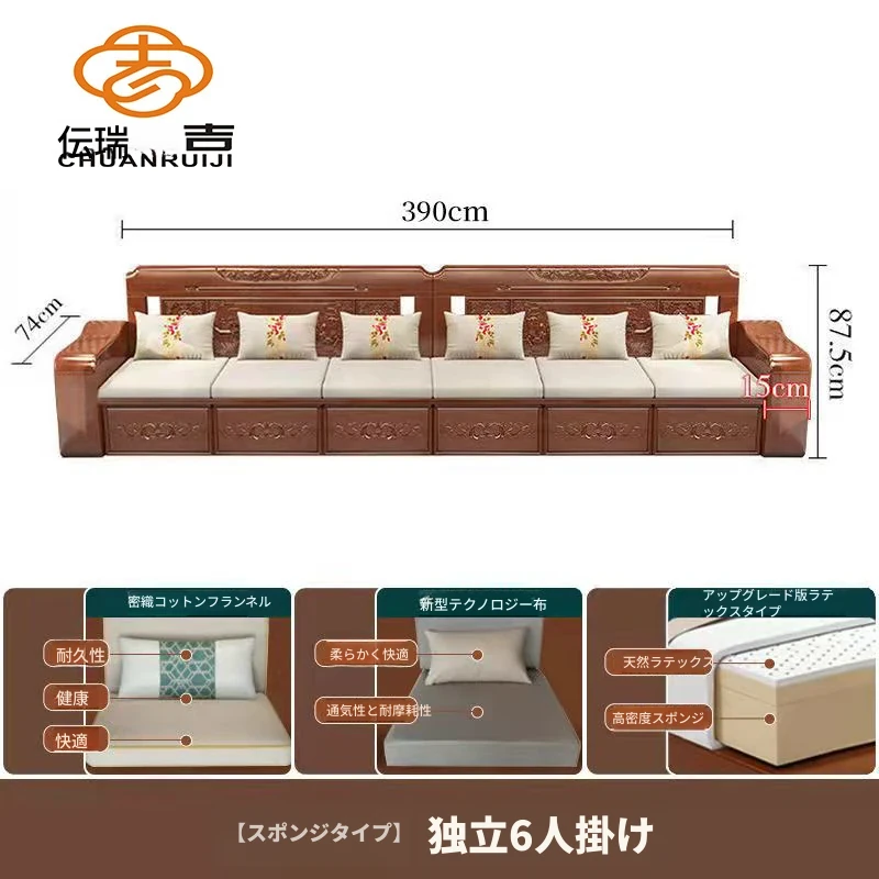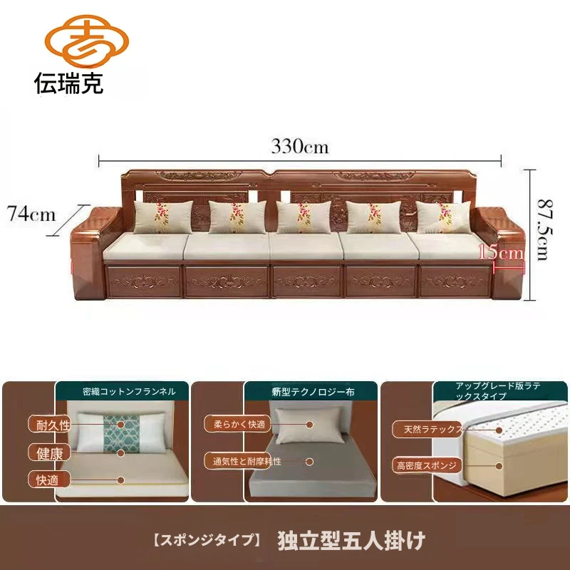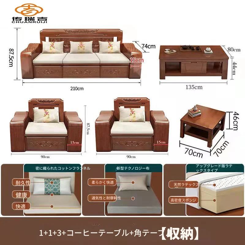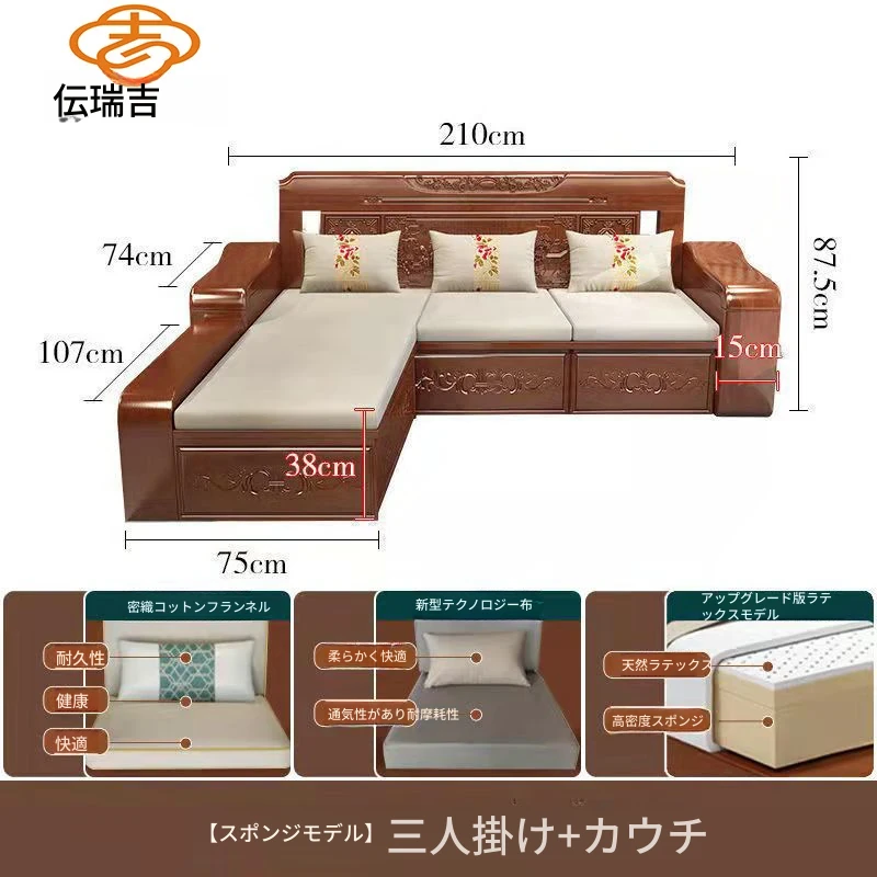 中華風オールウッドソファセット - シンプルで現代的なデザイン、冬夏両用。広々とした別荘や大邸宅に最適な貴妃スタイル、収納力抜群の高箱付き!
