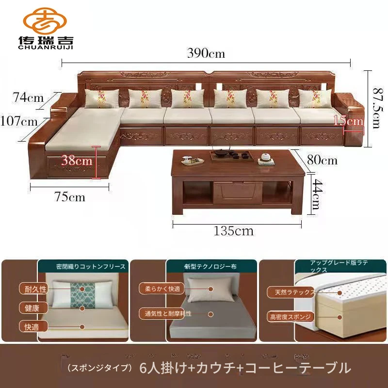 六人掛けソファ+ダブル貴妃ソファ+茶卓