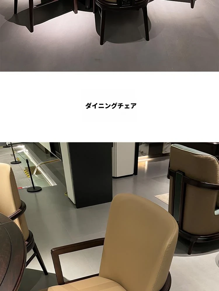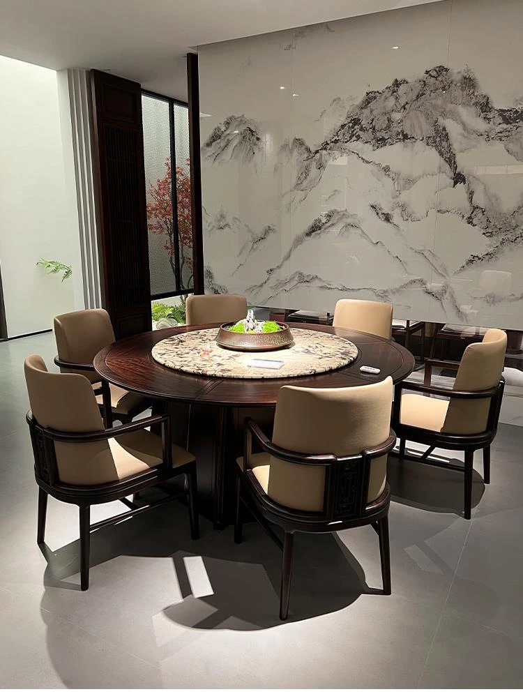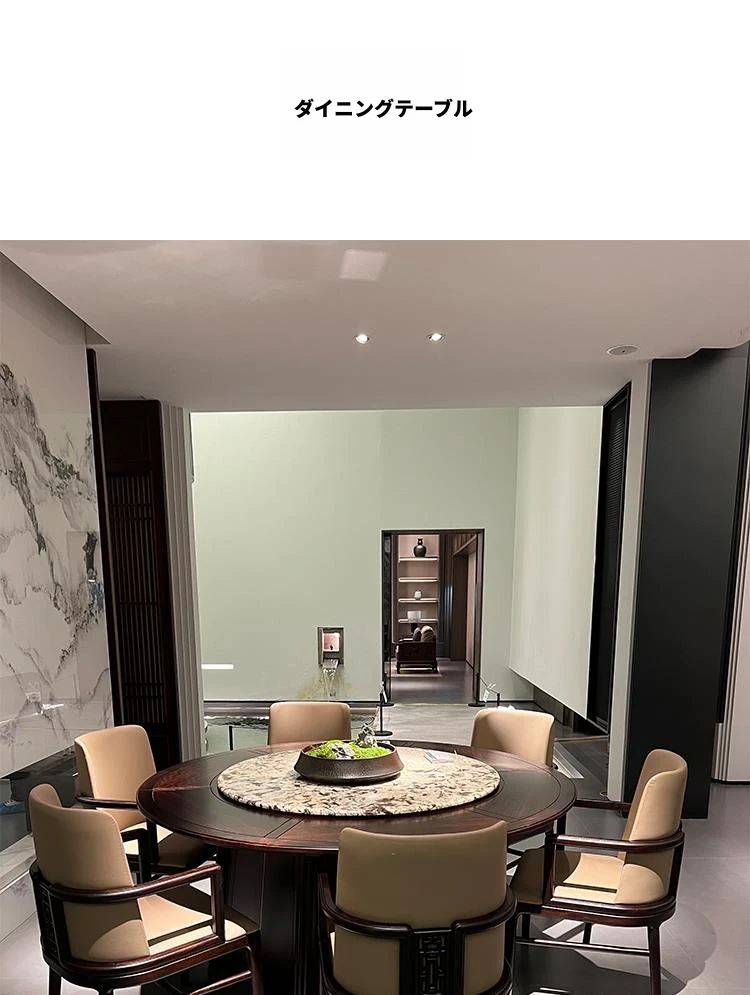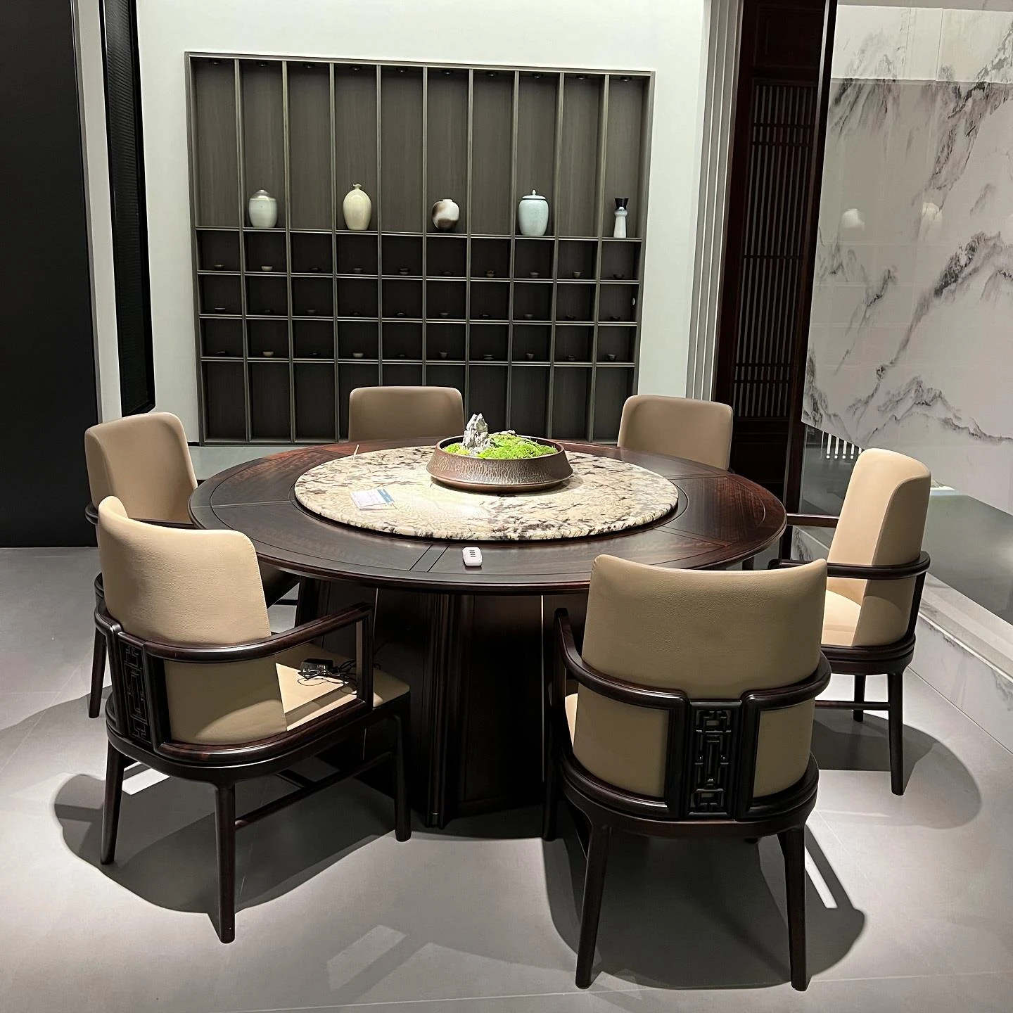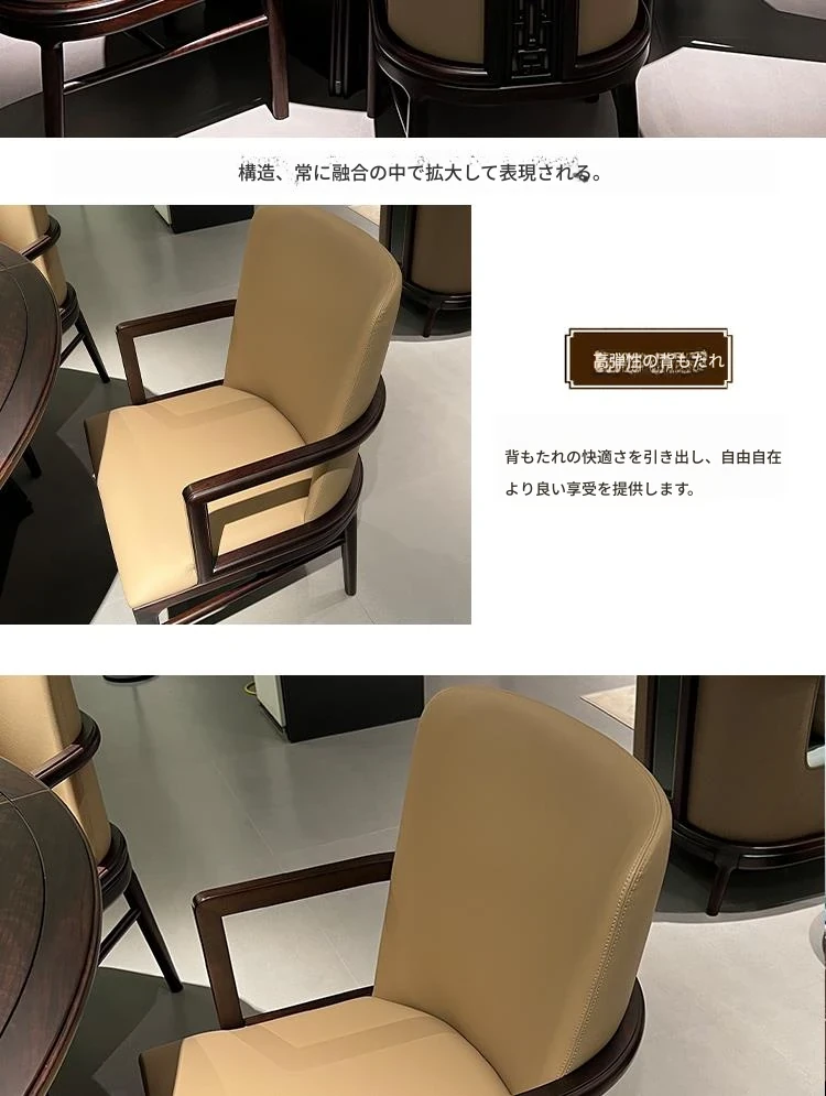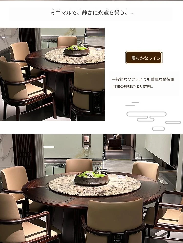新中式スタイルの天然木製ダイニングテーブル&チェアセット - ウッディな魅力、全実木のラウンドテーブルは大小様々な家に最適!回転式デザインで便利さも追求。