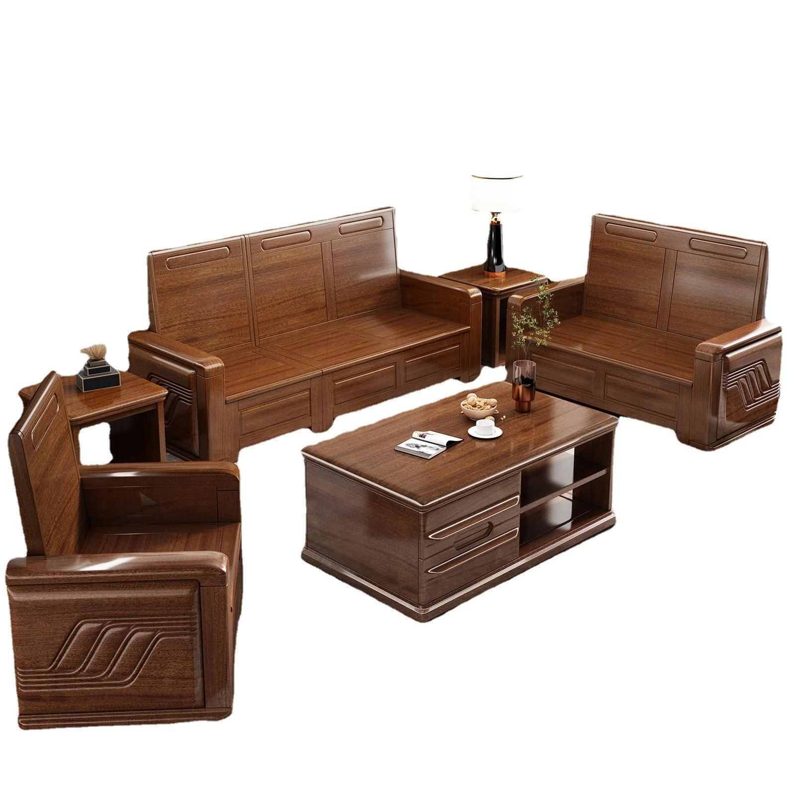 Modern Chinese Style Solid Wood Sofa - Elegant Red Sandalwood Furniture for All Seasons, Versatile Storage, Minimalist Chaise Lounge & Corner Sofa for Your Living Room