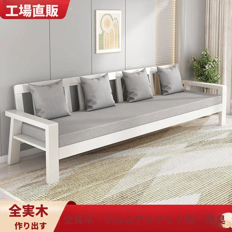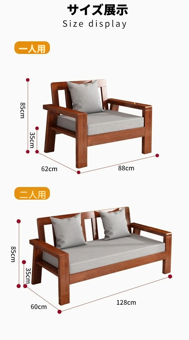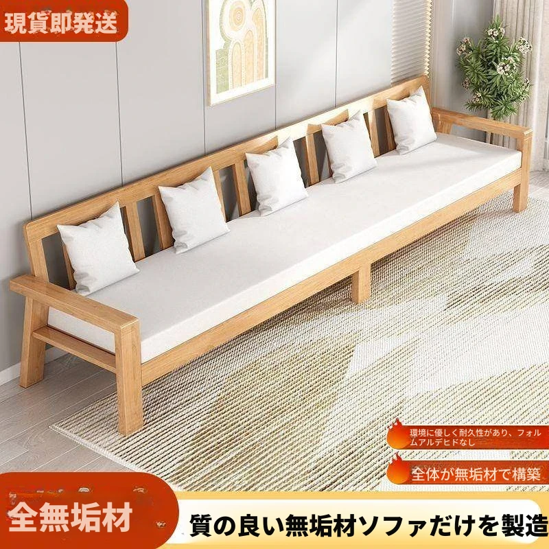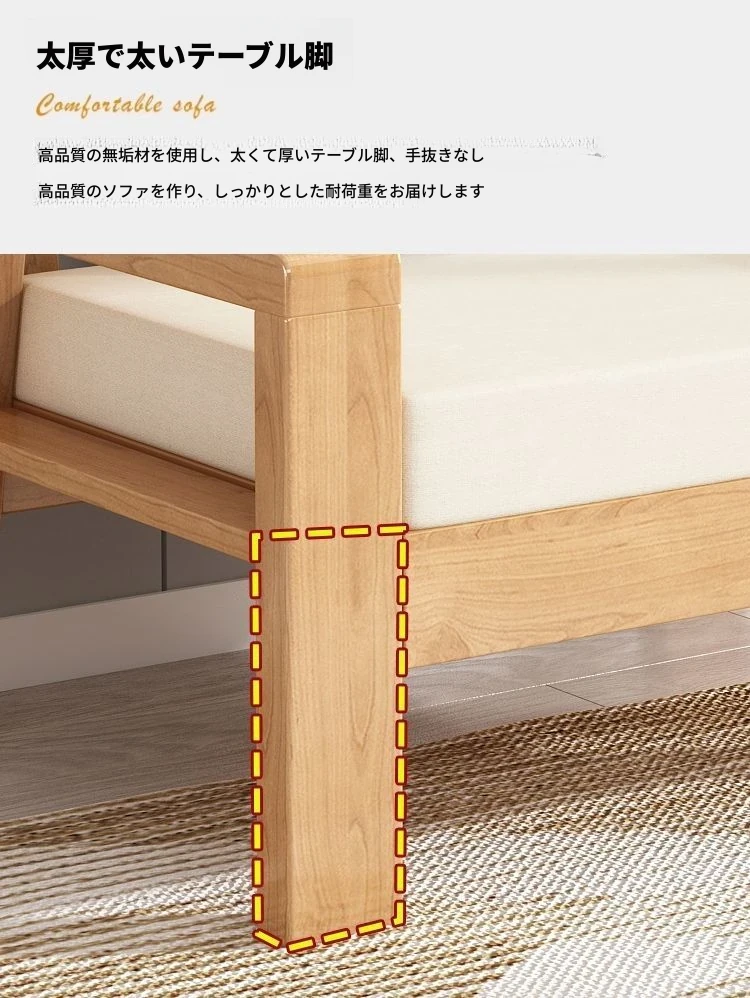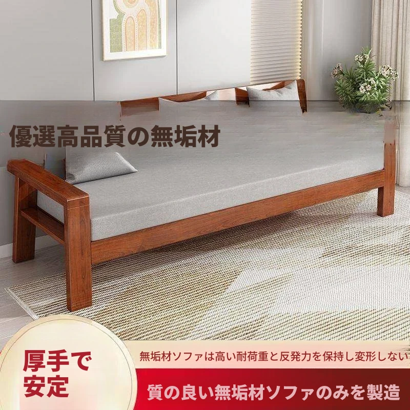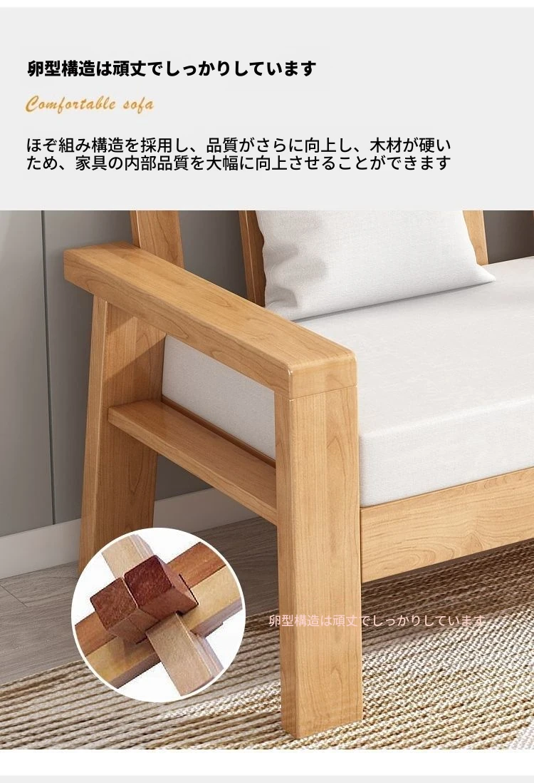 現代中式デザインの天然木製ソファセット - 布張りで快適、ラバーウッド素材使用!経済的でシンプルなスタイル、小さな部屋にもぴったりなリビング家具。あなたの空間をスタイリッシュに演出します!