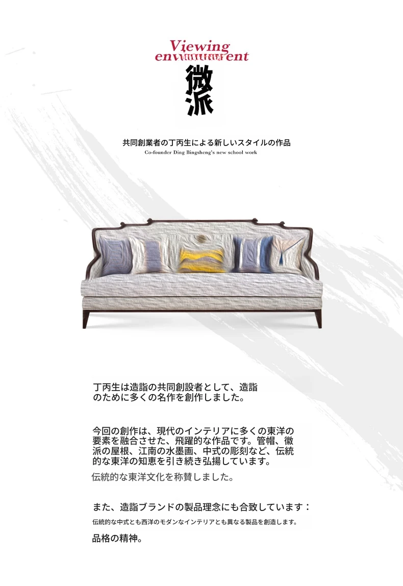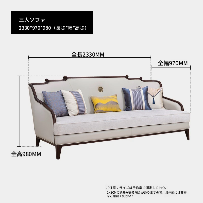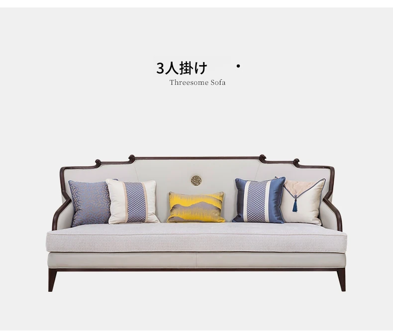【観境・新中式】無垢材皮布ソファ【3人用】 2330*970*980