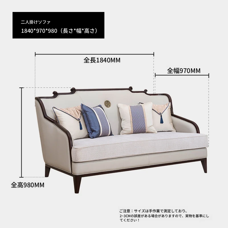 【観境・新中式】無垢材皮布ソファ【2人用】 1840*970*980
