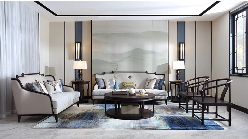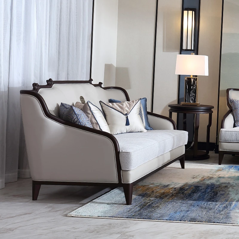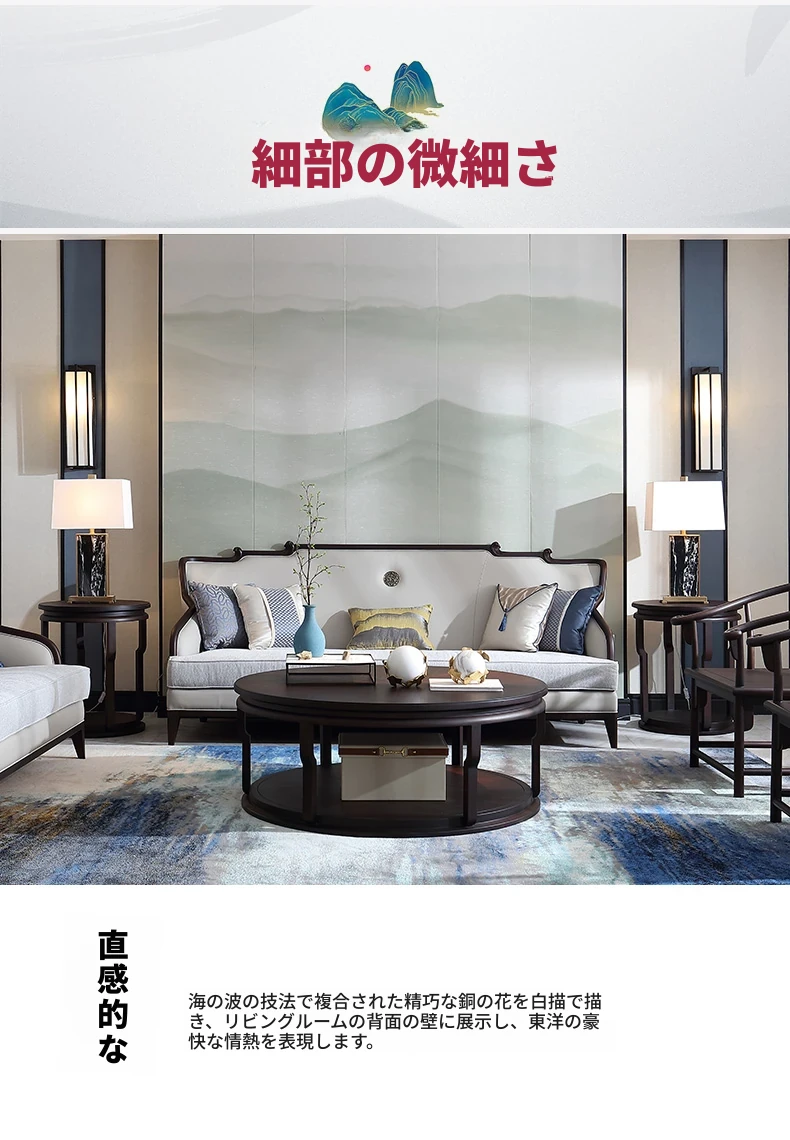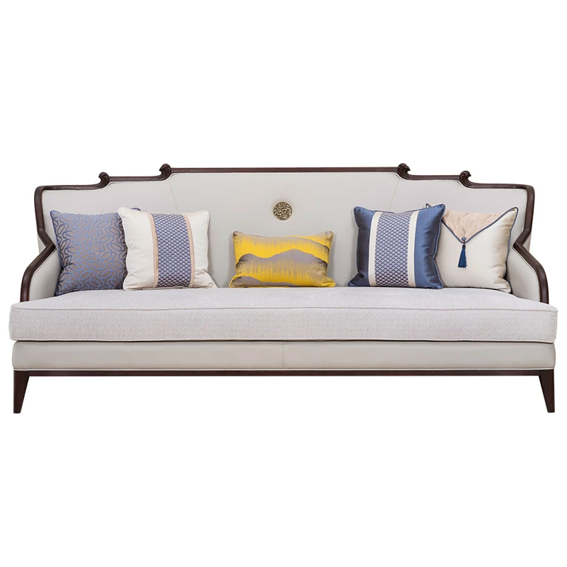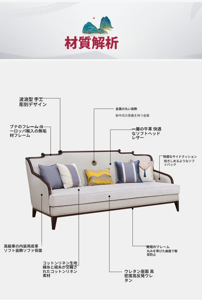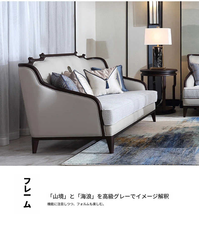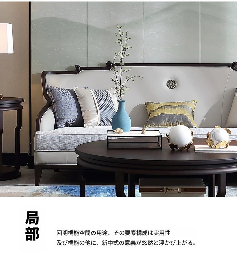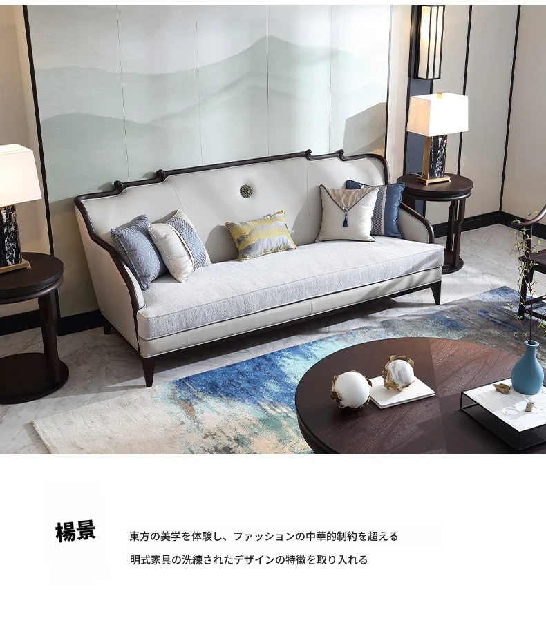 現代高級新中式のブナ材ソファセット、ラグジュアリーな本革ソファ、実木製のヴィラリビング家具Y2。洗練されたデザインと快適性を兼ね備えた一品で、上質な空間を演出します。