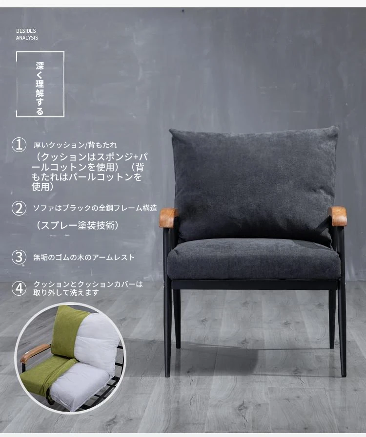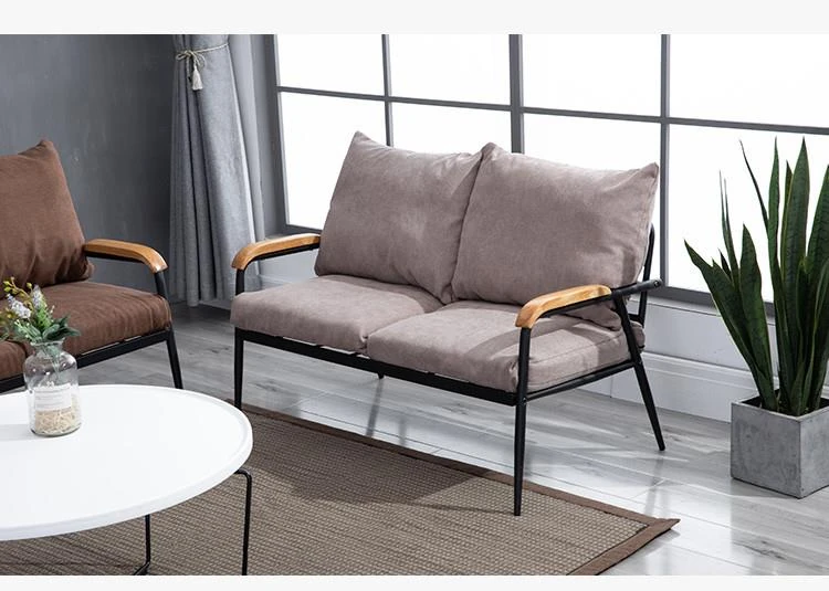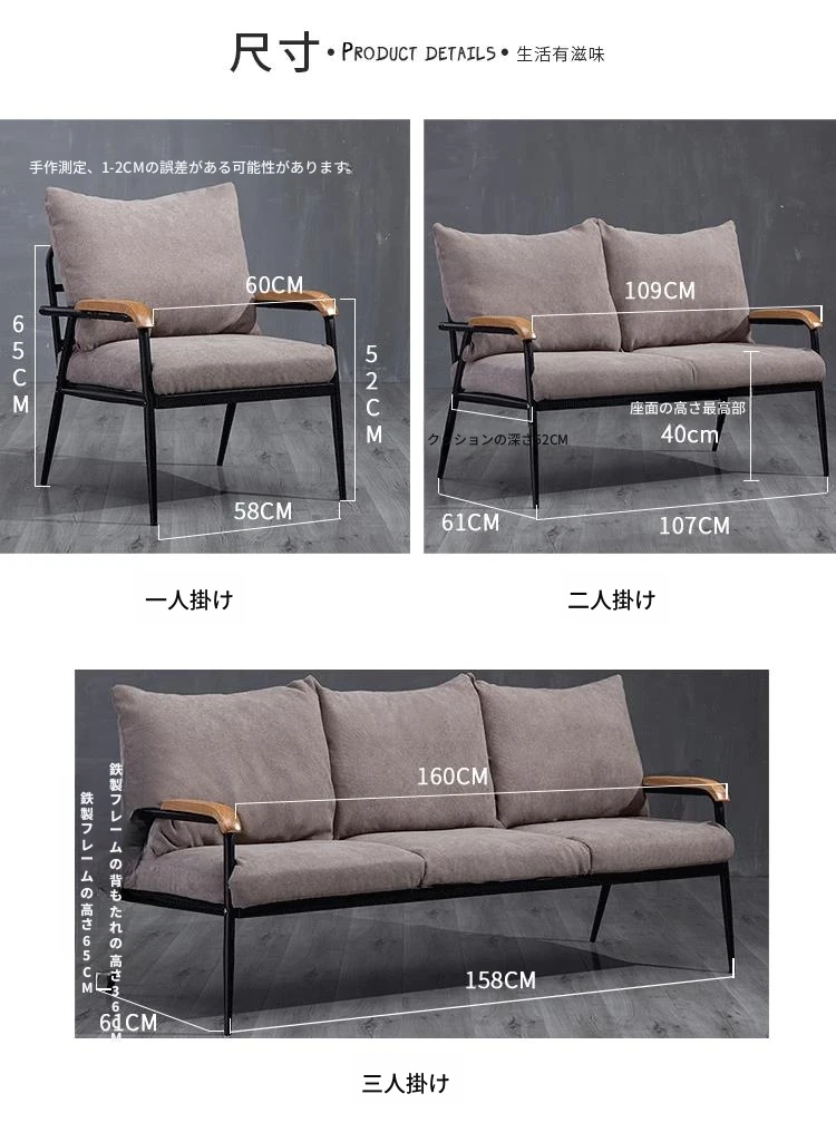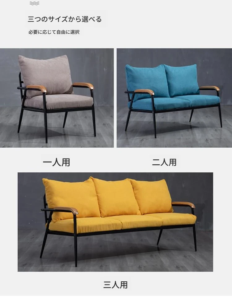 和風布製ソファ 小型リビングに最適!2人用・3人用の実木とアイアンのシンプルモダンなコンビネーション家具で、スタイリッシュな空間を演出します。あなたのリビングをおしゃれに変身させましょう!