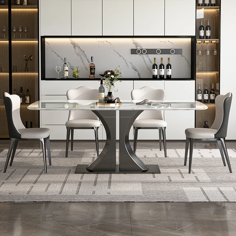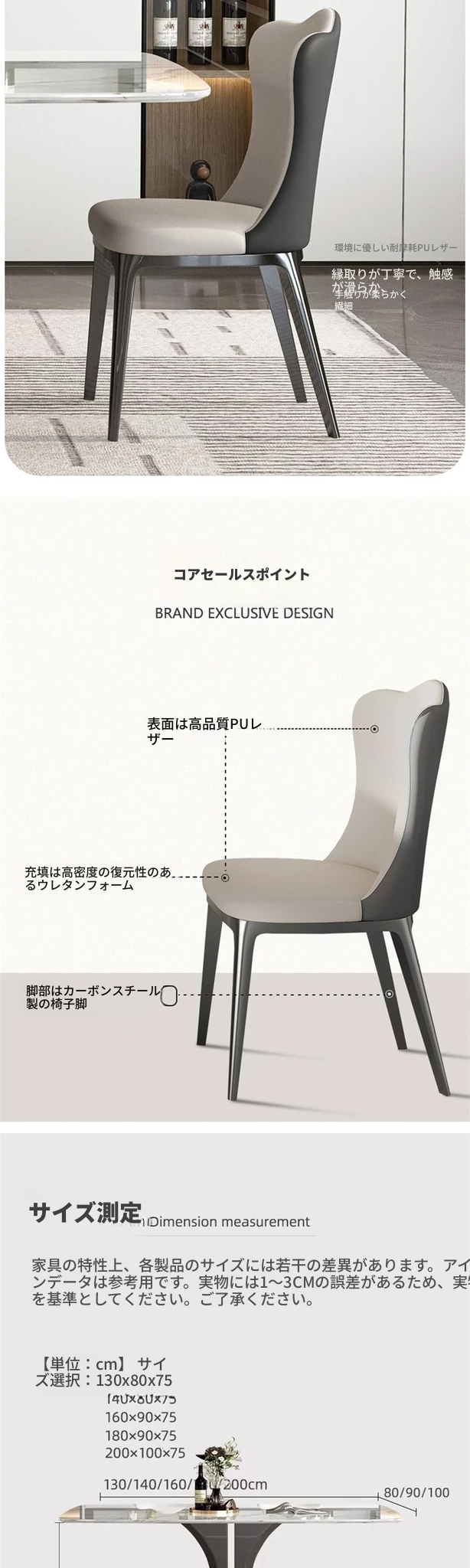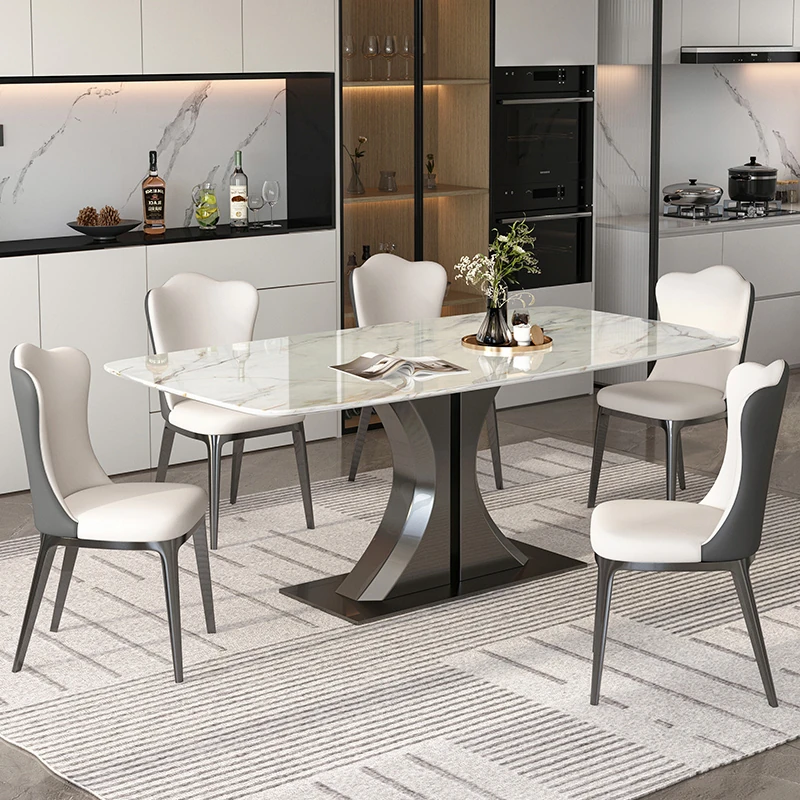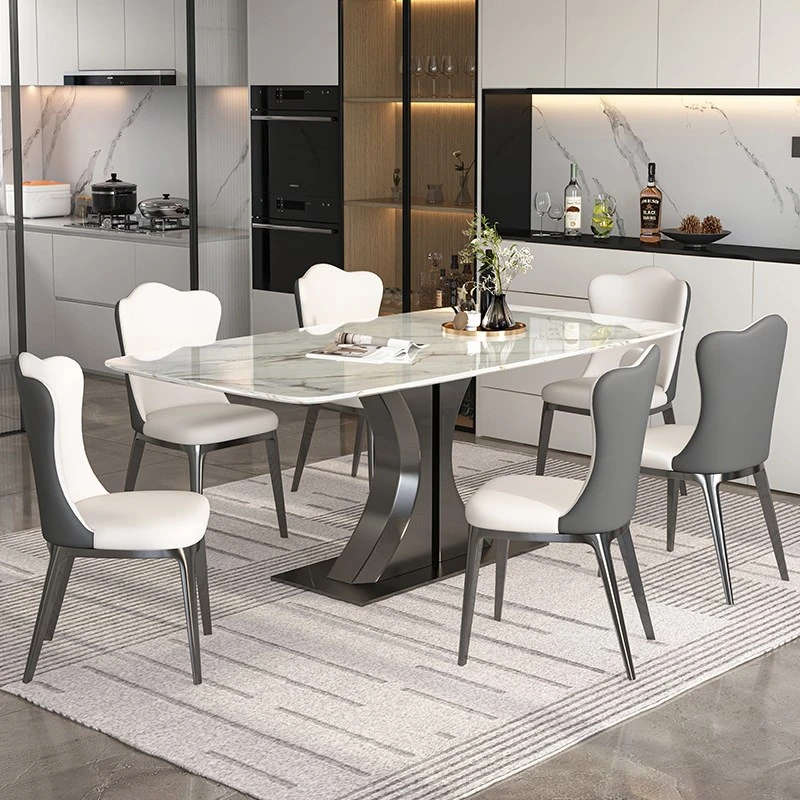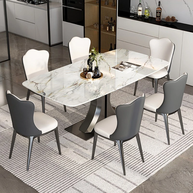 1.3Mミクロクリスタル石製ダイニングテーブル+アップグレード猫爪皮製ダイニングチェア*6