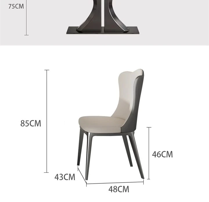 1.3Mミクロクリスタル石製ダイニングテーブル+アップグレード猫爪皮製ダイニングチェア*4