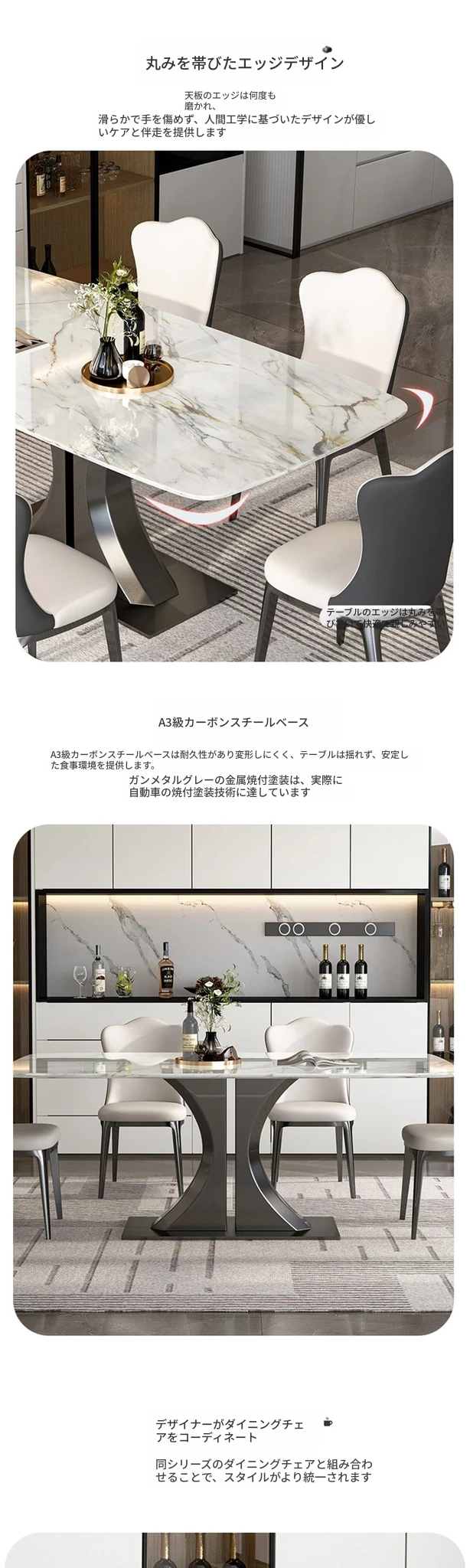 1.8Mミクロクリスタル石製ダイニングテーブル+アップグレード猫爪皮製ダイニングチェア*6